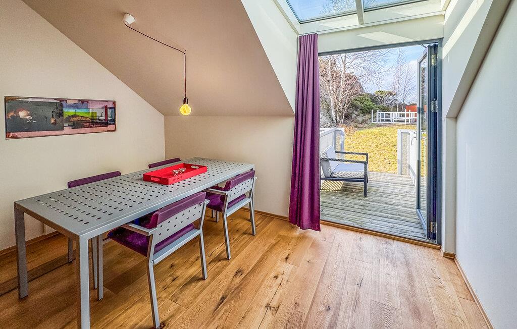 Denne lyse og luftige lejlighed giver jer mulighed for at sætte hverdagen på pause med familien på den beskyttede ø Ny-Hellesund. Livlige farver og et harmonisk design skaber en behagelig atmosfære i det indbydende interiør. Glæd jer til at lave mad sammen i det åbne køkken og nyde hyggelige måltider i smukke omgivelser. Slap af i sofaen, nyd en spilleaften eller tag jer tid til en god samtale over et glas vin.