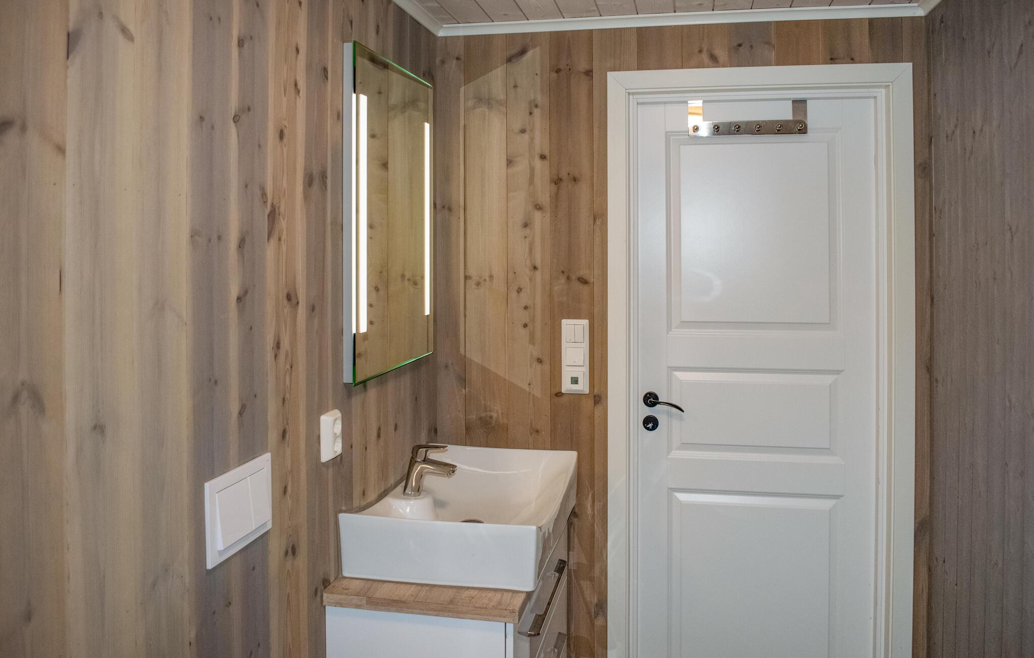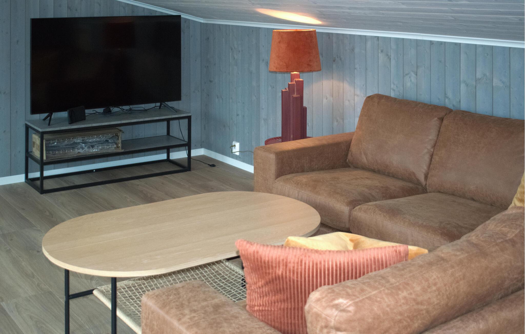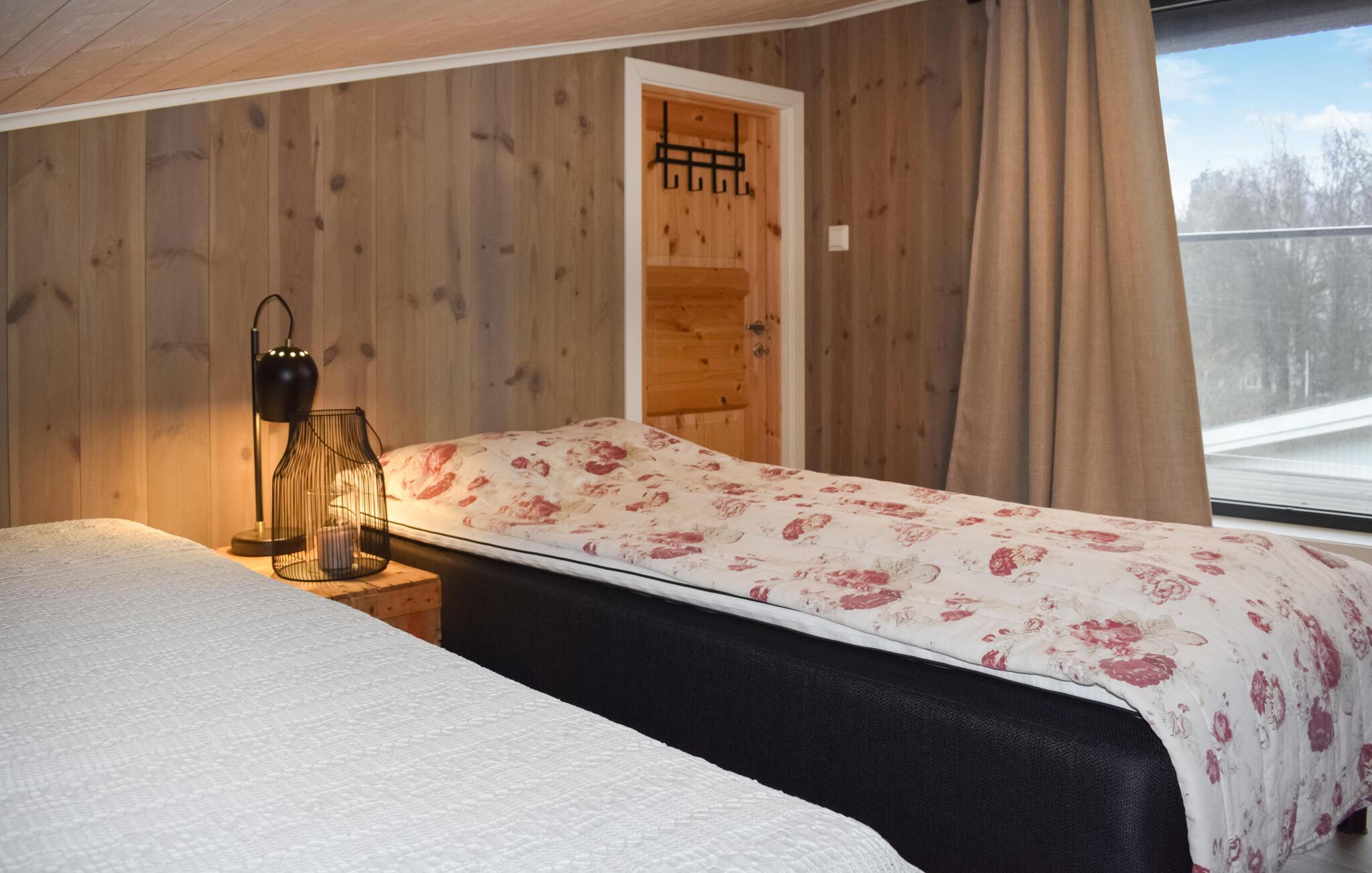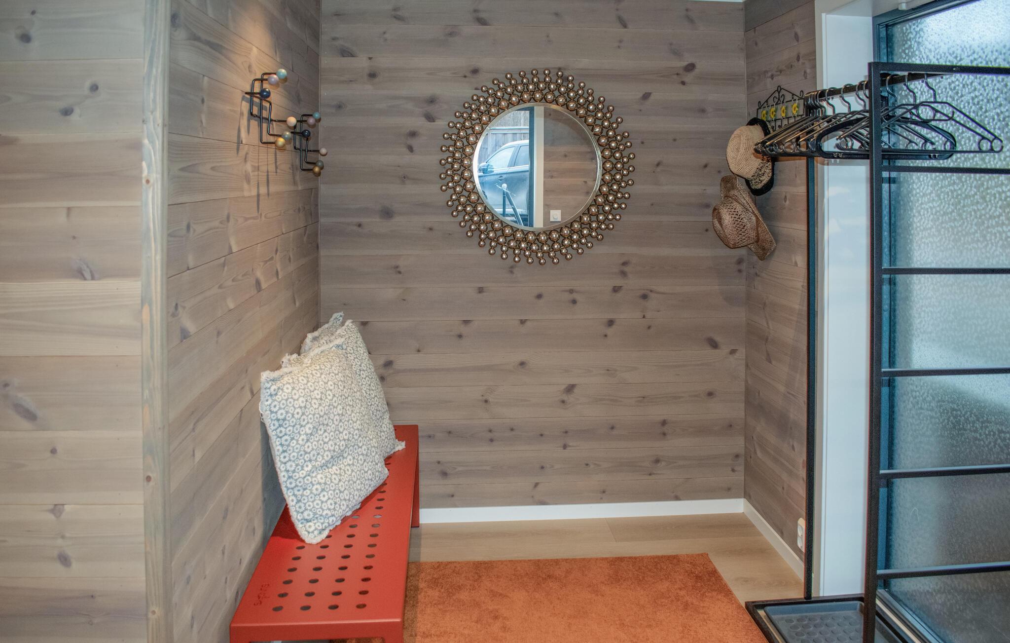 Tag familien under armen og rejs til Norge, hvor I få minutters gang fra havet får base i dette indbydende og rummelige hus. Indretningen fremtræder pænt og attraktivt over to etager med varme træpaneler, materialer af høj kvalitet og store vinduespartier, der lader dagslyset sive ind og giver en skøn udsigt til omgivelserne. Fordel jer ud på de forskellige soveværelser og find sammen i stuen til en hyggelig aften med god mad, brætspil og en god film på tv'et.