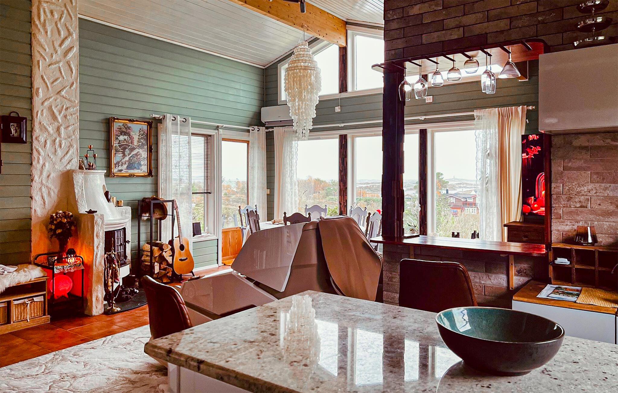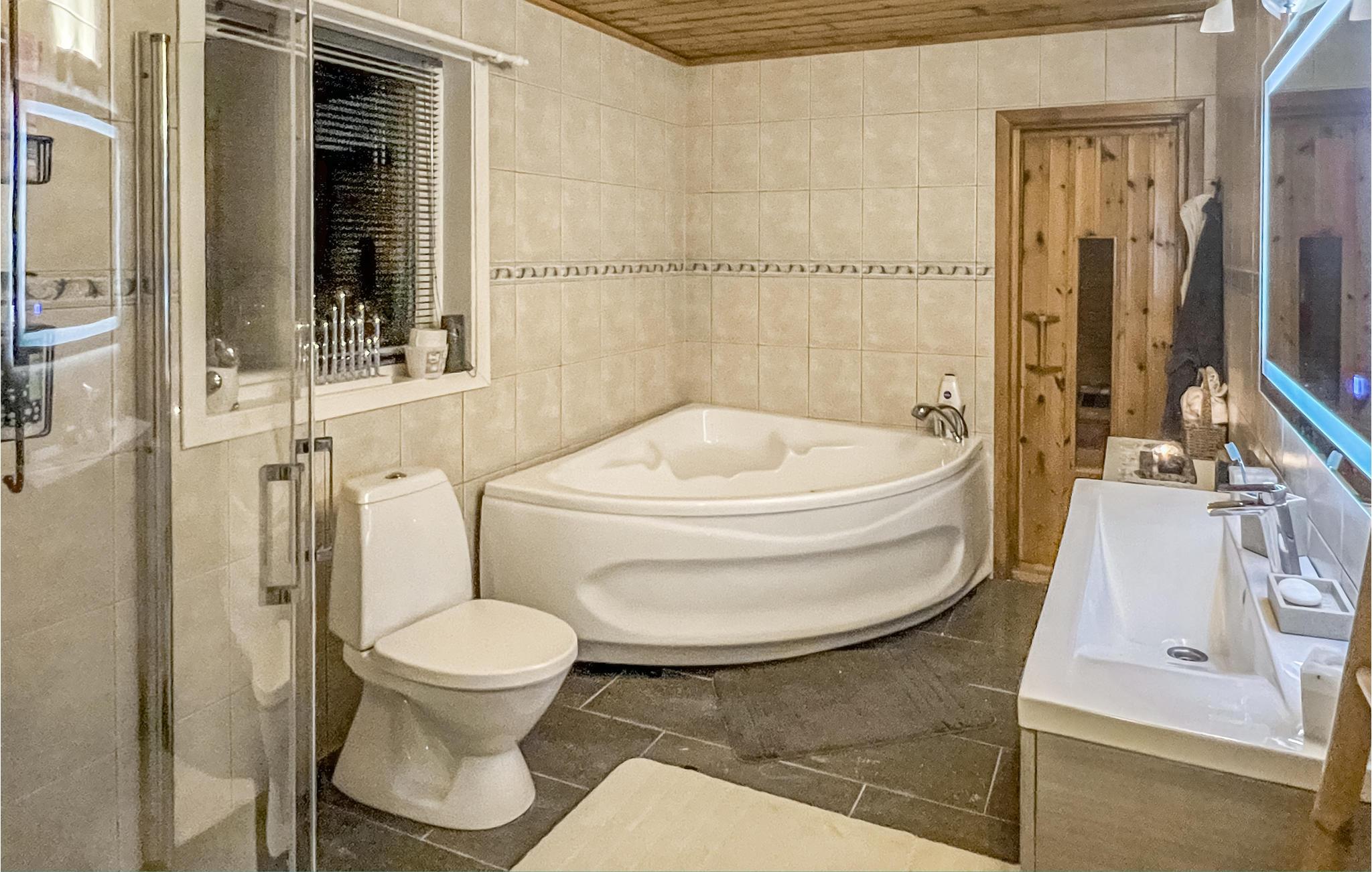 I dette herlige feriehus kan I nyde et betagende panorama hele året rundt. Både når I går til bords til et hyggeligt aftenmåltid, og når I læner jer tilbage i sofaen efter en lang dag på farten, kan I kigge ud på det fantastiske landskab og havet, som aldrig stopper med at virke fascinerende. Når I vender hjem med friske, røde kinder efter dagens oplevelser, kan I sætte jer til rette i saunaen.