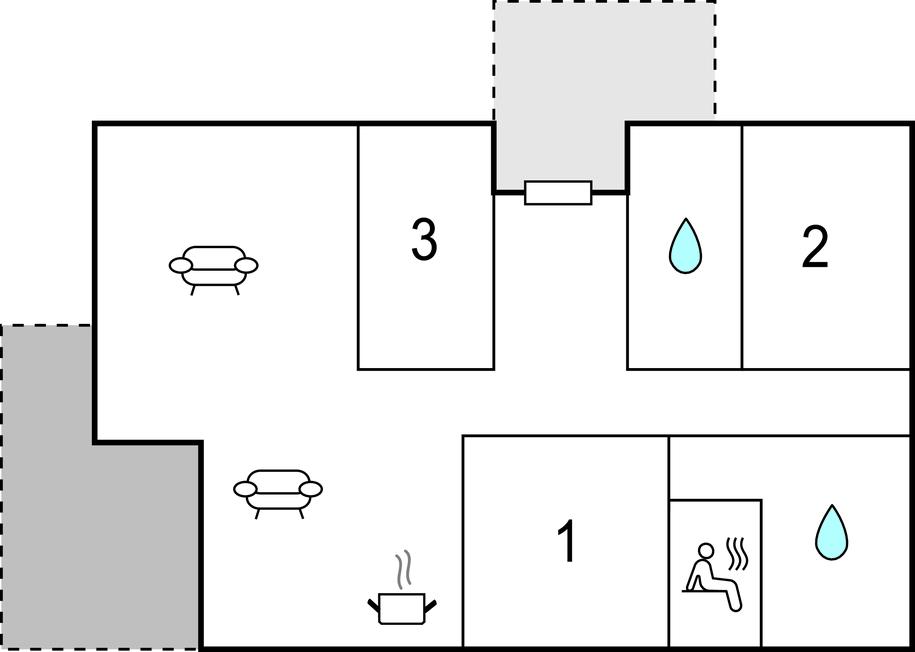 Soveværelse (nr. 1) - 1 Soveplads. (Enkeltseng(e)). 2 Sovepladser. (Dobbeltseng(e)).