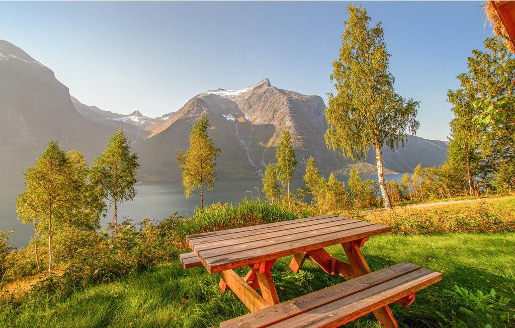 Her kan du sænke skuldrene og leve i harmoni med naturen. Fra feriehuset får du en fantastisk panoramaudsigt over Eikedalsvatnet. Området med feriehuset ligger i et område med mægtige bjerge og frodige landsbyer. Der er masser af godt fiskeri i området med muligheder for at fise i både søer, floder og fjorde (husk fiskerilicens).