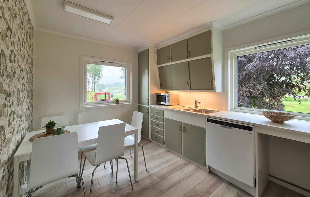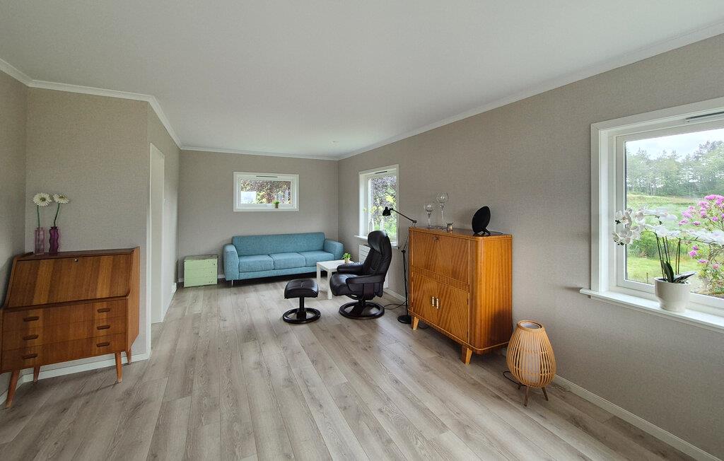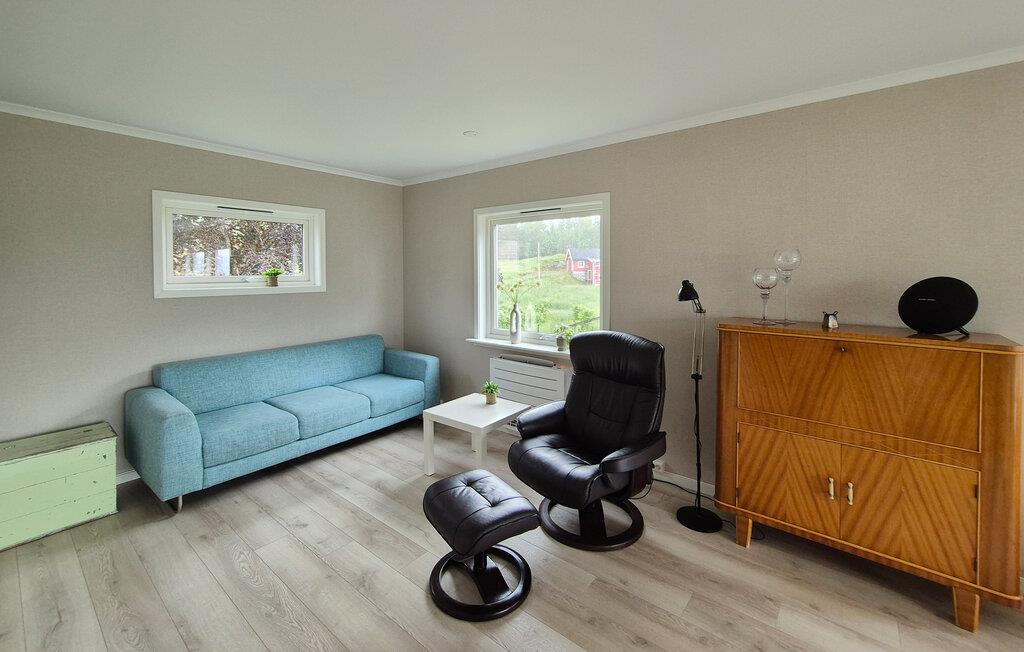 Velkommen til dette fantastisk beliggende hus, der byder på rolige omgivelser og fantastiske udsigter. Kun en kort gåtur fra fjorden kan I opleve naturen på tæt hold og samtidig nyde et unikt panorama. Efter jeres udflugter i området kan I slappe af i de indbydende rum, hvor de komfortable sofaer indbyder til afslapning efter en oplevelsesrig dag. Skab en ekstra hyggelig atmosfære med et bål i brændeovnen, og læs en god bog, eller find sammen til et spil skak.