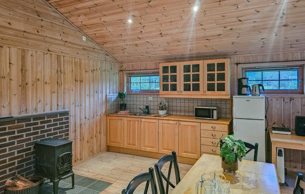 Nær Vikeså, kun en kort køretur fra den maleriske sø Ørsdalsvatnet, udmærker jeres feriehus sig ved sin rolige beliggenhed, omgivet af grønne enge og et imponerende bjerglandskab. Nyd jeres måltider i det rummelige opholds- og spiseområde, der er fuldt indrettet i rustik træstil og skaber en varm, indbydende atmosfære. Slap af efter en lang vandretur i de komfortable lænestole og sofaer, og nyd en hyggestund ved brændeovnen.
