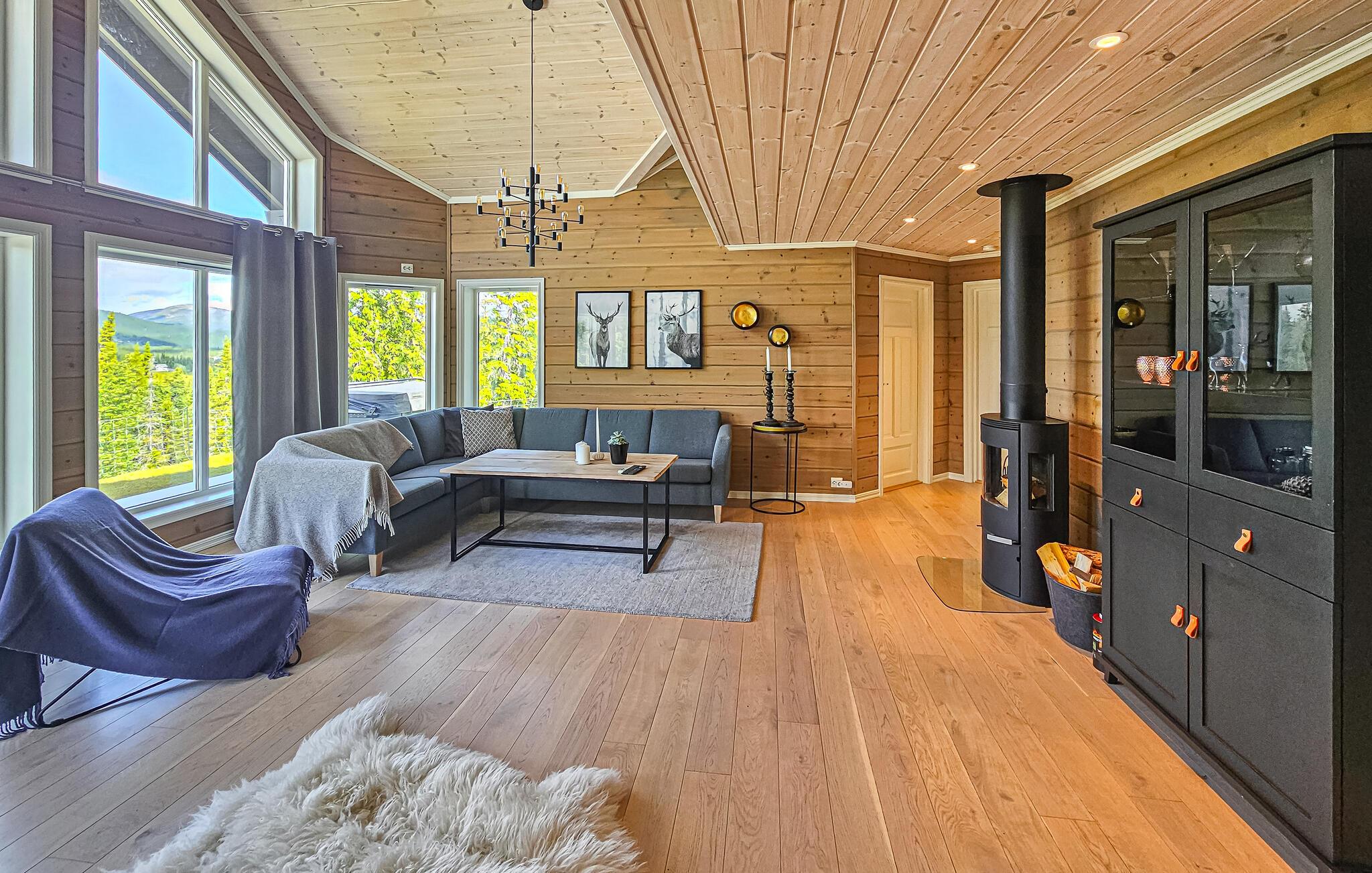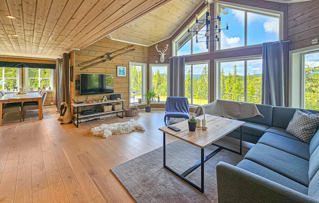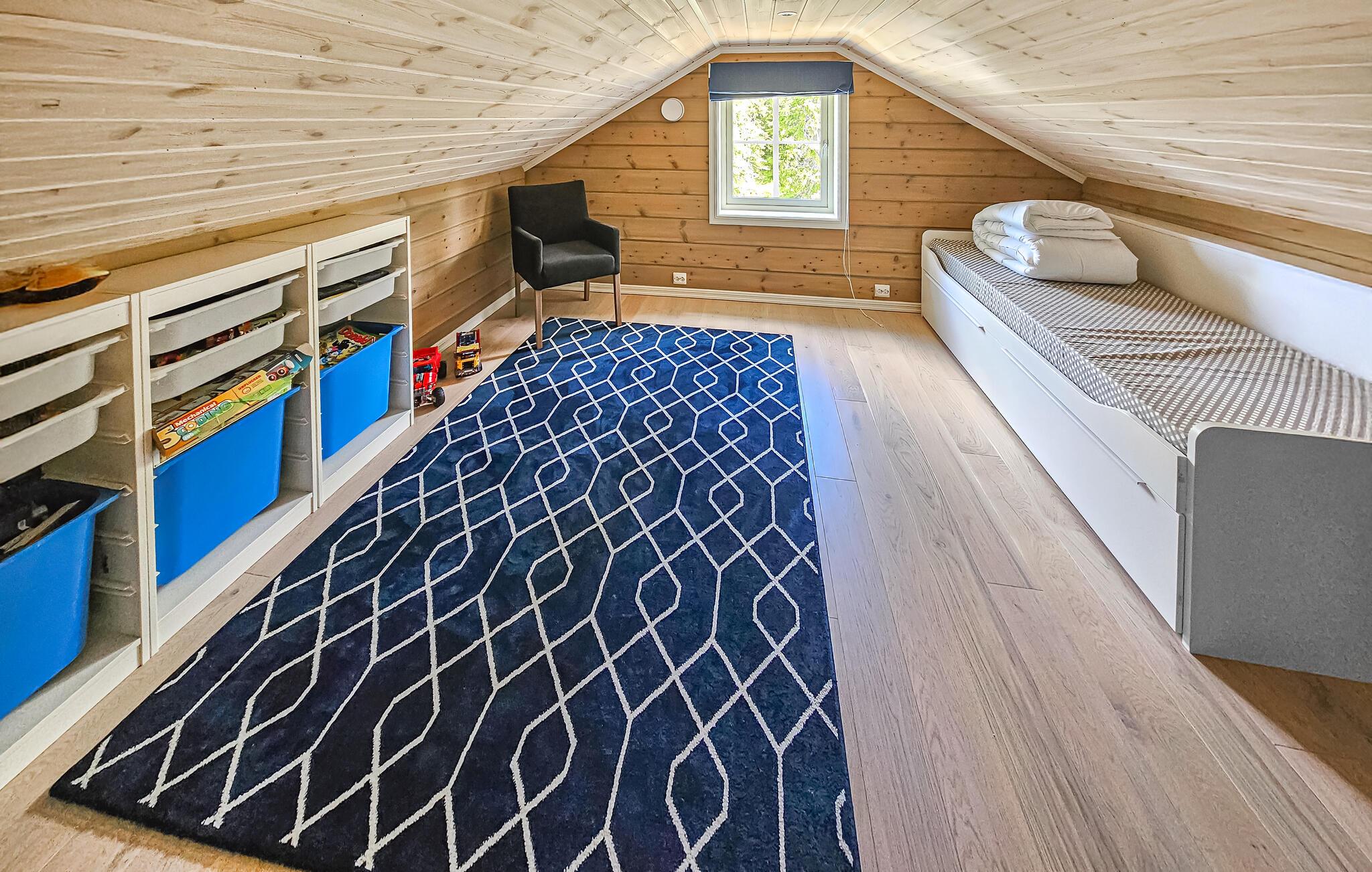 Dette rummelige og komfortable feriehus byder jer velkommen i en skøn beliggenhed ved søen og tilbyder masser af plads til at nyde dets charmerende ekstraudstyr, selv med en større familie eller en gruppe venner. Glæd jer til hyggelige måltider med udsigt over det grønne, snak om svundne tider i det store sofaområde, forkæl jer selv med afslappende øjeblikke i saunaen, mens andre tænder pejsen til en hyggelig spilleaften, streamer en film eller fordyber jer i en bog i deres yndlingshjørne.