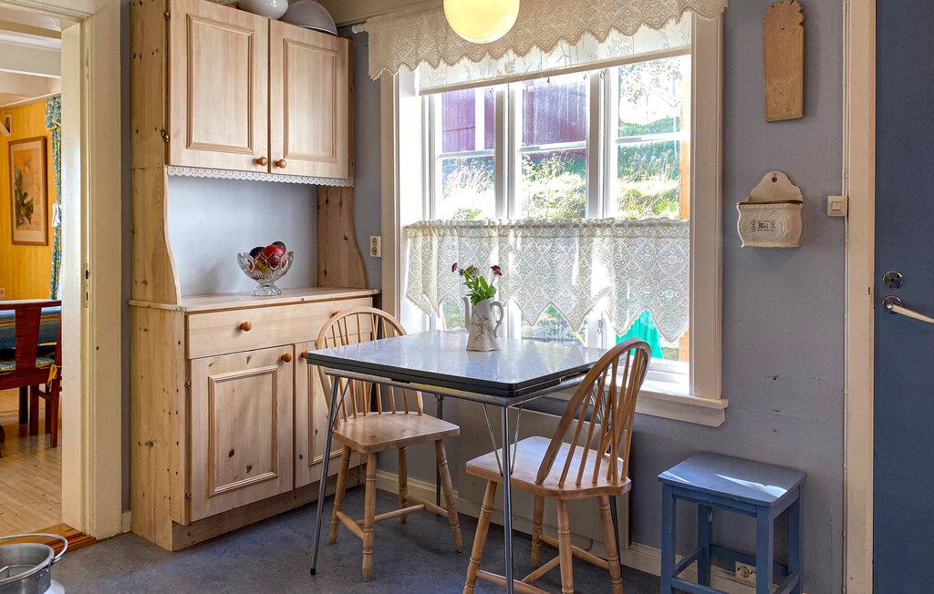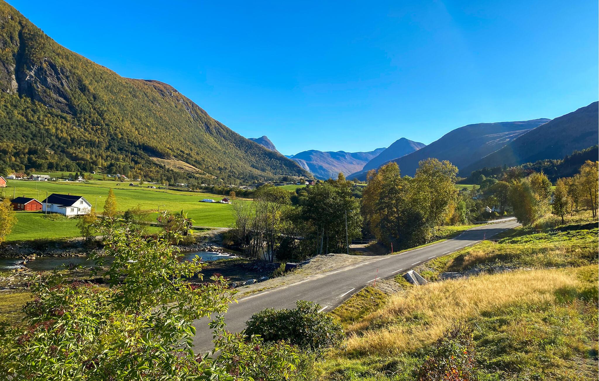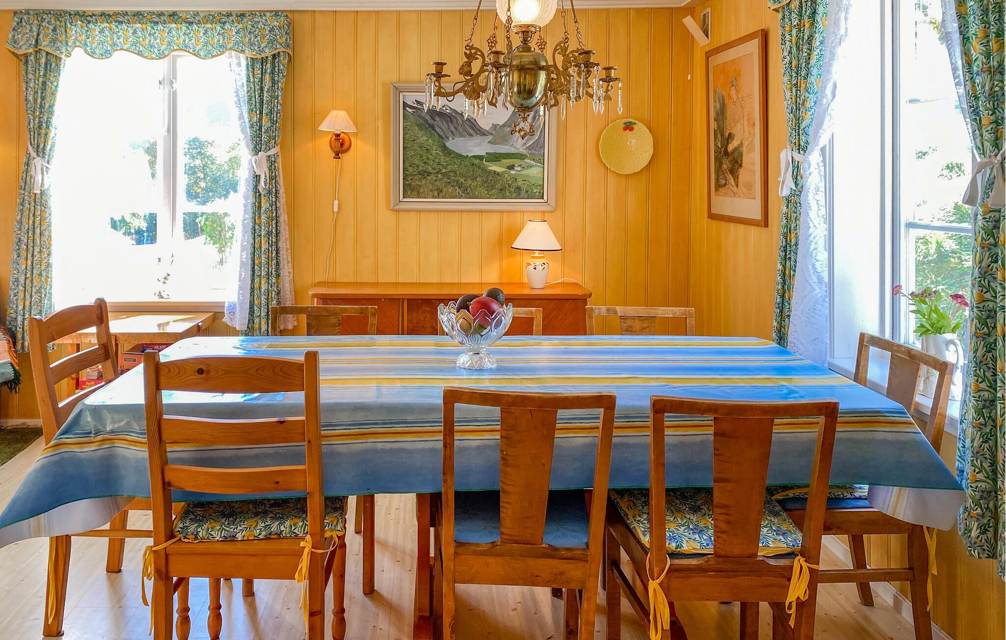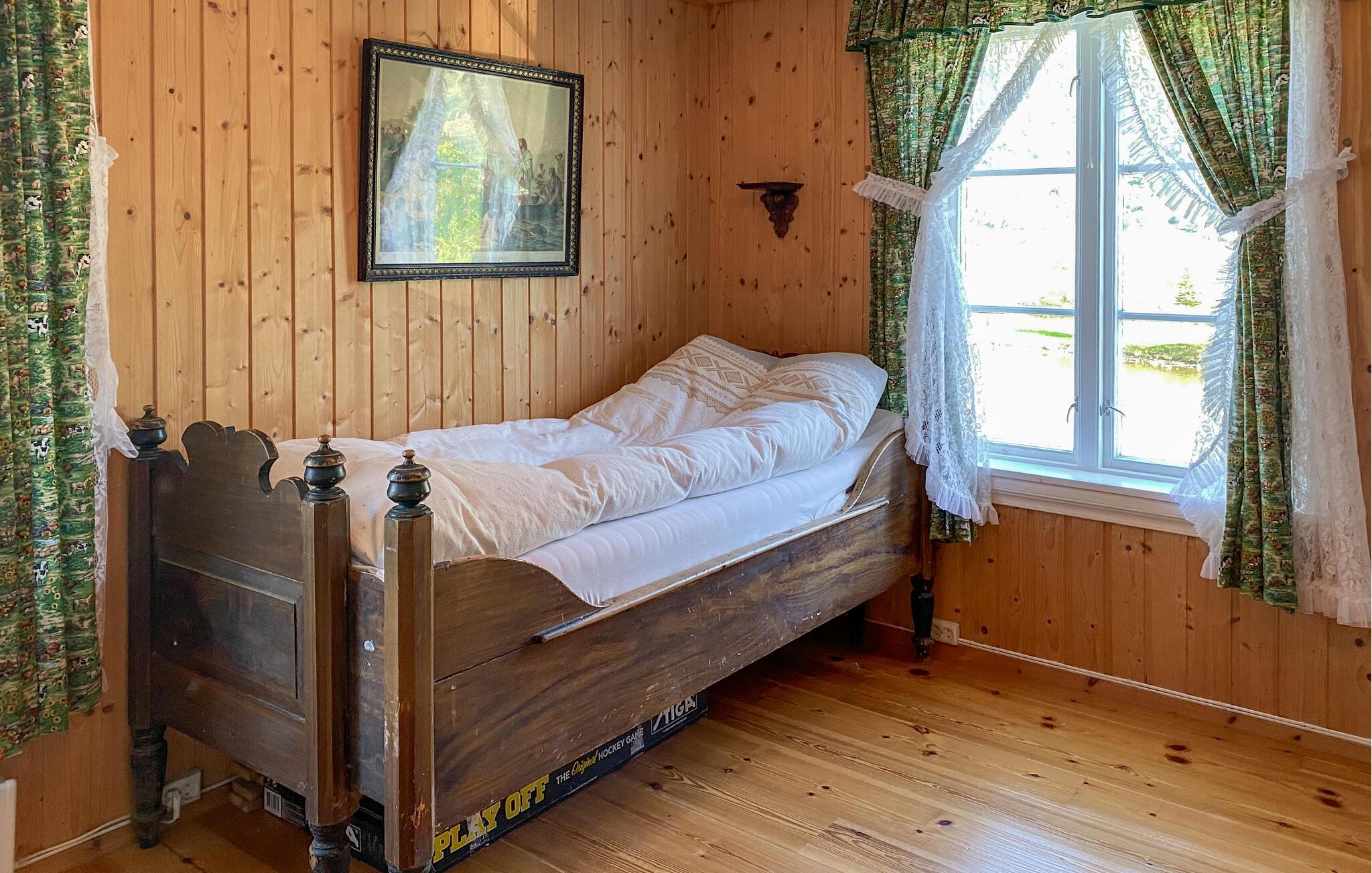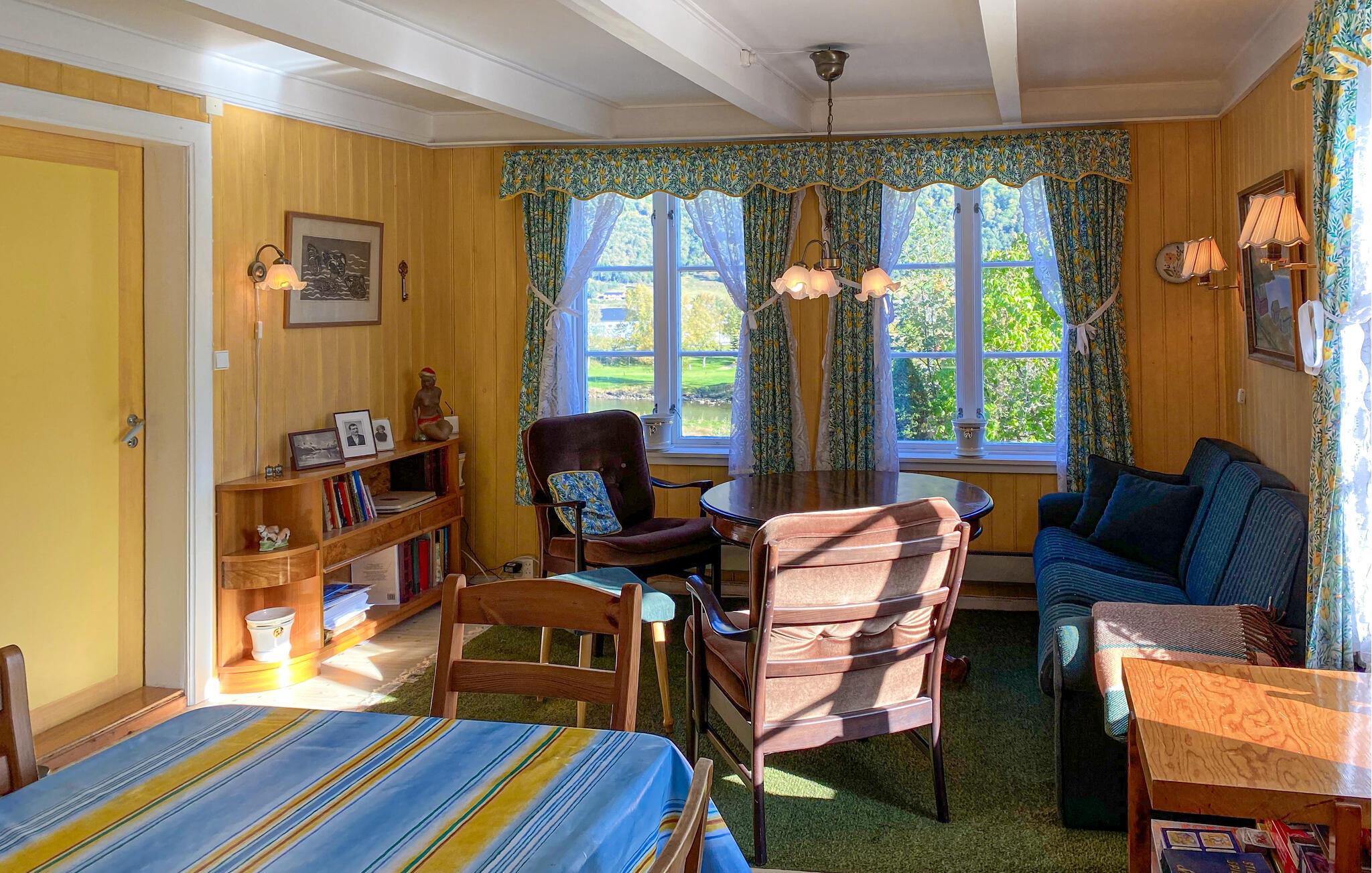 Oplev dette charmerende landsted med dets storslåede udsigt over bjerge og enge. Jeres traditionelle feriehus vil begejstre jer med sin autentiske atmosfære og idylliske beliggenhed mellem fjord og bjerge. Bliv budt velkommen af de hyggelige møbler. Huset er smukt indrettet i en stil, der minder om svundne tider – med varme trævægge, farverige gardiner og hyggelige siddeområder. Slap af i stuen i sofaen eller nyd en kop te ved træbordet. Tilbered jeres måltider i det enkle, men funktionelle køkken med træskabe og nyd dem i spiseområdet ved den rustikke brændeovn. Den lyse udestue er særligt indbydende og tilbyder en storslået udsigt over det omkringliggende landskab. Tilbring tid i det rummelige udendørsområde. Sid på bænken foran huset og nyd udsigten over de grønne skråninger og dalens marker. Tag en dyb indånding, mens solen forsvinder bag bjergene. Tag en vandretur gennem den idylliske Vistdal, prøv kræfter med fiskeri, eller tag en tur til husejerens bådhus ved fjorden, hvor en robåd og to SUP-boards venter på jer. Udforsk regionen med de tilgængelige cykler eller besøg nærliggende byer som Åndalsnes og Molde – ideelle destinationer for dagsture mellem hav og bjerge.