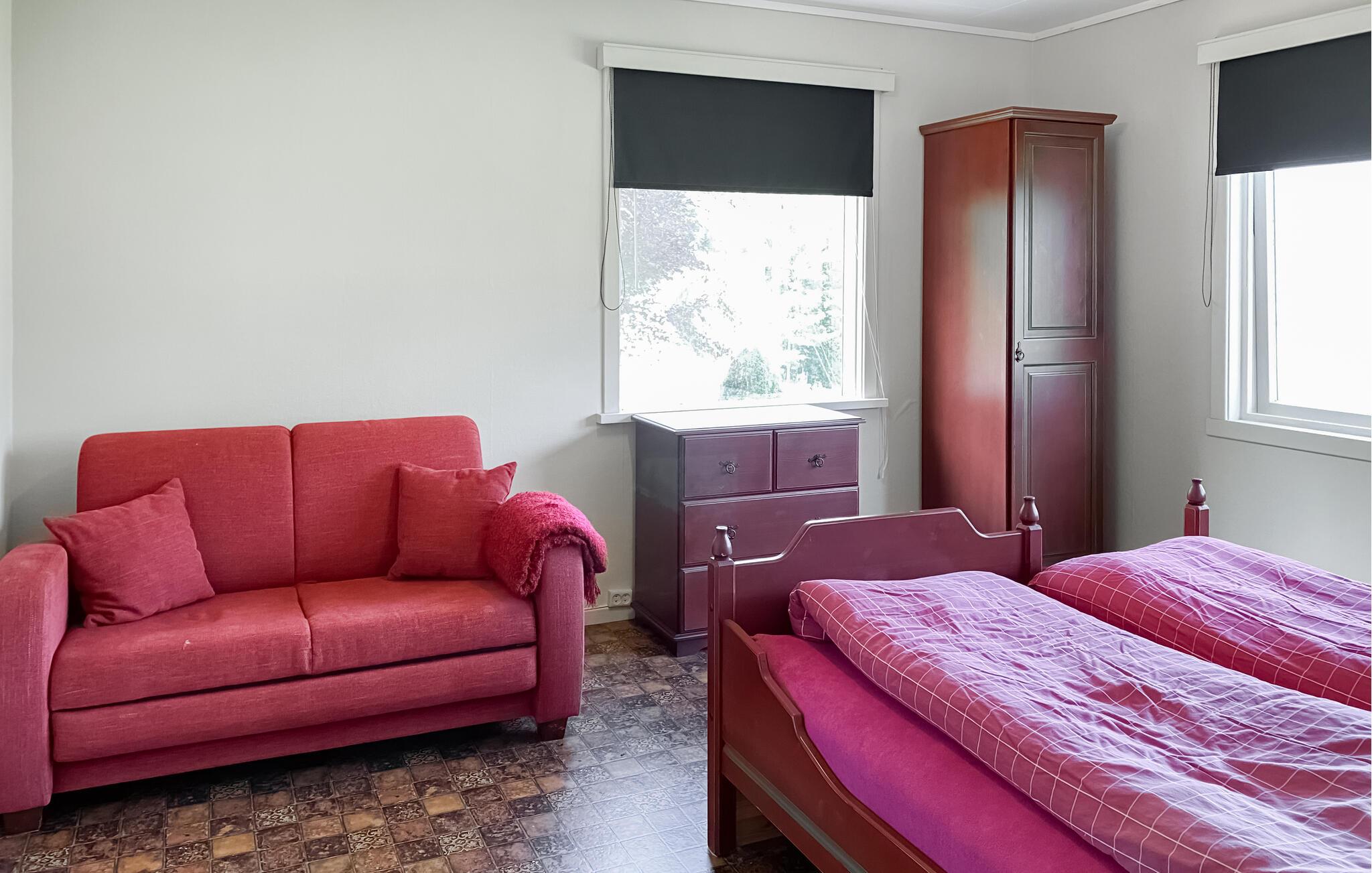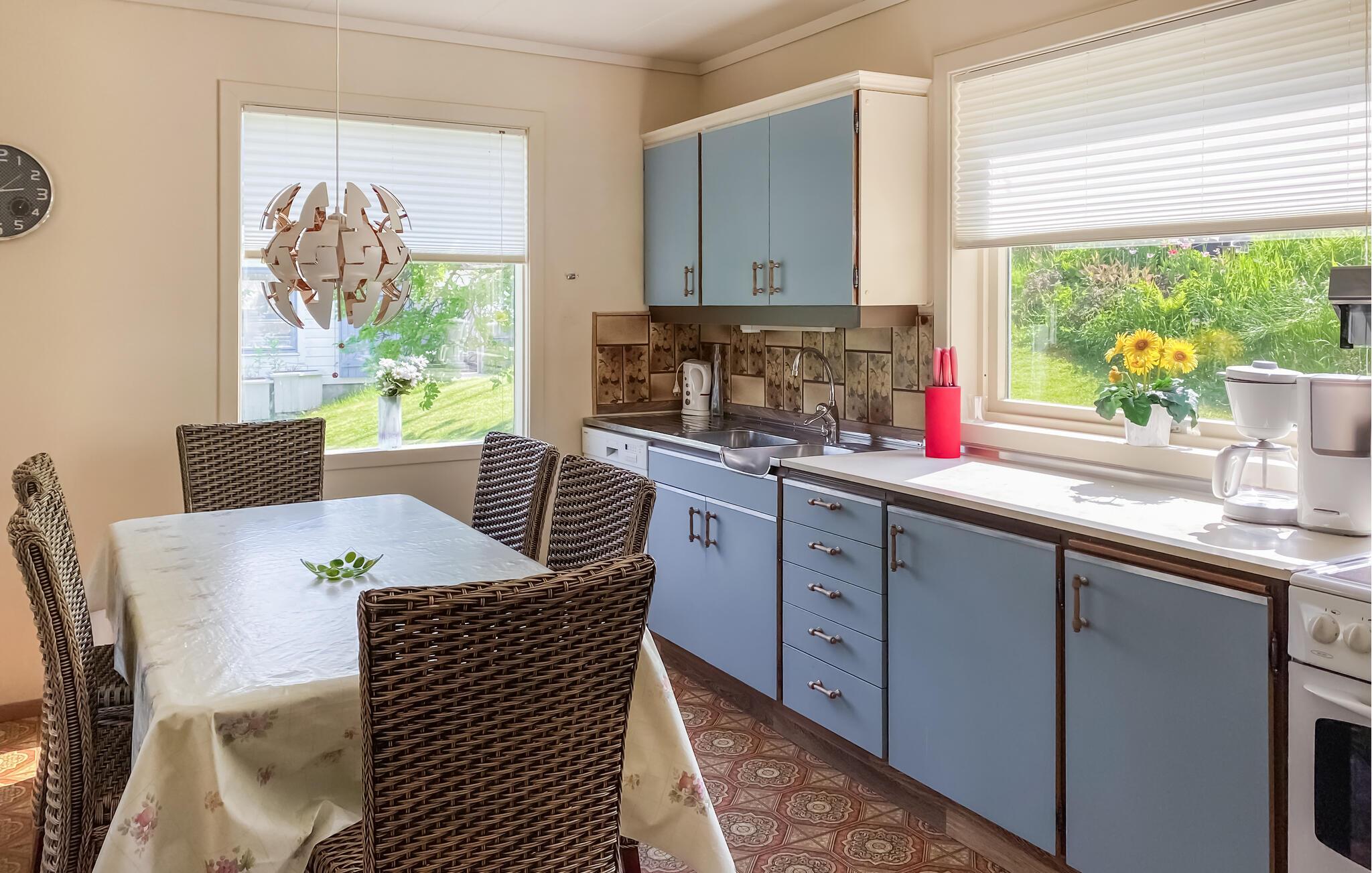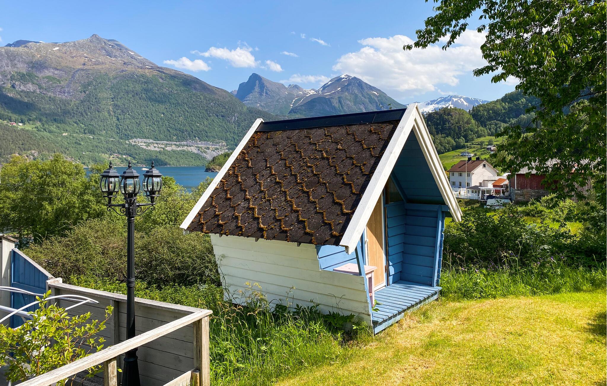 Tag den store familie eller en vennefamilie under armen og rejs til Volda, hvor der venter jer en vidunderlig base i dette tidligere landsted. Huset strækker sig over to etager og byder på god plads med to køkkener og to badeværelser, så I kan kombinere det sociale med det privatliv og trække jer lidt tilbage, når behovet måtte opstå. Interiøret lyses vidunderligt op udefra gennem de store vinduespartier, der samtidig giver jer mulighed for at nyde den smukke udsigt i fulde drag.