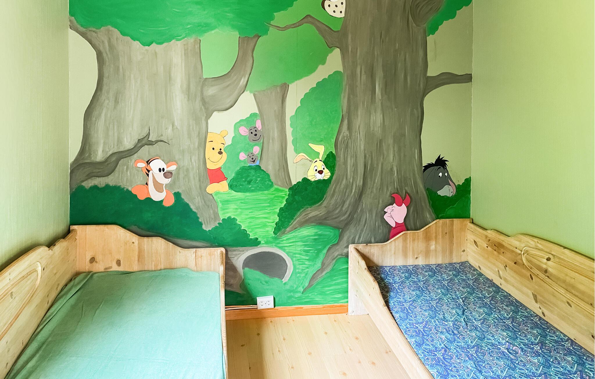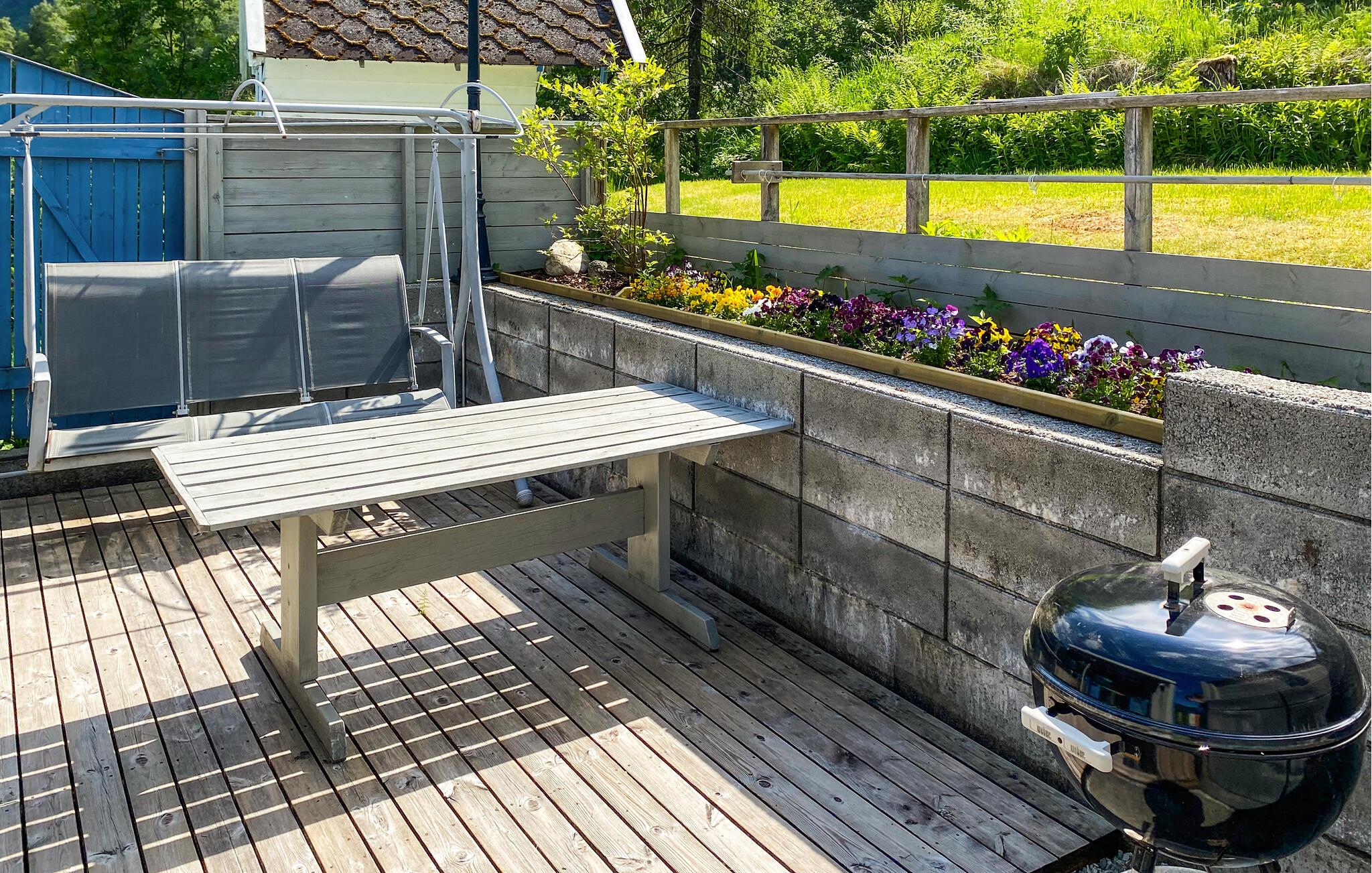 Der er masser af legeredskaber til børnene i haven og en indendørs trampolin, som de kan brænde energi af på. Alt imens kan de voksne nyde solen på terrassen, indsnuse den friske luft og slubre til kaffen, inden I tager på tur.