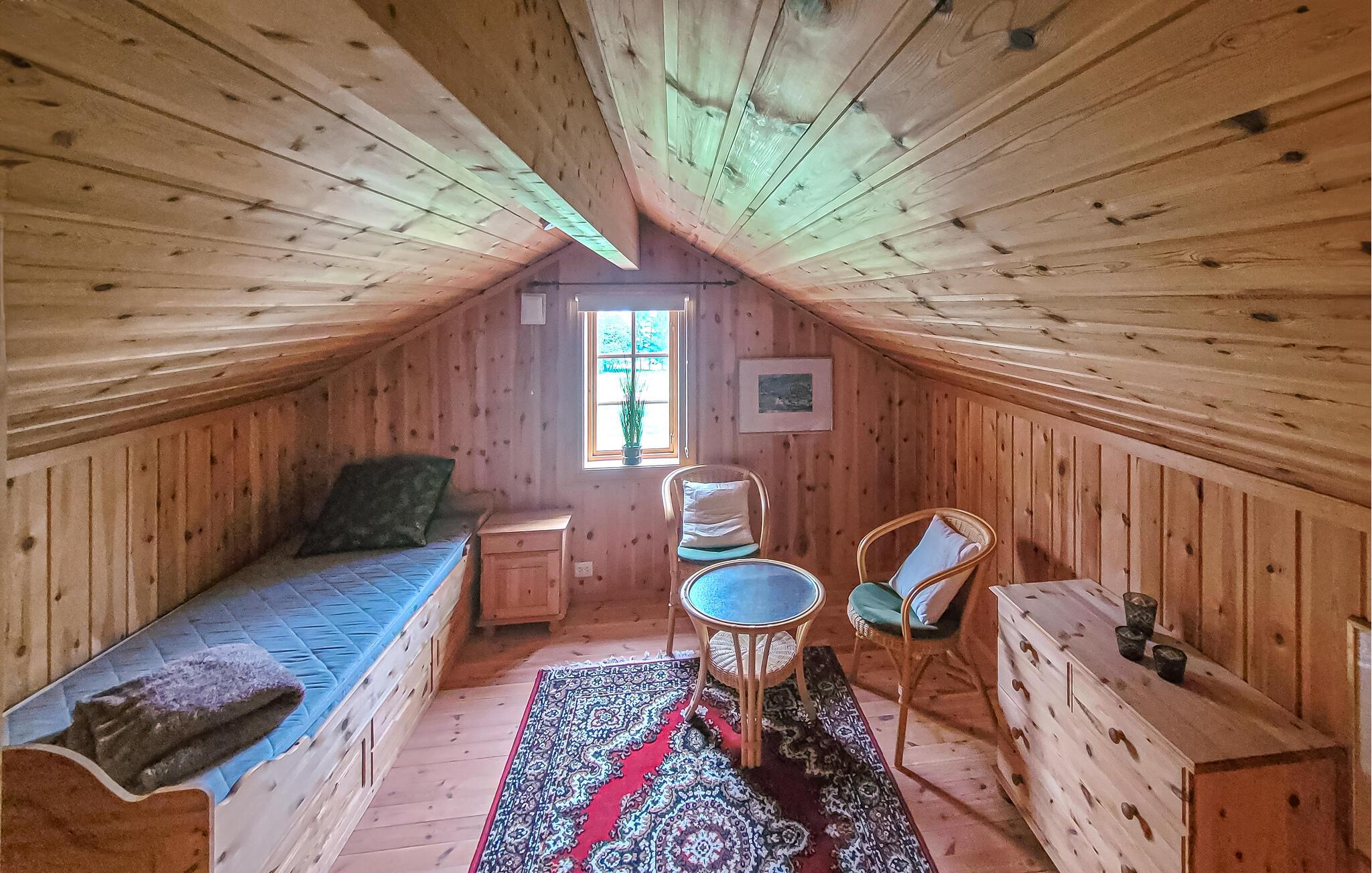 I kan også nyde freden og roen på den store panoramaterrasse, eller mens I fisker og bader lige uden for huset. Om aftenen kan I tænde op i bålfadet og bage snobrød eller riste skumfiduser.