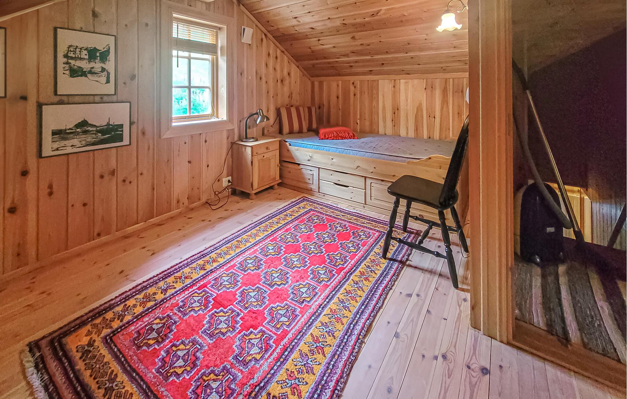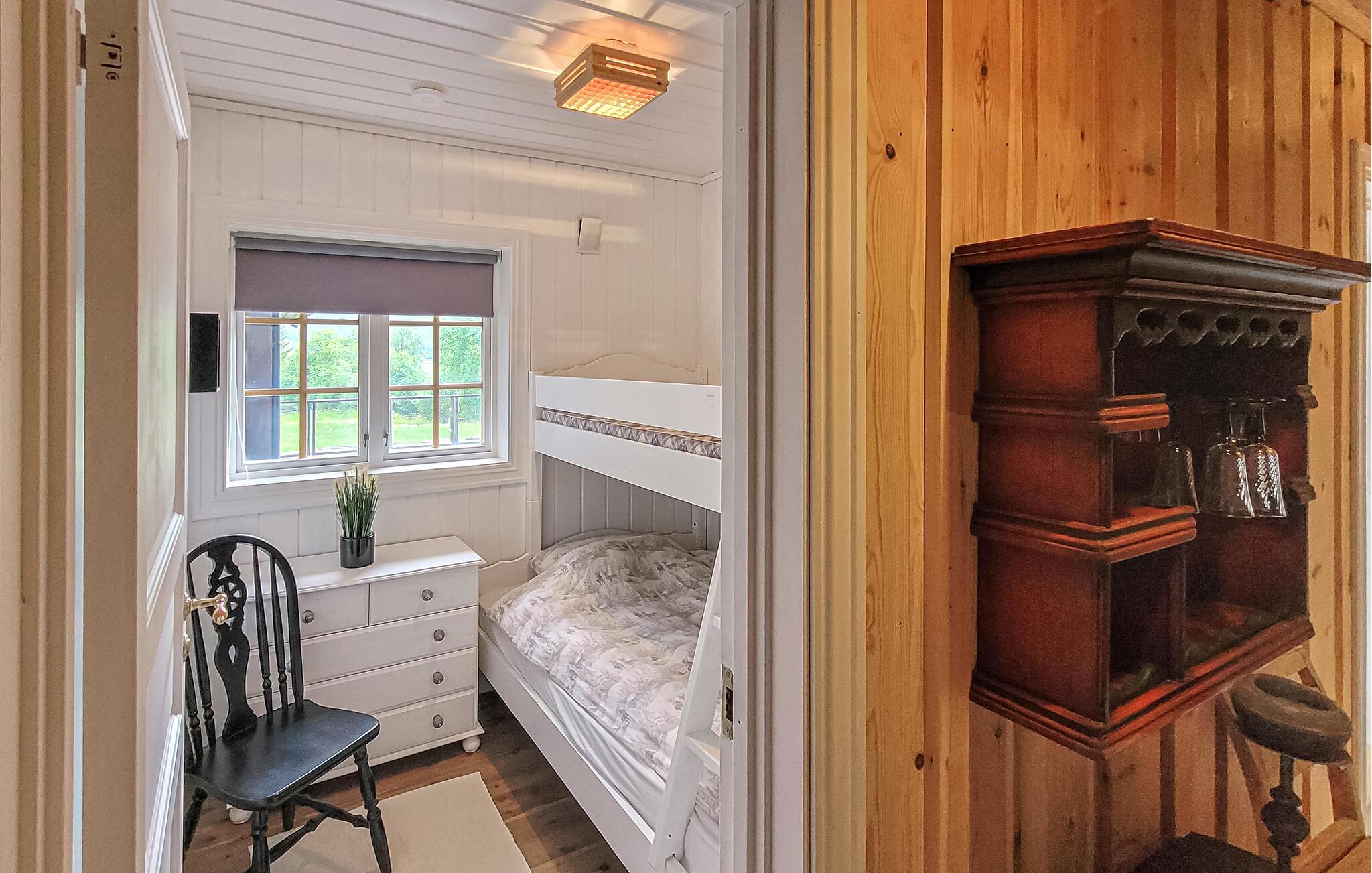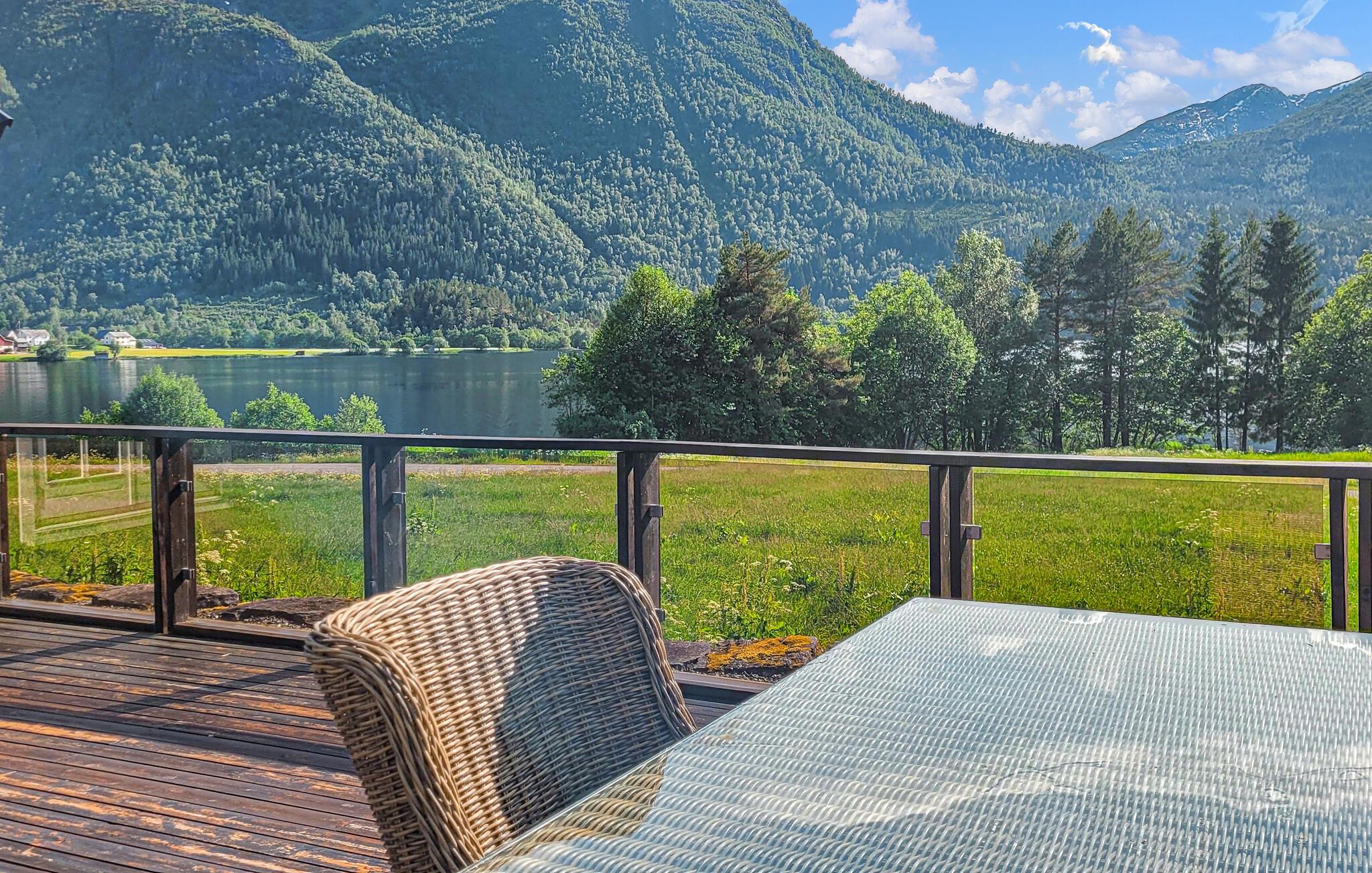 Glem alt om den travle hverdag ... Dette charmerende feriehus i Volda lægger op til en skøn pause fra det hele ved den rolige sø Bjørkedalsvatnet. Det smagfulde bolig kombinerer moderne bekvemmeligheder med en hyggelig atmosfære. Smukke sprossevinduer giver jer en vidunderlig udsigt over søen og lukker masser af lys ind. Den åbne stue med komfortable møbler og et veludstyret køkken lægger op til en masse hyggestunder med madlavning. Her kan I fylde dagene med rolige måltider, brætspil og alt det, der får jer til at slappe af.