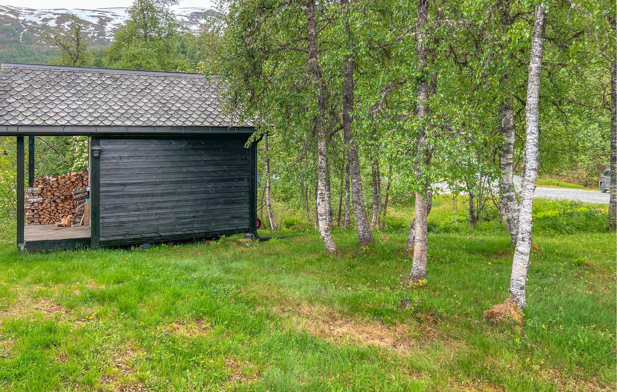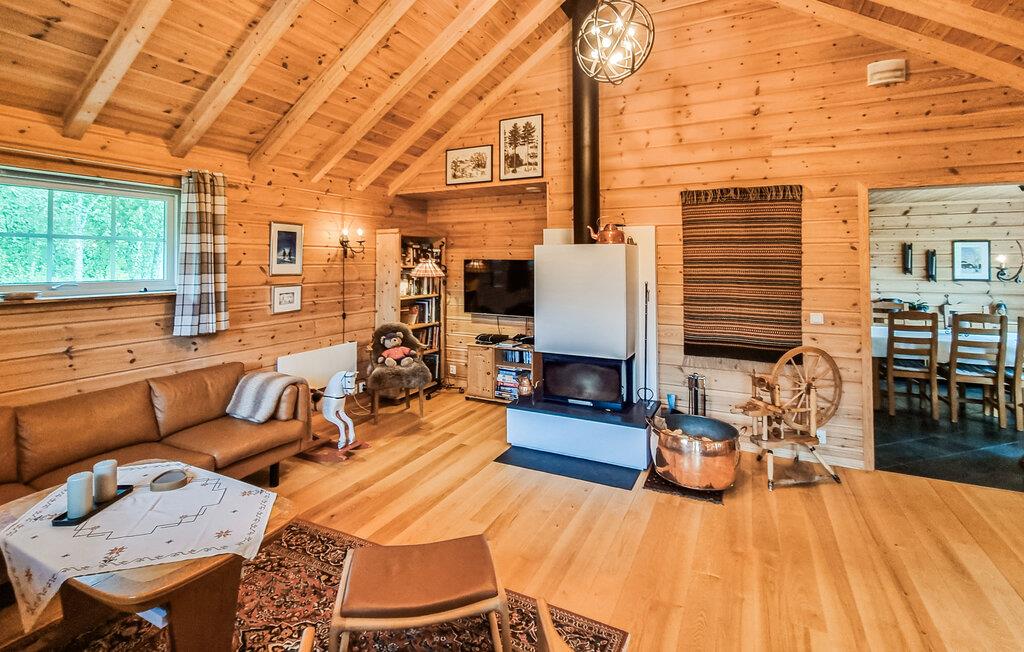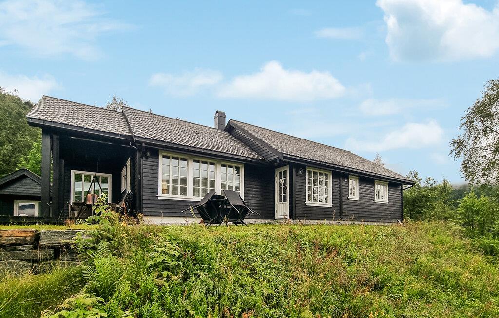 Dette hyggelige træhus er idyllisk beliggende i et malerisk landskab, omgivet af bjerge og det klare vand i Myrkdalsvatnet. Nyd den betagende udsigt fra den rummelige veranda. Inde i huset finder I en varm og indbydende atmosfære. Efter en dag med aktiviteter kan I slappe af i stuen med højt til loftet og stilfuldt træinteriør. Pejsen giver hyggelig varme og bidrager til hygge. Lav mad sammen i det åbne, moderne køkken og nyd måltiderne i godt selskab. Legetøjstoget vil helt sikkert glæde både børn og voksne.