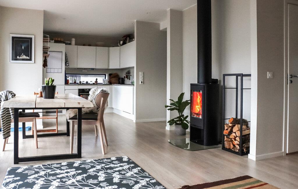Denne lejlighed er perfekt til en afslappende pause fra hverdagen. gulv til loft-vinduerne, lyst træ og en brændeovn skaber en atmosfære, hvor I hurtigt vil føle jer hjemme. Find jer til rette i sofaen, stream en god serie eller tilbered lækre måltider i det moderne køkken.