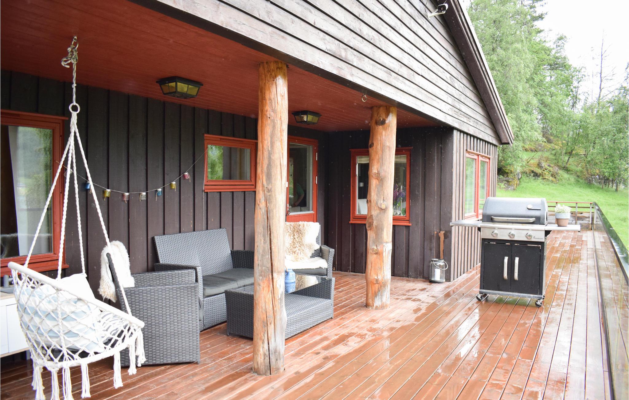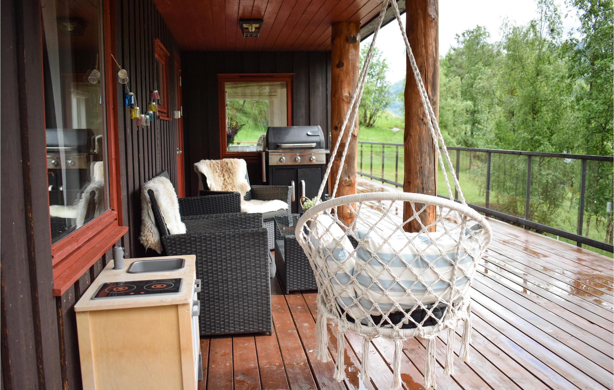 Dette skønne feriehus ligger i den vestlige del af Norge mellem fjordene Sognefjord og Hardangerfjord. Huset har en rolig beliggenhed og byder på smukke, komfortabelt indrettede værelser, der er domineret af en behagelig atmosfære. Nyd måltiderne med udsigt over søen og underhold jer selv med et brætspil om aftenen. Den rummelige, delvist overdækkede træterrasse giver plads til, at unge og gamle kan slappe af udendørs. Nyd en morgenkaffen i solskinnet eller lav en sommerlig middag på grillen, mens børnene leger. Den store naturgrund byder på masser af plads til at boltre sig og er derfor ideel til familier.
