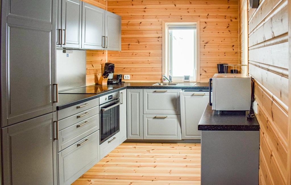 Efter en aktiv dag i naturen er det skønt at vende hjem til hytten og få varmen foran brændeovnen. Hytten byder desuden på et meget rummeligt og veludstyret køkken, hvor I kan tilberede lækre feriemåltider.