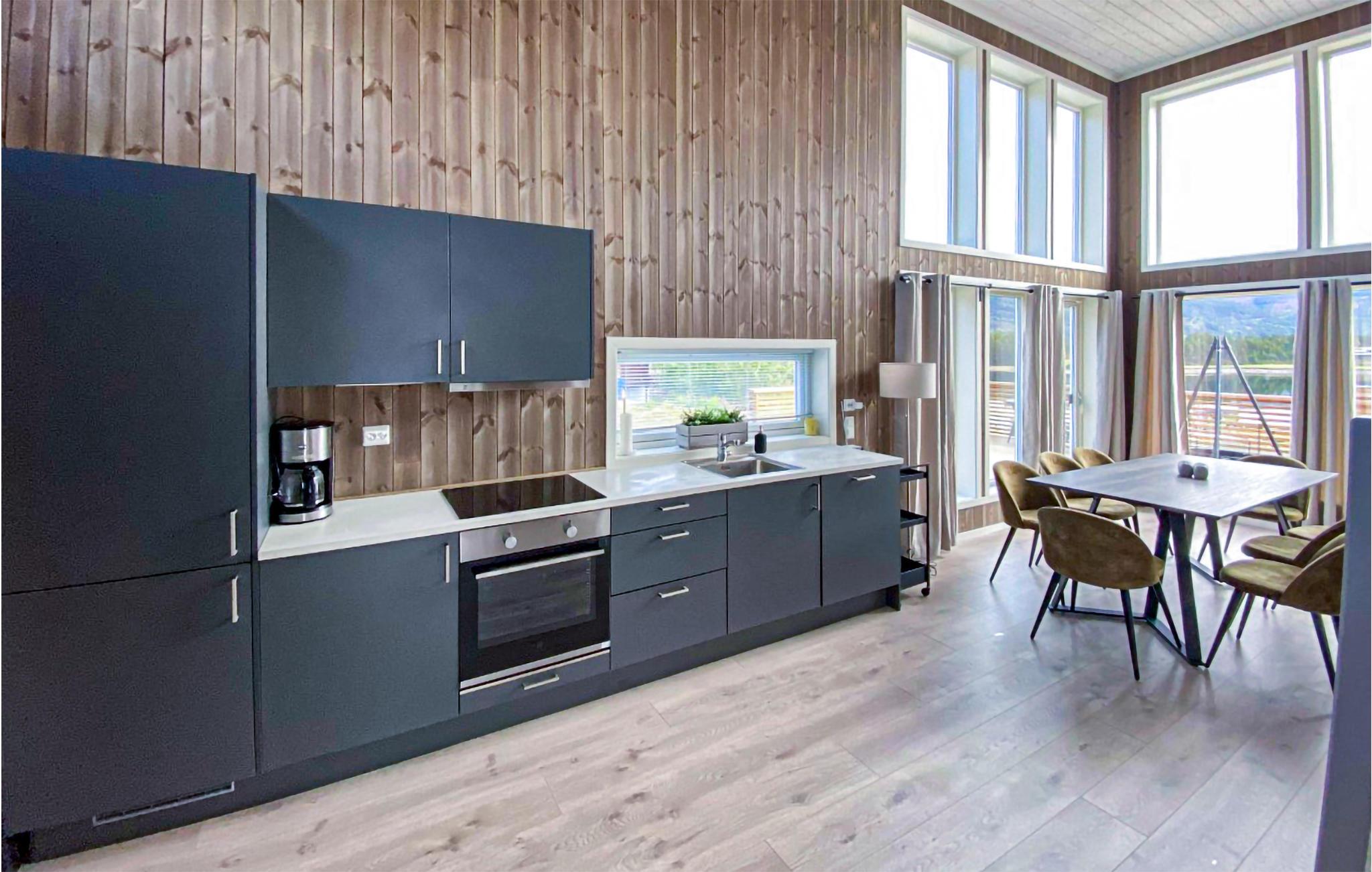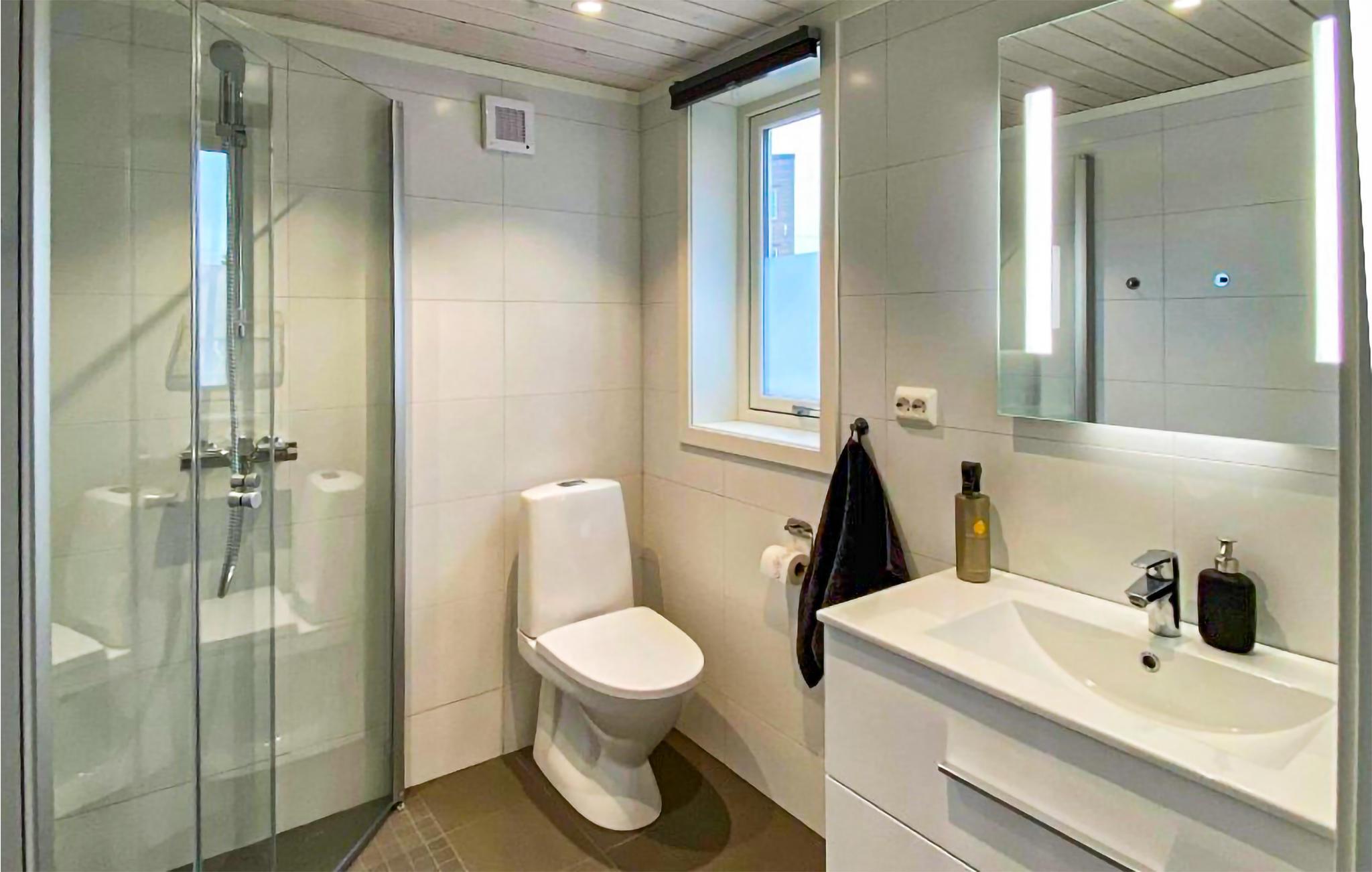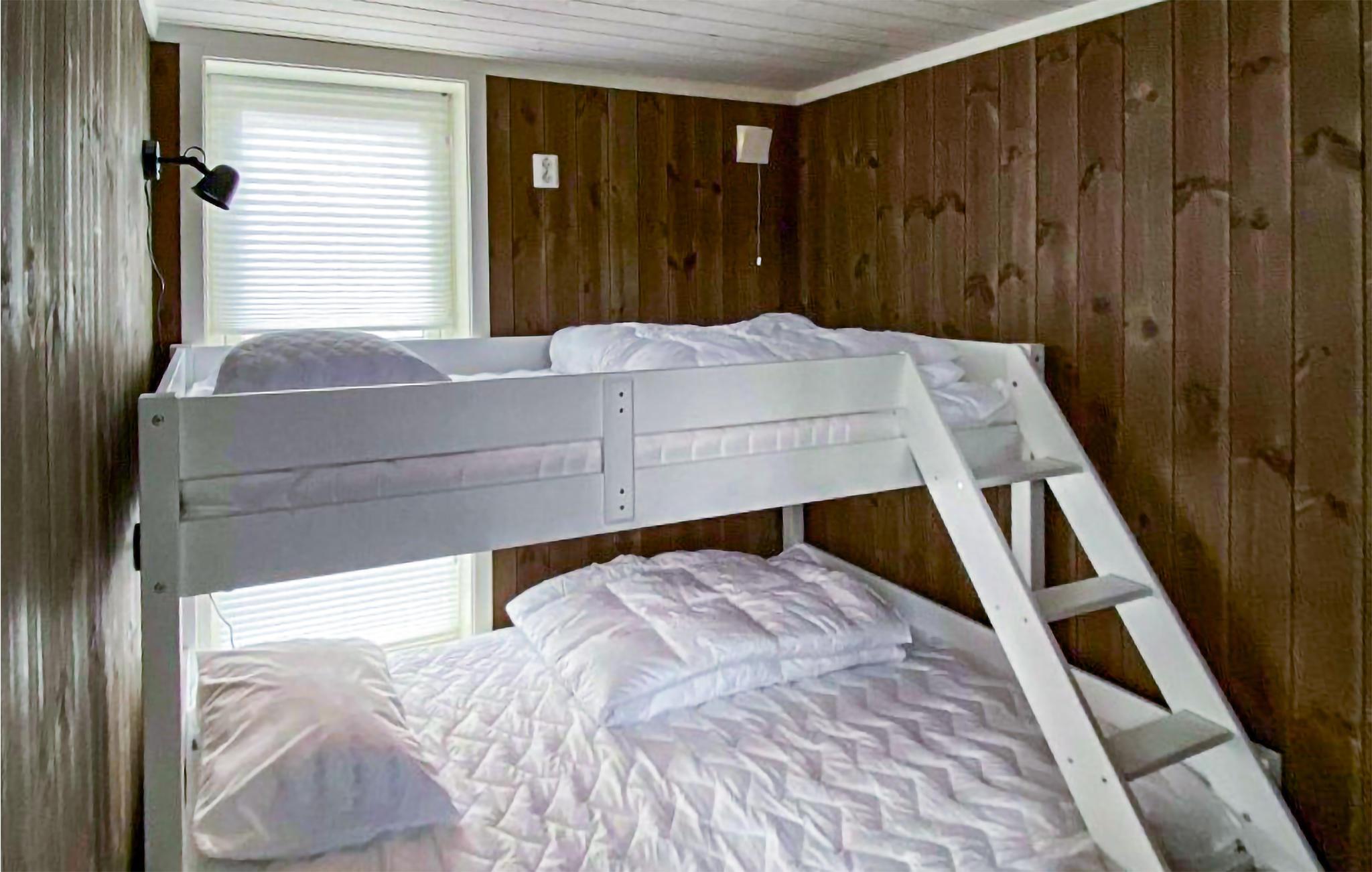 Dette skønne feriehus ligger smukt ved søen Bussvikfjord. Indenfor kan I forvente et attraktivt interiør af høj kvalitet, der gør et smagfuldt indtryk. I kan samles om lækre måltider i den smukke spiseplads og tilbringe dovne aftener i det lyse sofahjørne med udsigt over vandet. I kan også tilbringe mange skønne timer på den rummelige terrasse med flere hyggelige hjørner. Her kan I nyde roen og beundre den fantastiske udsigt over omgivelserne. Lad dagen slutte behageligt ved brændeovnen.