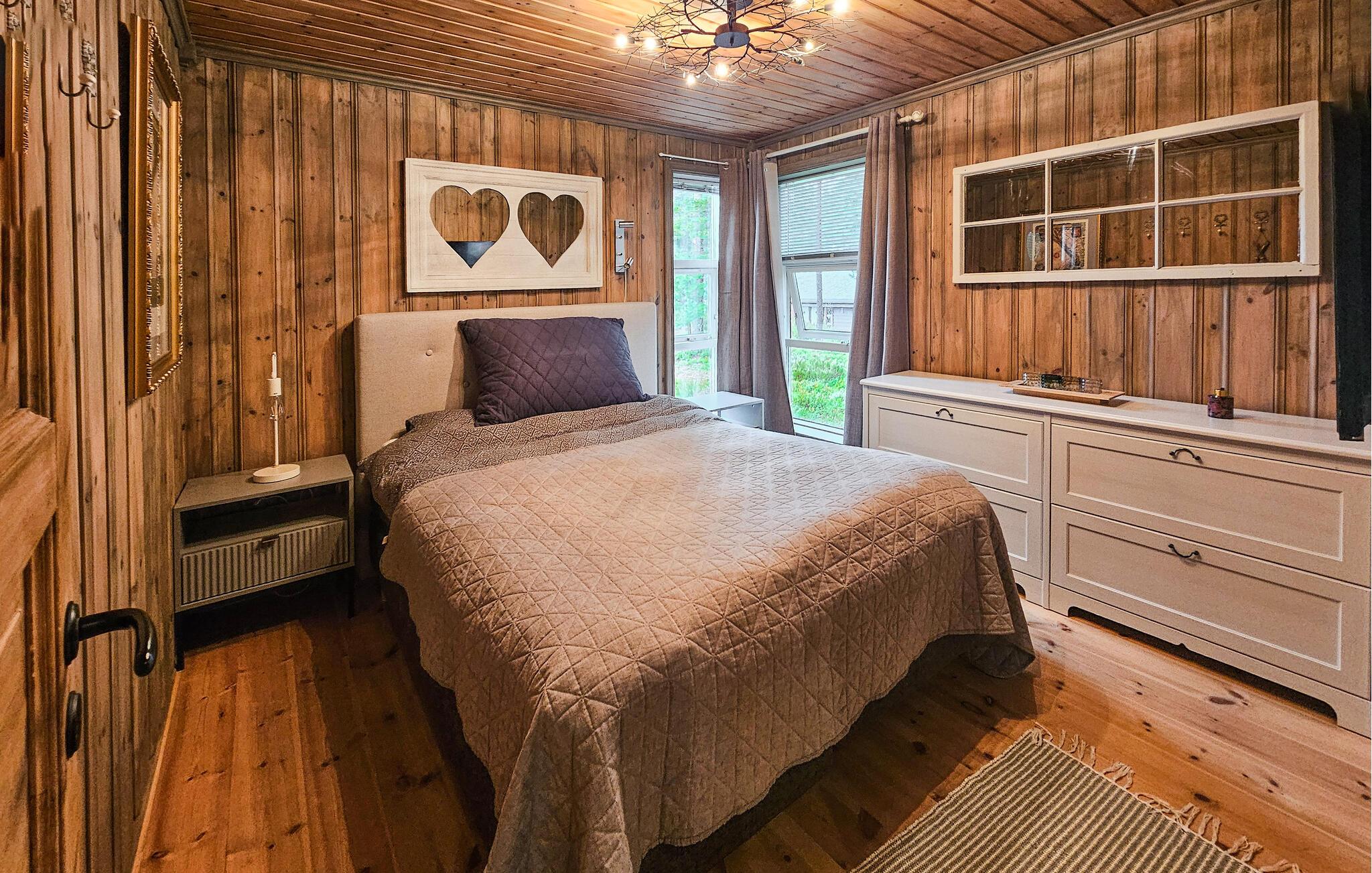 Velkommen til dette luksuriøse feriehus med en flot beliggenhed kun 25 m fra søen Nisser. Herfra har I udsigt til både fjeld og vand samt golfbanen, der er jeres nærmeste nabo. På øverste etage af huset er der indrettet en hyggelig loftstue med tv, hvor børnene kan hygge sig, mens I andre sidder nedenunder og hyggesnakker. I har gode fiskemuligheder i både Nisser og i andre fjeldsøer. Om sommeren kan I følge de afmærkede ruter, som starter lige ved hytten eller tage gondolbanen op til toppen af fjeldet og vandre indover vidderne. Der er desuden kort afstand til Hardangervidda med rigtig mange muligheder for gåture. Historiske seværdigheder findes ved Vemork med tungtvandanlægget fra krigens tid og Rjukan (UNESCO), og ligger ikke langt væk. I området findes også mange bær og svampe, og måske har I lyst til en bæversafari? Der er mulighed for cykelture både langs vej og på mountainbike. Her findes også kajakudlejning. Her er simpelthen så mange muligheder, at I næsten har for lidt tid. Vinteren byder på gode skiløjper lige udenfor døren, og der er kort afstand til Vrådal Alpinanlæg.