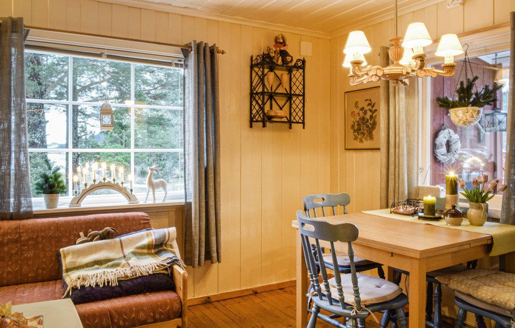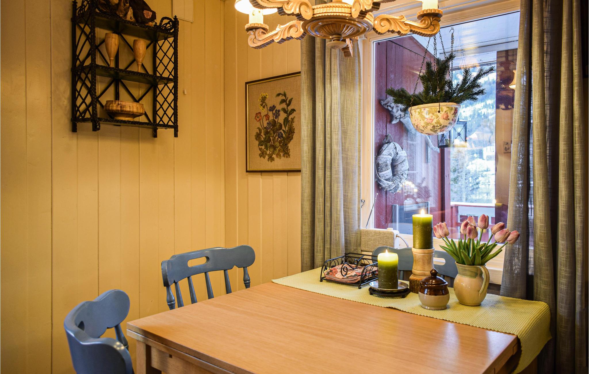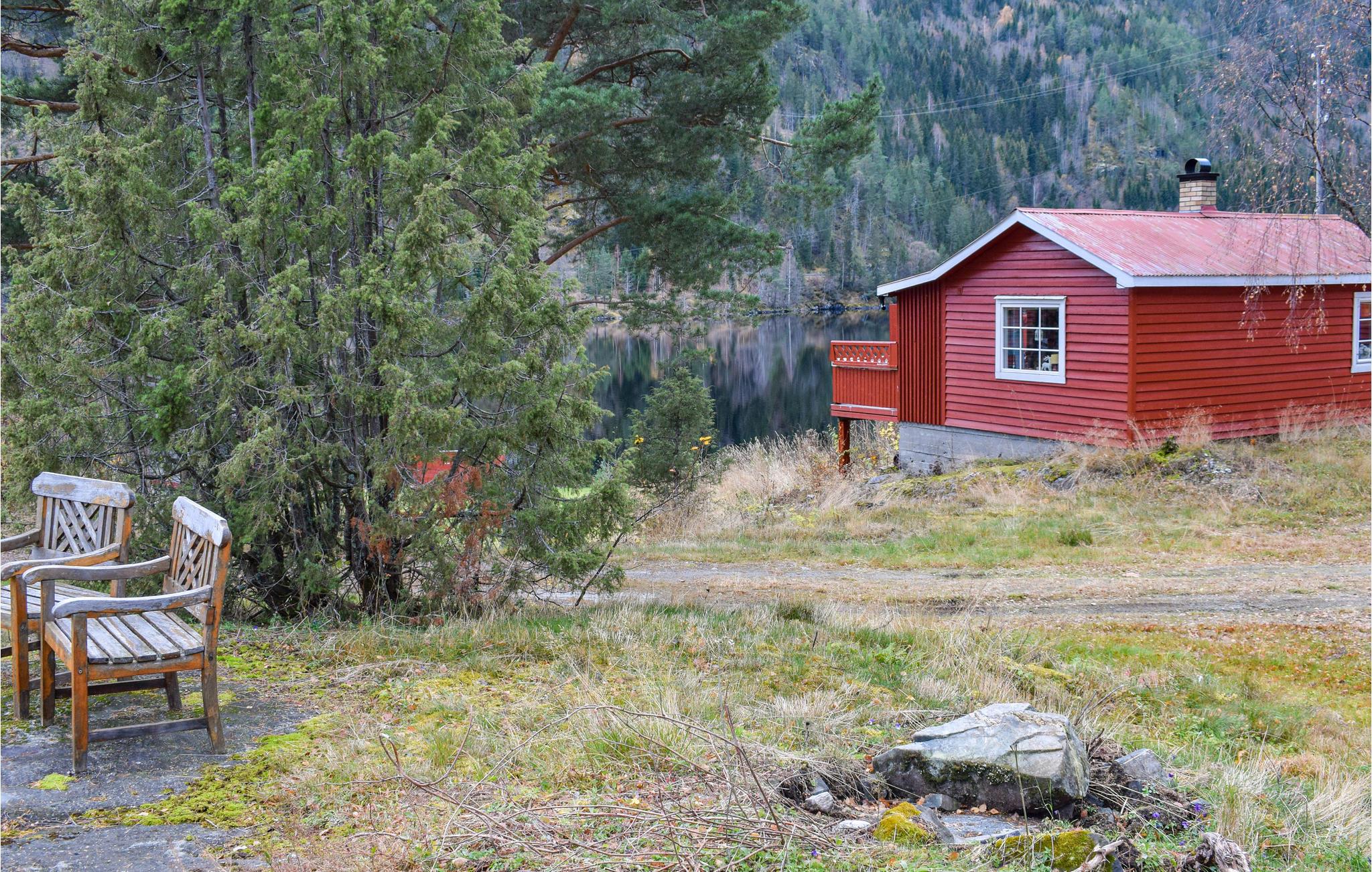 Dette feriehus i Vrådal tilbyder jer enkel, men hyggelig bolig til en afslappende pause ved vandet. Lad jeres blik vandre over den rolige sø Vråvatn og nyd naturens fred og ro. Begynd dagene med morgenmad på terrassen. Hytten er praktisk indrettet og byder på alt hvad I behøver for et behageligt ophold. I stuen finder I et behageligt sofahjørne, der lægger op til afslapning. Tilbered jeres måltider i det enkle, men funktionelle køkken og nyd dem ved spisebordet med udsigt udenfor. På kølige dage skaber brændeovnen en hyggelig atmosfære.