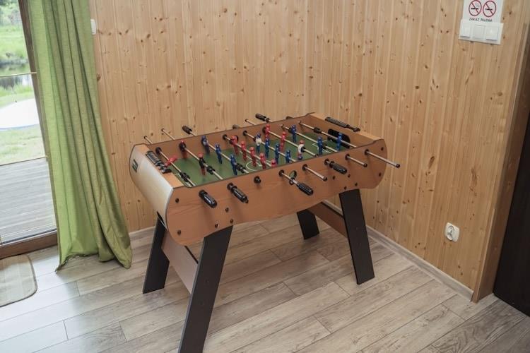 Et ideelt sted til afslapning væk fra travlheden, omgivet af natur, ved en privat, vandfyldt dam. Her har morgenkaffen ved solopgangen en unik smag. Et stort, komfortabelt toetagers feriehus på en privat, indhegnet grund (til eksklusiv brug for gæster) med et gratis spa-område: sauna, spabad med jacuzzi og et kølende kar. I stueetagen er der en rummelig stue (med tv, stort bord, pejs, bordfodboldbord og en dobbelt sovesofa), et veludstyret køkken og et badeværelse med bruser. Ovenpå er der tre separate soveværelser. Sommerhuset har en sauna og et tilstødende kølende kar og jacuzzi. Pejsevarme (brænde inkluderet i prisen). Trådløst internet er tilgængeligt. Der er en stor, overdækket terrasse med havemøbler. På den private grund er der en vandfyldt dam (til eksklusiv brug for gæster, gratis fiskeri er muligt) og et havepavillon med grill og bålplads. Sikker parkering er tilgængelig. På den tilstødende grund har gæster fra tre tilstødende feriehuse adgang til en legeplads, volleyballbane, bordtennis, stave til stavgang, fodboldmål og et udendørs fitnesscenter. Gæsterne kan gratis benytte adskillige gokarts. Prisen inkluderer: sengelinned, håndklæder, badekåber, sauna, spabad med jacuzzi, vand, brænde, slutrengøring, internet, parkering og fiskeri i den private dam. En barneseng og højstol er tilgængelige efter anmodning. Feriehuset ligger i hjertet af Kasjubien, omgivet af tætte skove, maleriske enge og talrige søer med krystalklart vand. Det nærmeste svømmeområde er Skrzynki Duze-søen (3,6 km fra huset). Der er også et dykkercenter. I den nærliggende landsby Lipusz (1,5 km) er der en større butik, restauranter og kajakudlejning (til kajakture på Wda-floden).