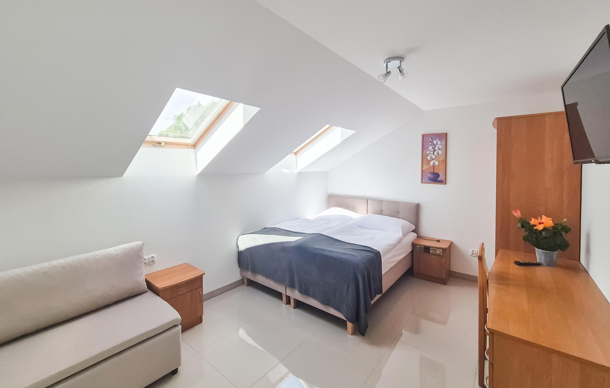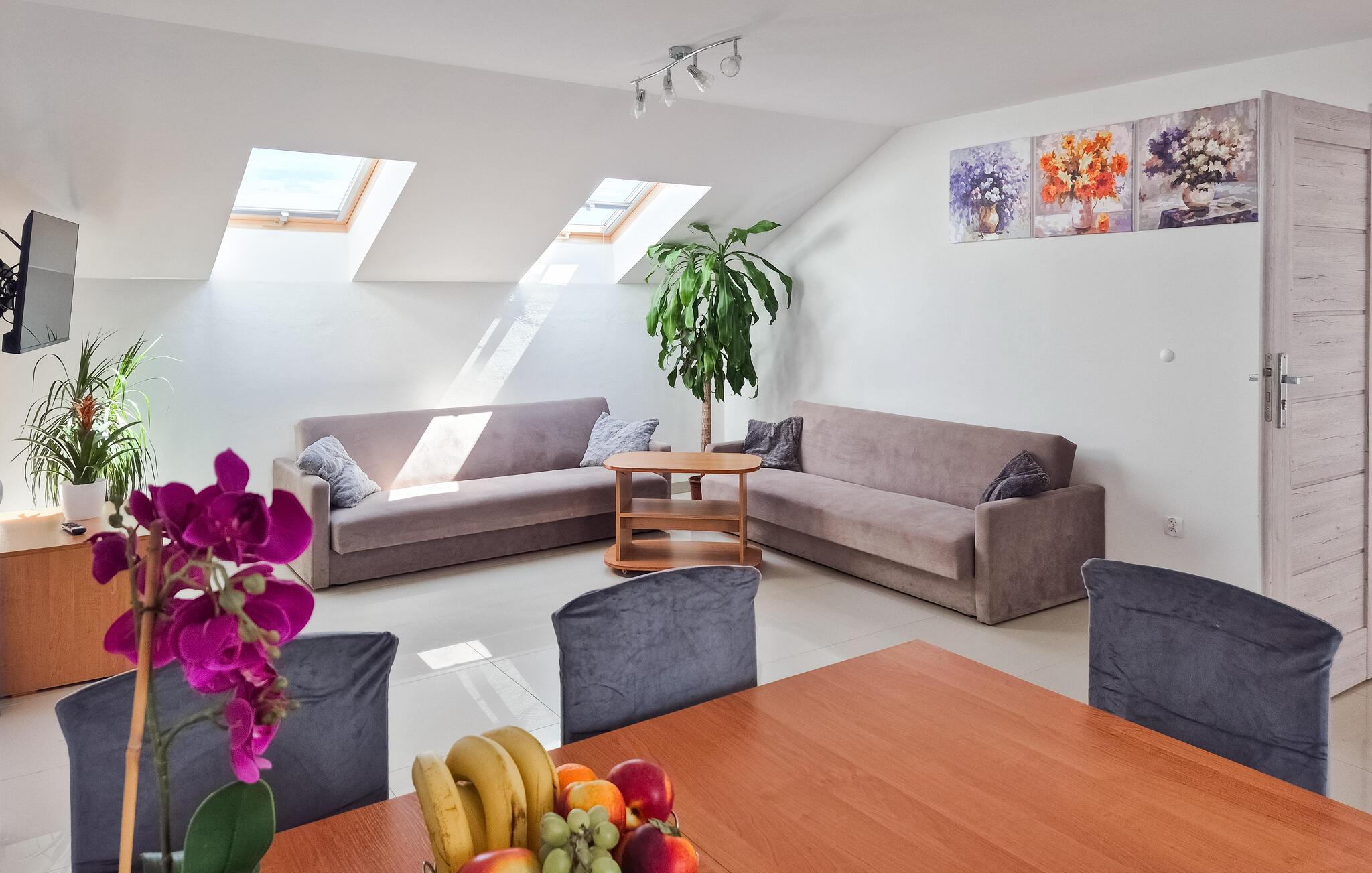 Denne indbydende, æyse ferielejlighed ligger i Bedzino, nogle få kilometer fra den polske kyst mod Østersøen. Nyd nogle afslappende dage her med kæresten, den lille familie eller jeres hunde. De velindrettede, flotte rum giver jer alt, hvad I skal bruge til at forsøde dagene, både når I laver mad, nyder dagens måltider, spiller brætspil eller bare slapper af.
