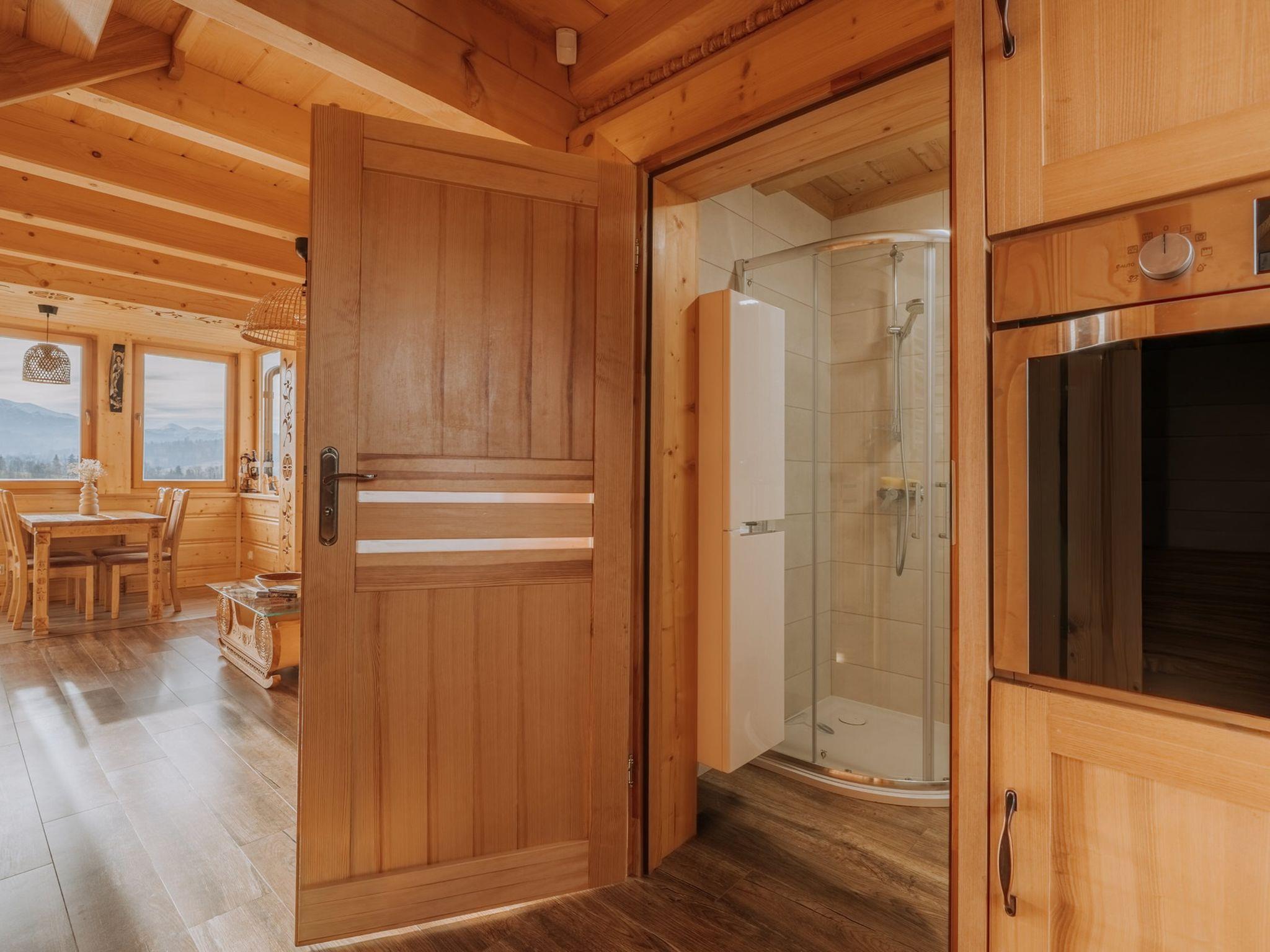 Modern, comfortable chalet "Góralskie Zacisze", built in 2019. On the outskirts, in an elevated position, in the countryside. Private: property 200 m2 (fenced), garden 200 m2 (fenced). Barbecue. In the house: WiFi, sauna. Steep footpath to the house. Parking at the house. Restaurant 800 m, bus stop 1.3 km, railway station 10 km. Nearby attractions: Muzeum Szymanowskiego 10 km, Aqua Park Zakopane 10 km, Wodospad Sieklawica 12 km. Well-known ski regions can easily be reached: Gubalówka 11 km, Tatrzanski Park Narodowy 12 km, Wielki Giewont 13 km.