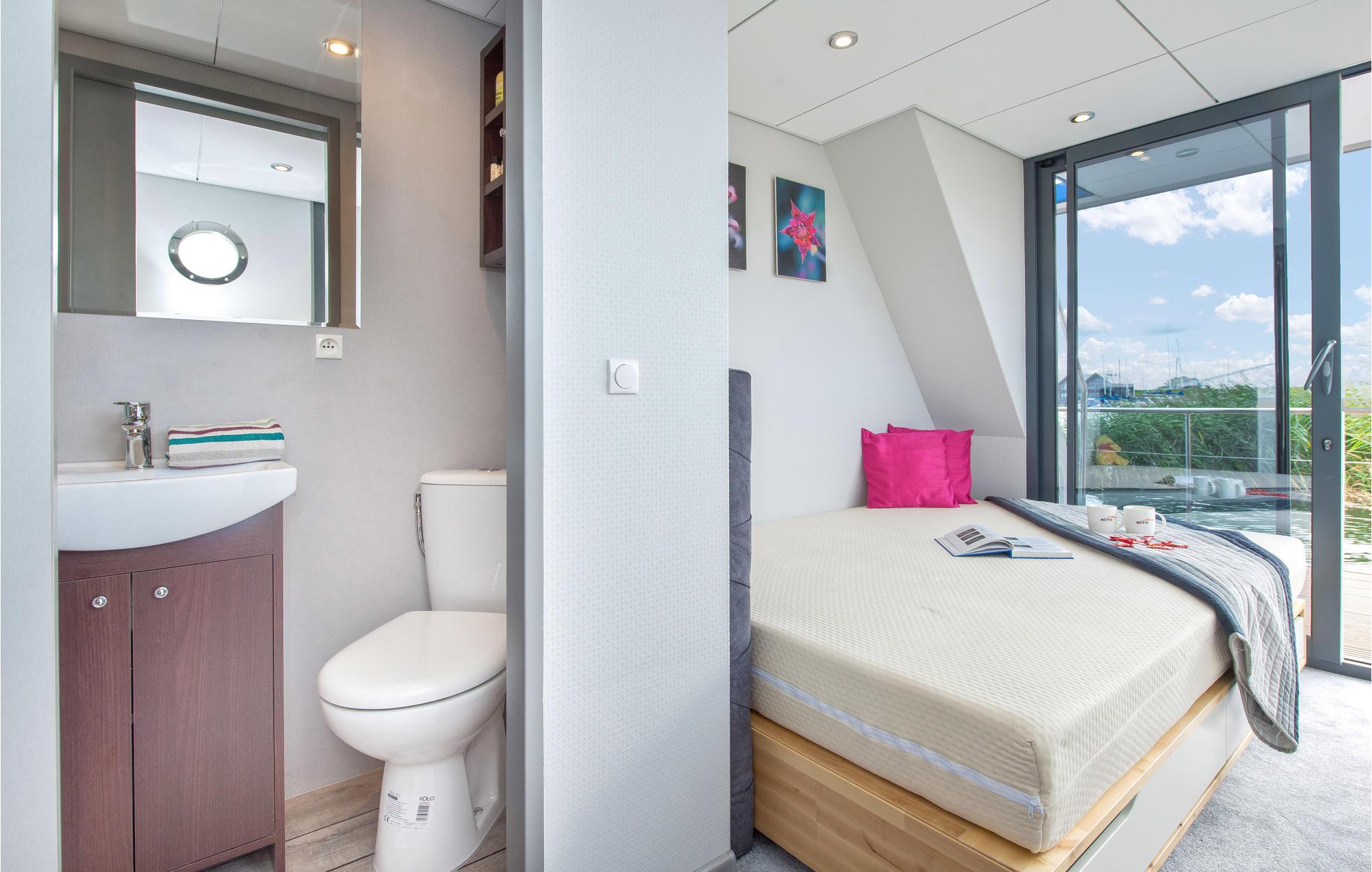 Denne feriebolig er en kombination af en luksusbåd og en lejlighed. Den er udstyret med alt, hvad der er nødvendigt for et behageligt ophold. Beliggenheden garanterer fred og ro. Der er en lille strand og et grillområde lige ved siden af fortøjningspladsen.