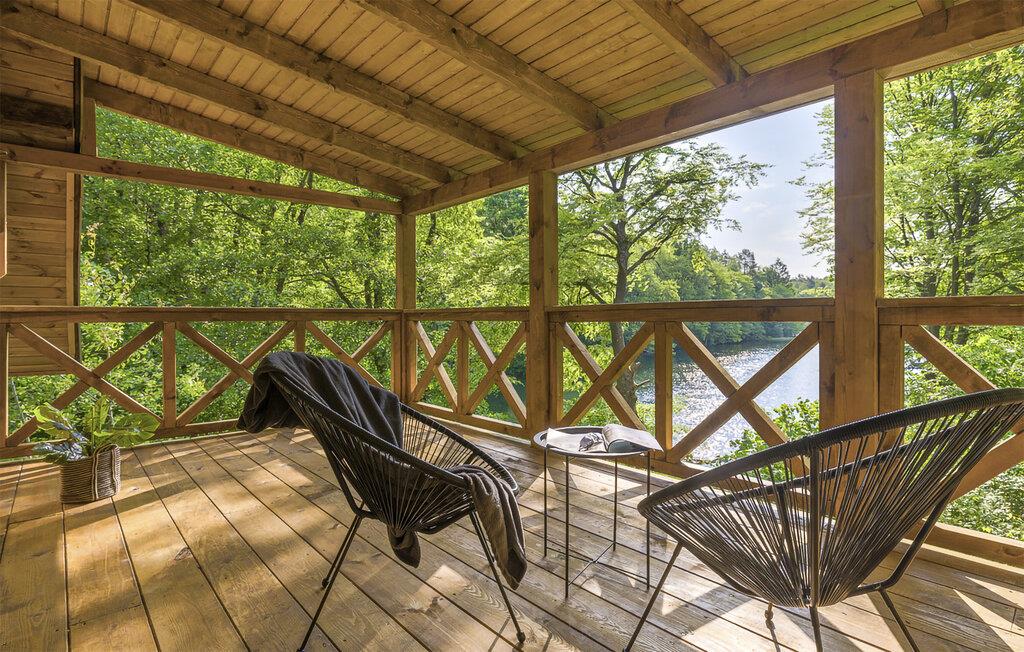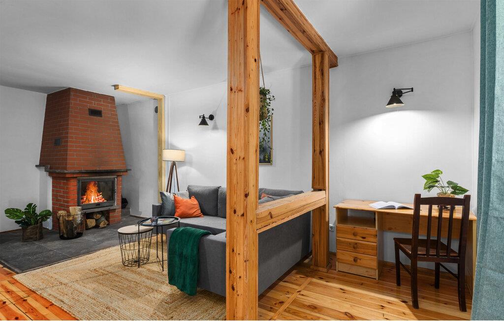 I dette charmerende træhus i Porost kan I se frem til rendyrket hygge. Det synlige bindingsværk og moderne design skaber en harmonisk sammenhæng mellem tradition og nutidig komfort. Den stilfulde bolig byder på alt, hvad I skal bruge til en afslappende ferie, inklusive en hyggelig pejs, som kan holde jer varm på kølige aftener.