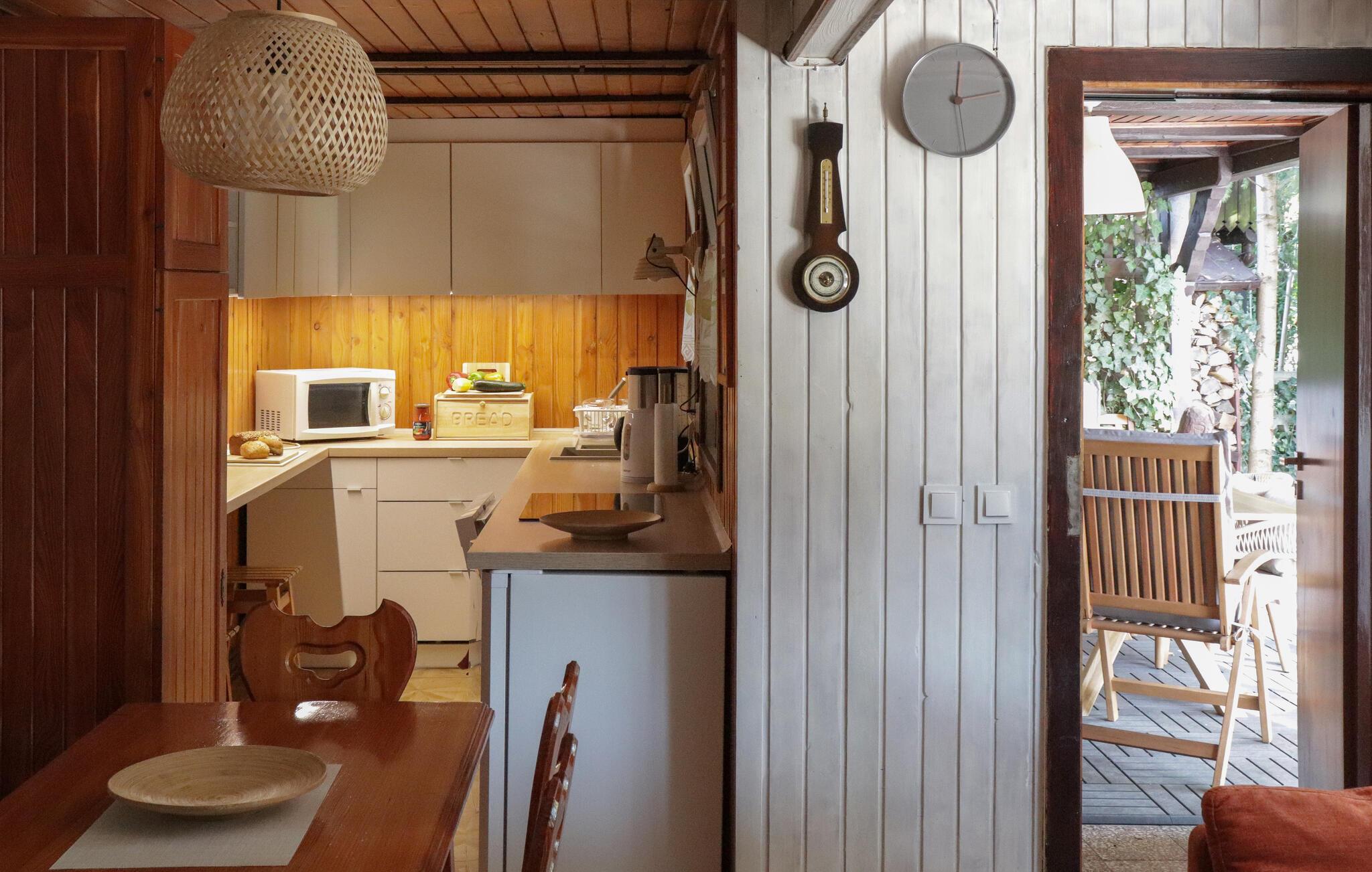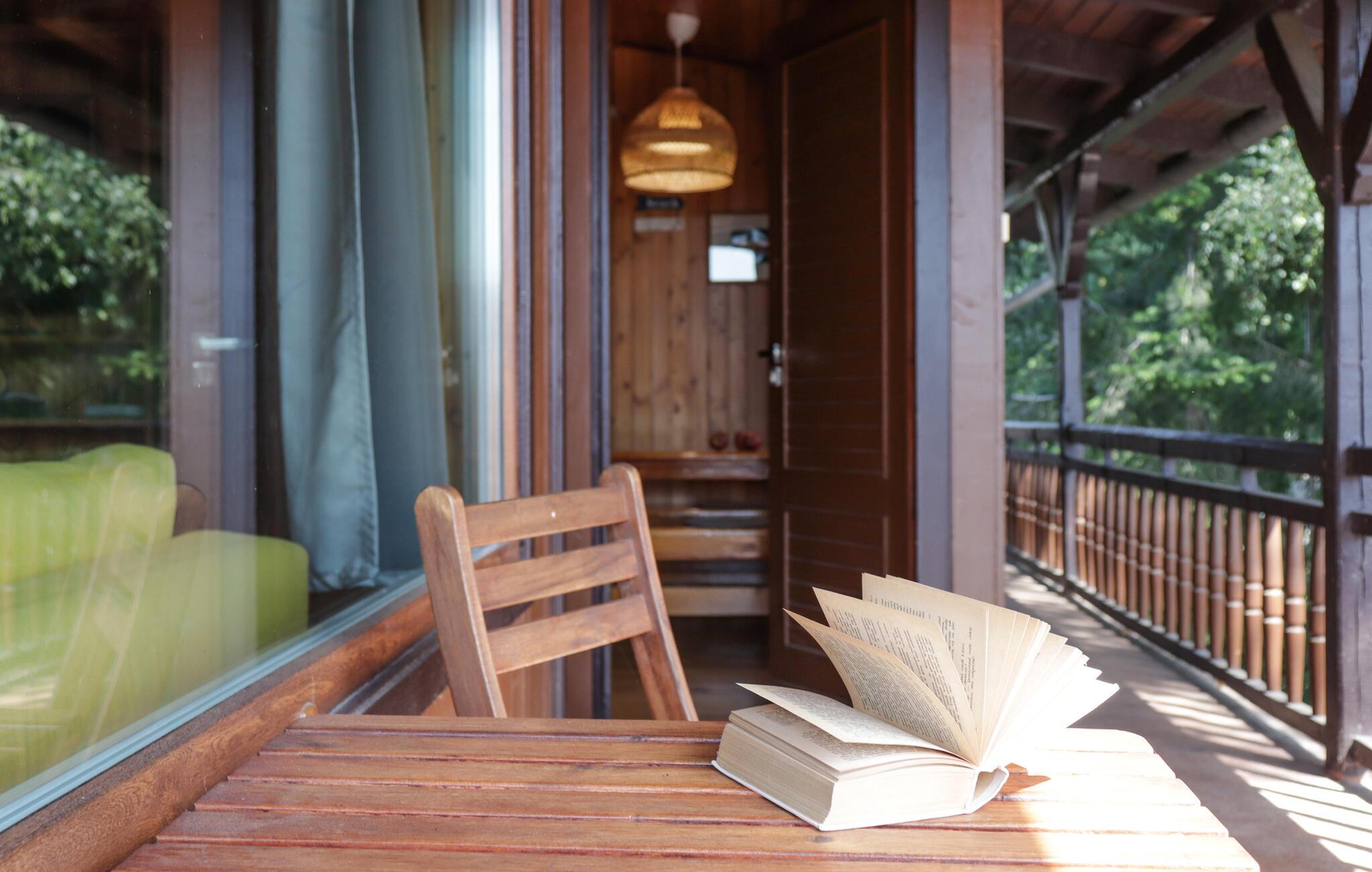 Det er også dejligt at være på ferie her om vinteren, hvor de sneklædte skove er en fryd for øjet, og søen muligvis fryser til is, så man kan gå eller skøjte på den. På sådanne dage giver husets brændeovn varme og skaber en hyggelig stemning.