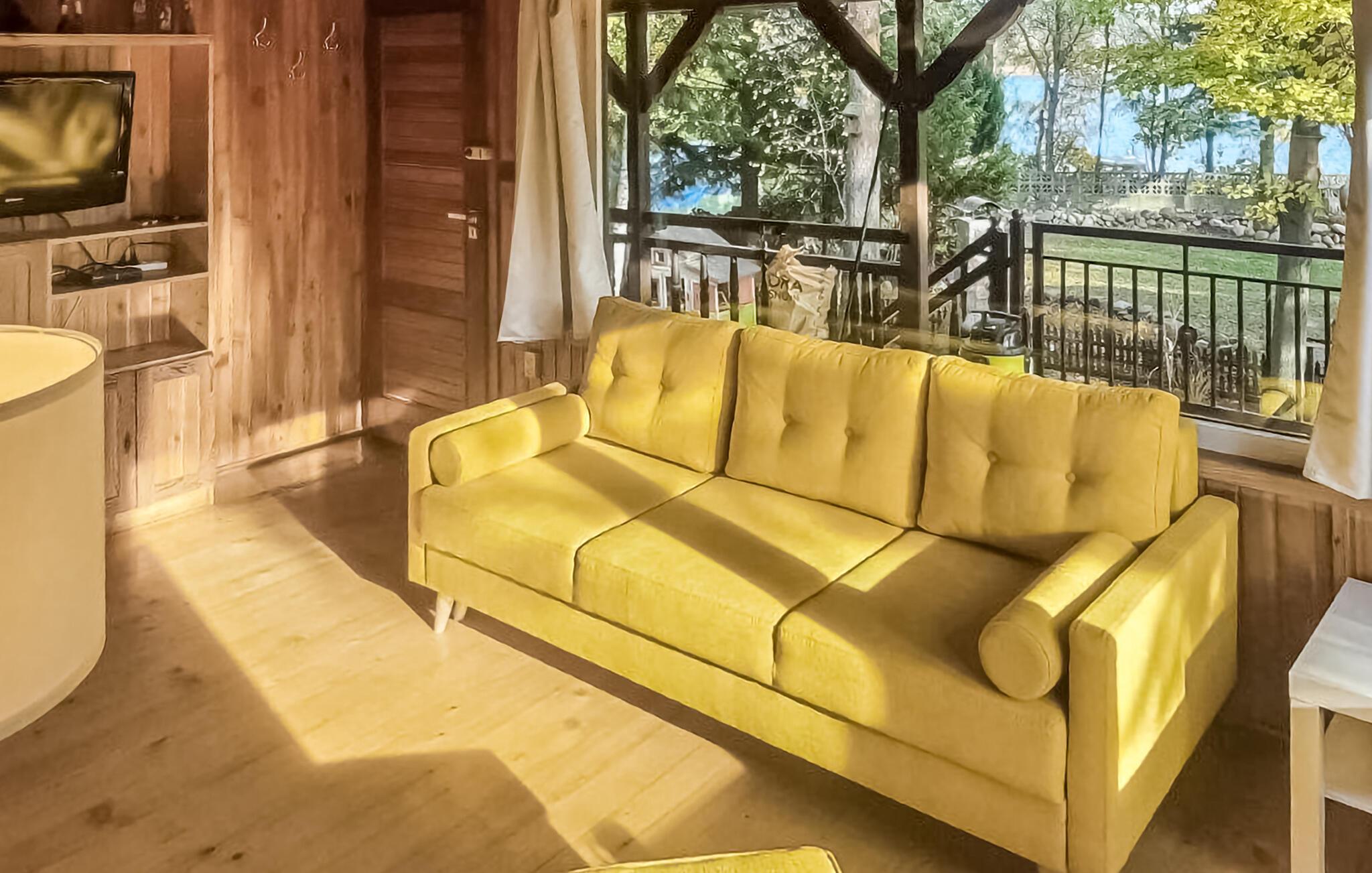 Velkommen til dette rummelige feriehus med få meter til søen og panoramaudsigt over samme. Her kan I virkelig gå ned i gear og tilbringe en afslappet ferie med mange naturoplevelser, såsom badning og fiskeri i søen og lange gåture i skovene omkring den. Huset har takket være dets trægulve, vægge- og lofter en meget hyggelig, nærmest hytteagtig atmosfære. Store vinduer lukker meget dagslys ind og giver en vidunderlig udsigt over søen.