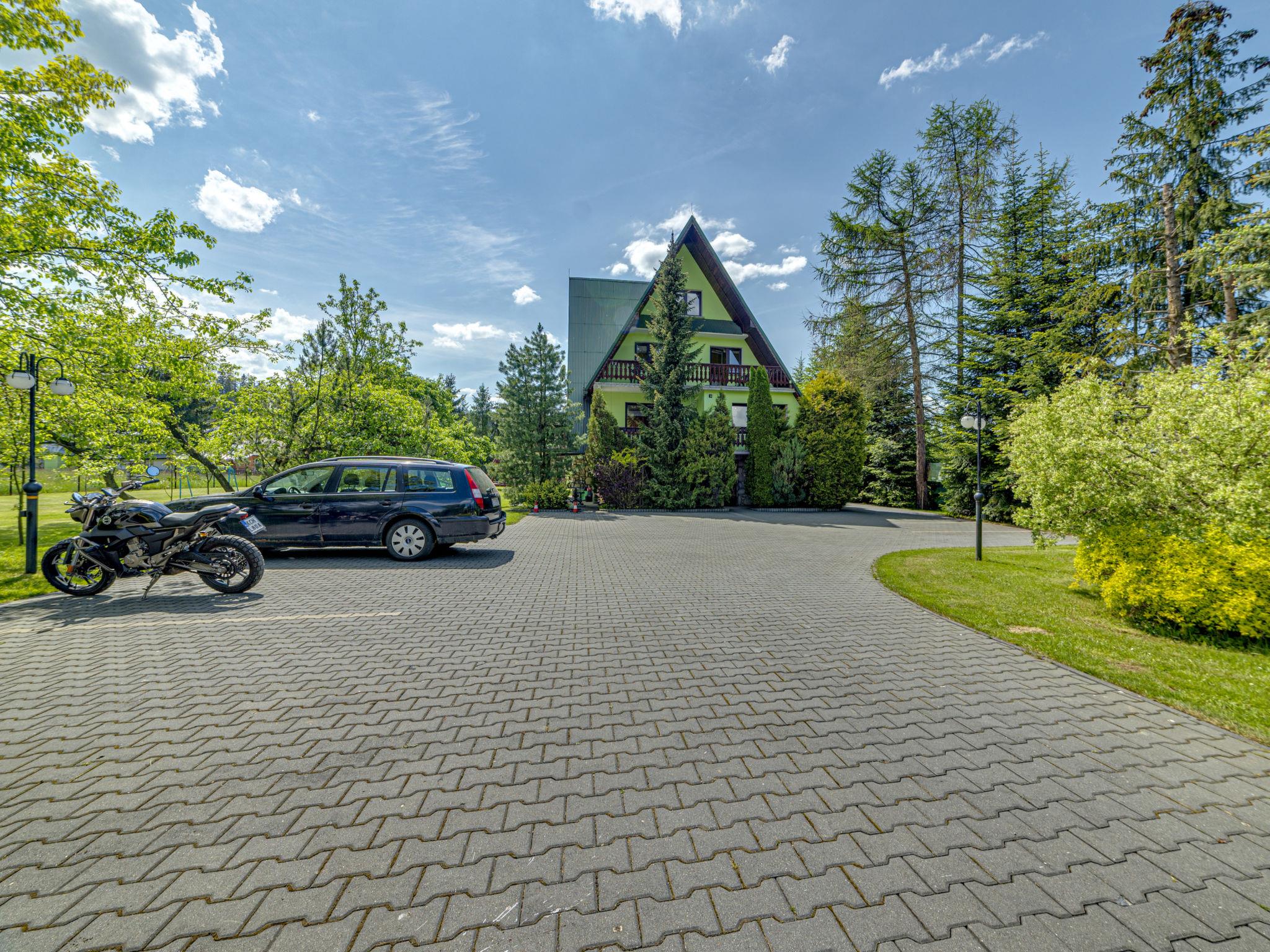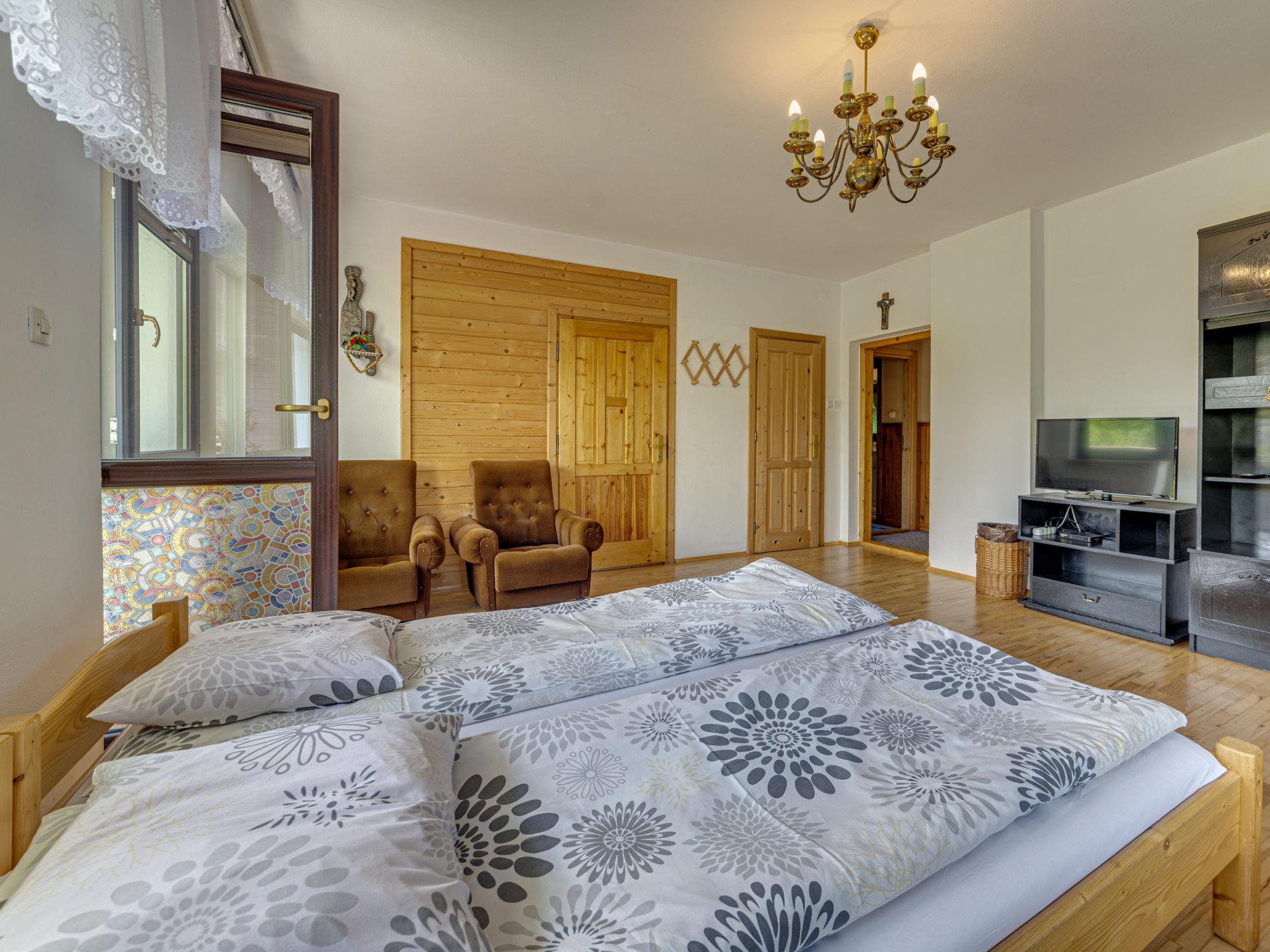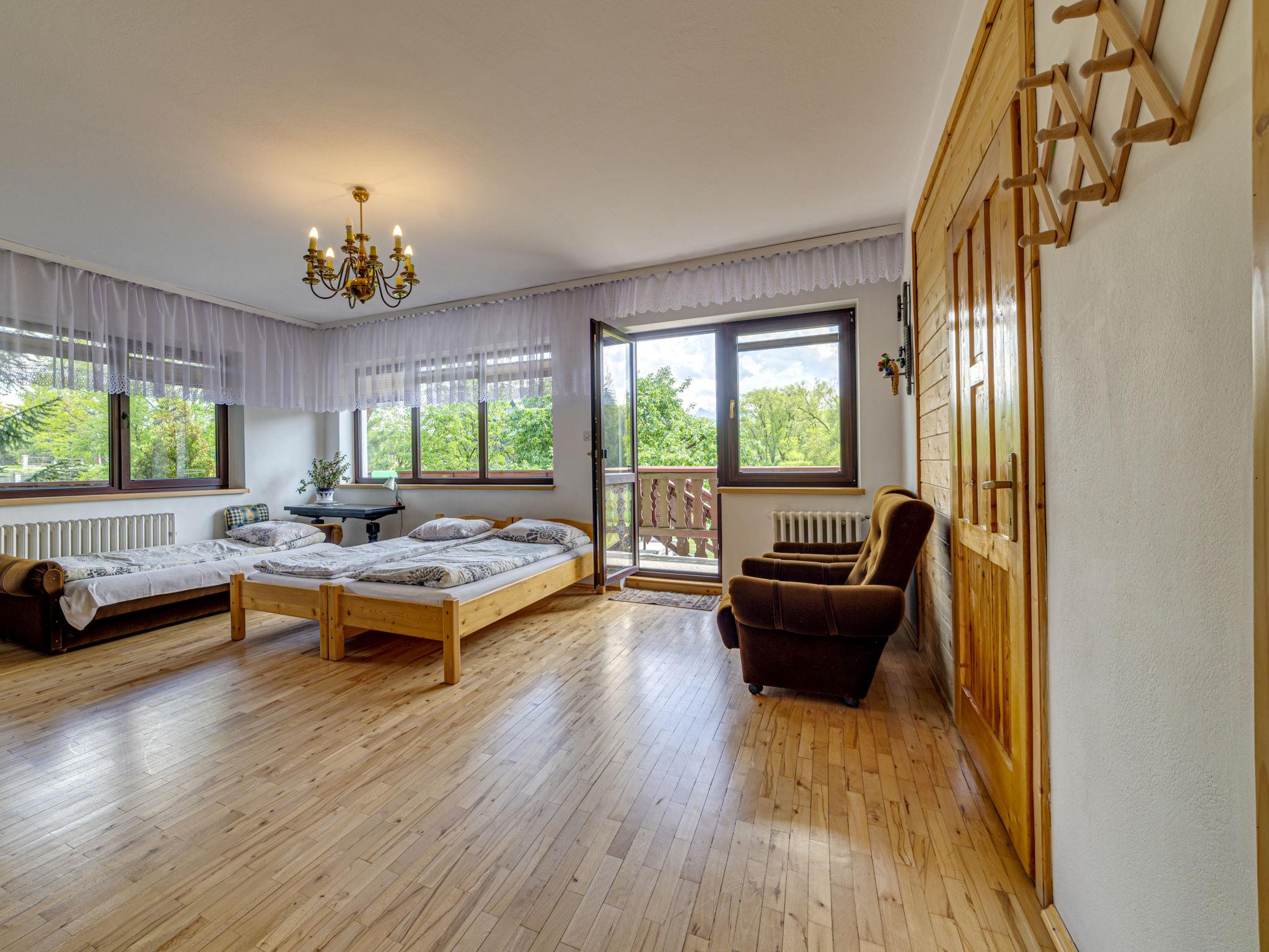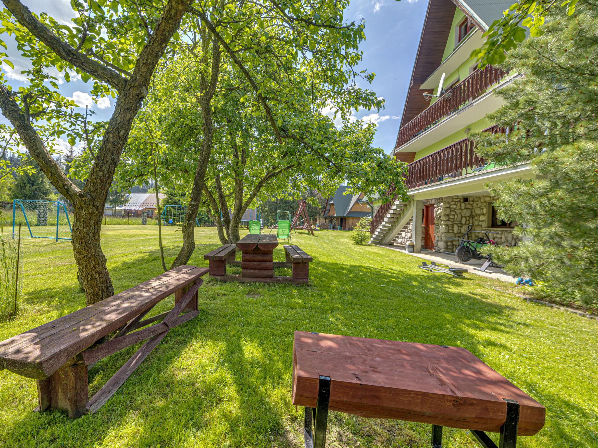 Chalet "Super Hacjenda". 4 apartments in the property. In a quiet, sunny position, 100 m from the edge of the forest, 500 m from the skiing area, 200 m from the river, in the countryside. For shared use: property 5'000 m2 (fenced), lawn, orchard, swimming pool (above ground) (5 m diameter, depth 125 cm, seasonal availability: 01.Jun. - 31.Aug.). Garden furniture, barbecue, fireplace (swing, sandbox). Motor access to the house. Parking at the house on the premises. Shop, grocery, restaurant 200 m, bus stop 200 m, indoor swimming pool 3 km, thermal baths "Bialka Tatrz./Bukowina Tatrz." 5 km. Tennis 200 m, riding stable 2 km, ski lift 500 m. Please note: suitable for families. The owner lives on the same property. 40 ski-lifts within the distance of 10 km. Possibility of organizing sledging (extra).