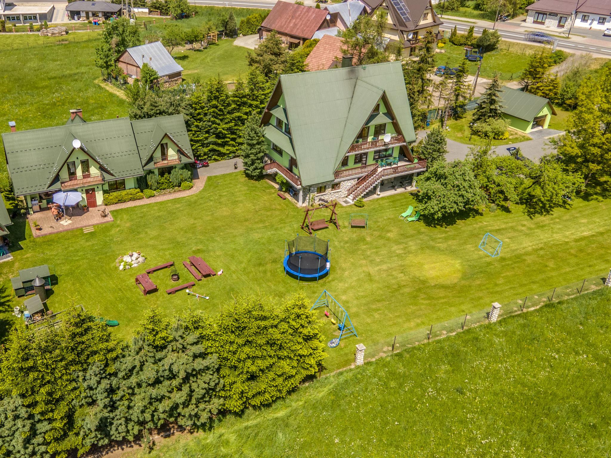 Chalet "Super Hacjenda". 4 apartments in the property. In a quiet, sunny position, 100 m from the edge of the forest, 500 m from the skiing area, 200 m from the river, in the countryside. For shared use: property 5'000 m2 (fenced), lawn, orchard, swimming pool (above ground) (5 m diameter, depth 125 cm, seasonal availability: 01.Jun. - 31.Aug.). Garden furniture, barbecue, fireplace (swing, sandbox). Motor access to the house. Parking at the house on the premises. Shop, grocery, restaurant 200 m, bus stop 200 m, indoor swimming pool 3 km, thermal baths "Bialka Tatrz./Bukowina Tatrz." 5 km. Tennis 200 m, riding stable 2 km, ski lift 500 m. Please note: suitable for families. The owner lives on the same property. 40 ski-lifts within the distance of 10 km. Possibility of organizing sledging (extra).