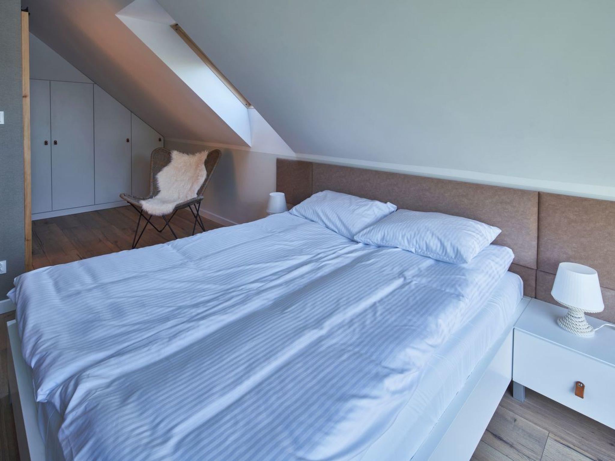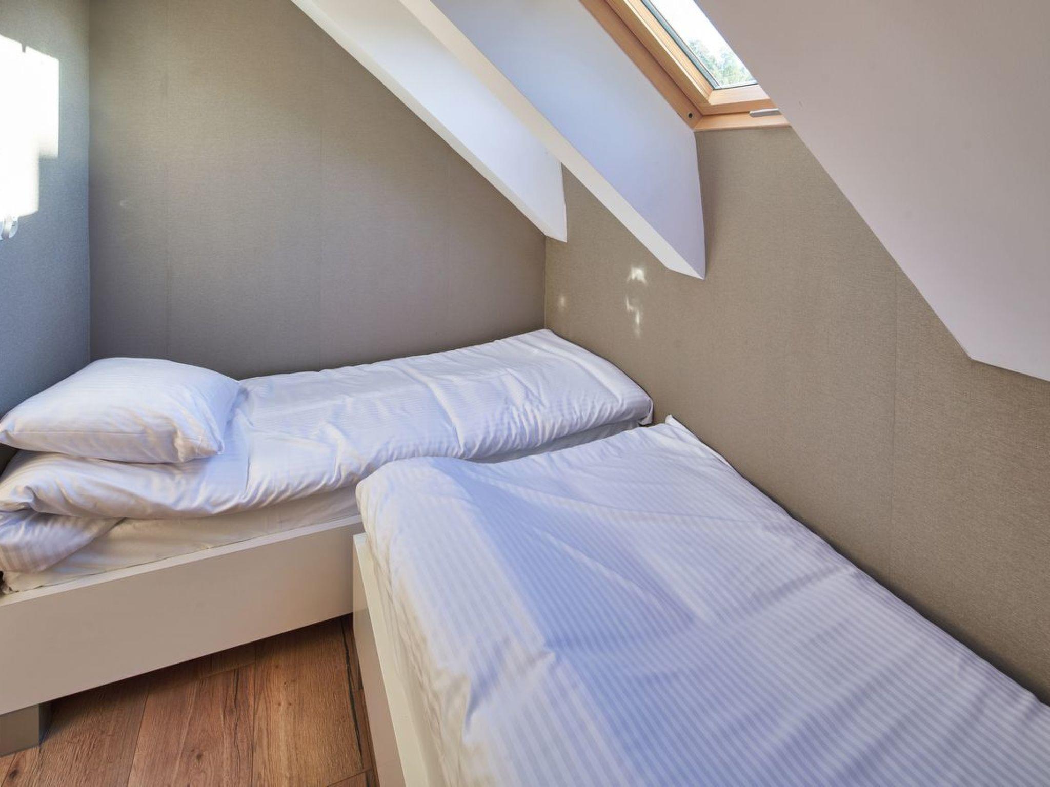 In the attic there are three bedrooms. Two large ones with a double bed and a small bedroom with two single beds (90 x 200 and 90 x 175). The houses are provided for up to 6 people, which guarantees the necessary space and privacy.