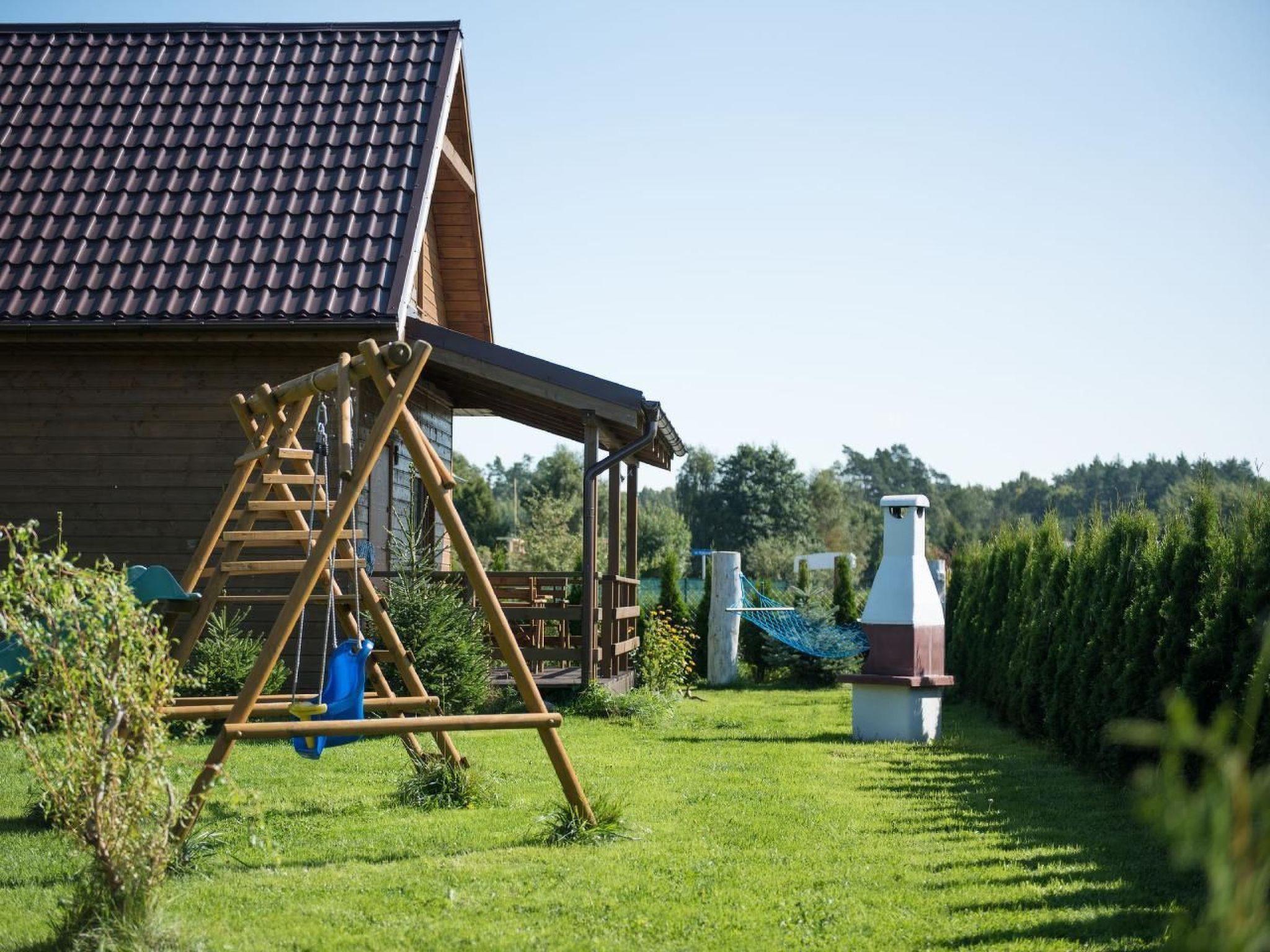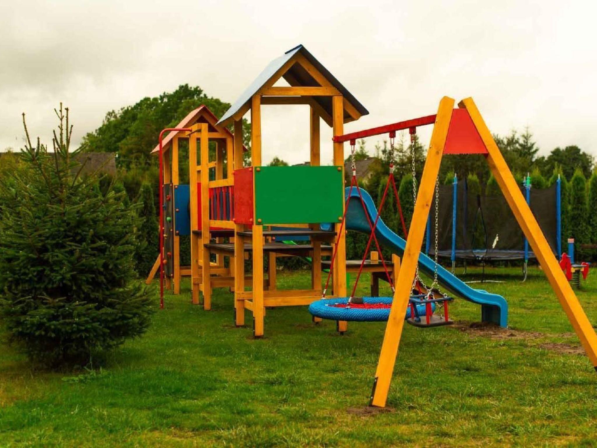Outside, next to each cottage there is a covered terrace - an ideal place for evening conversations and relaxing moments. And for our youngest guests we have prepared a safe playground, equipped with a slide, sandpit, swing and trampoline. The plot is fully fenced, which guarantees privacy and a peaceful holiday.