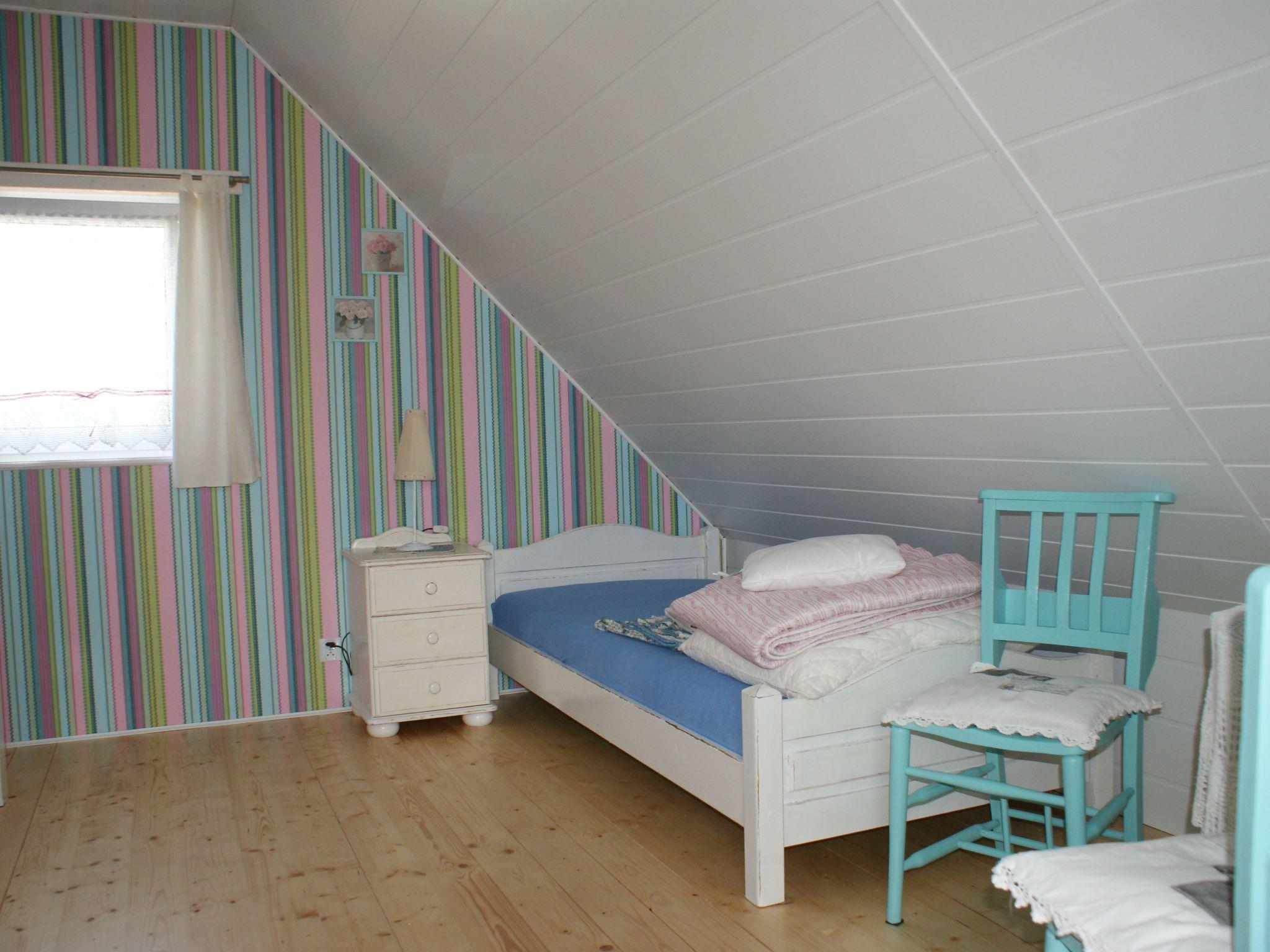 On the first floor there is a large bedroom with three single beds.