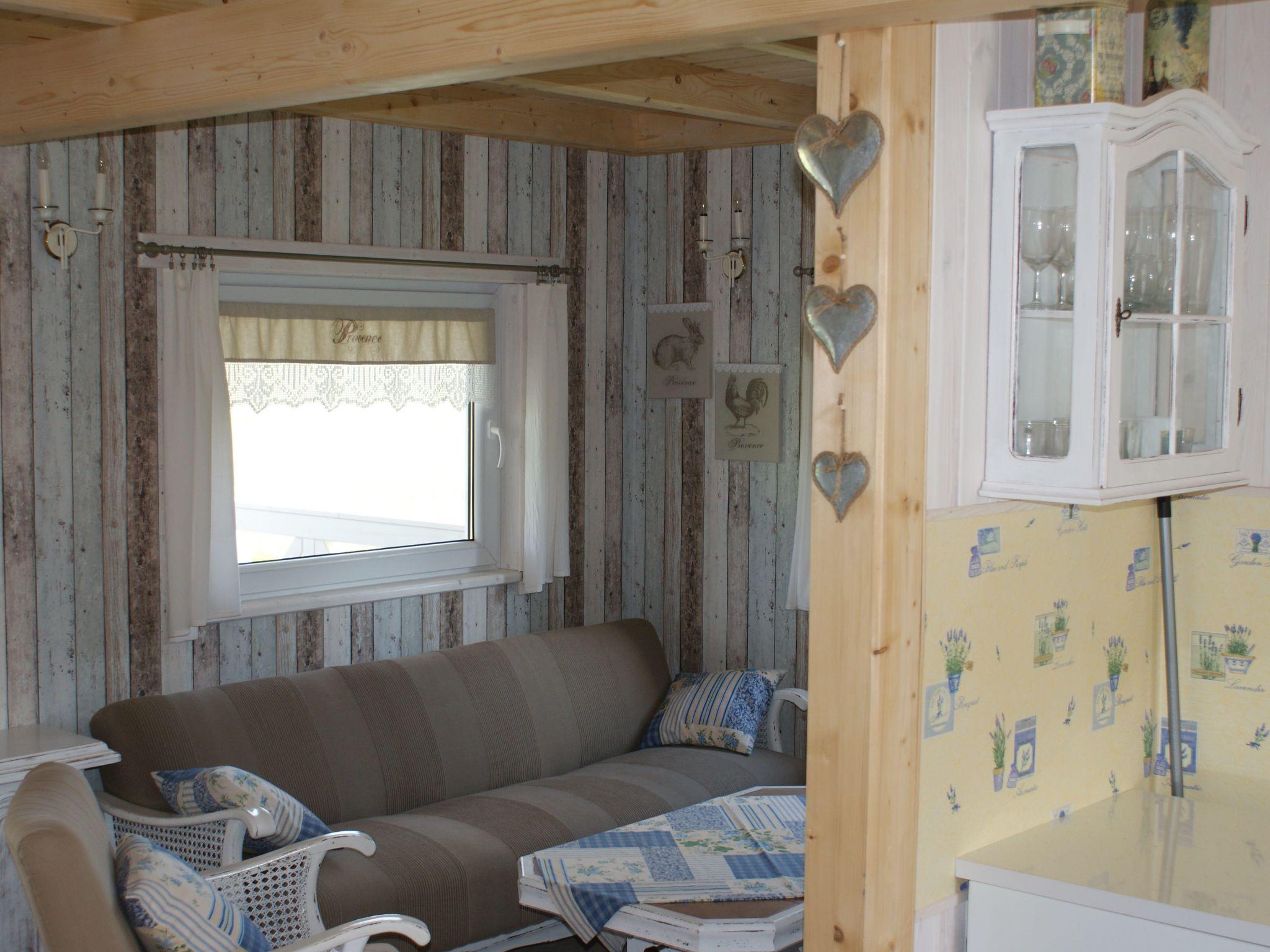 The ground floor of the cottage consists of a room and a kitchen (fridge, cooker, sink, dishes etc.) and a bathroom. The living room is equipped with a wardrobe, a sofa (sofa bed), a TV, armchairs and other small furniture to ensure full comfort of rest.