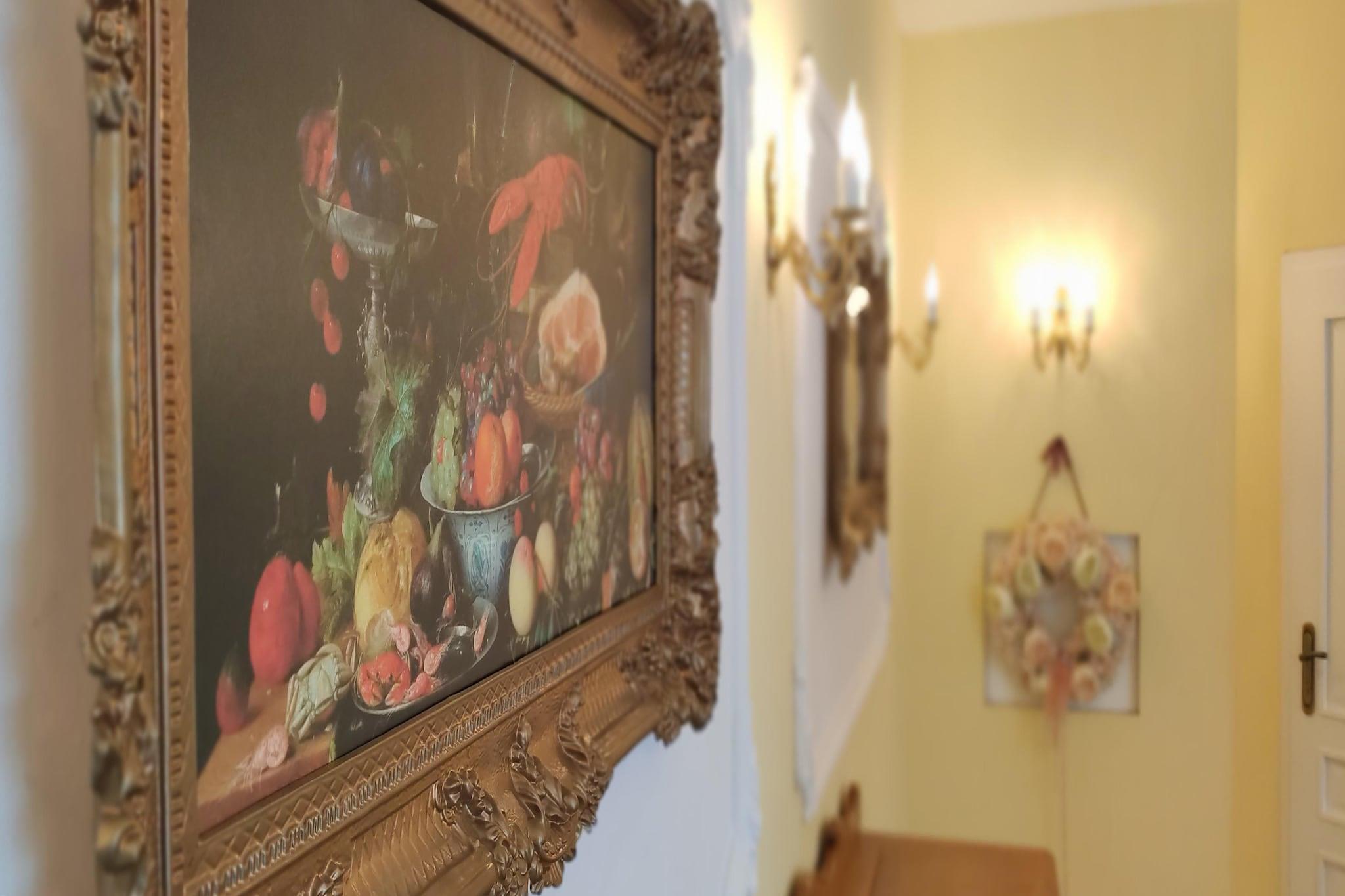 Stueetage: (Køkken(elkedel, brødrister, komfur(Komfur med fire kogeplader, gas), kaffemaskine, ovn, mikrobølgeovn, opvaskemaskine , køle-fryseskab), stue / spisestue(spisebord(11 personer)), soveværelse(dobbeltseng), soveværelse(dobbeltseng, Fjernsyn(fladskærm, Tyske TV-kanaler)), soveværelse(dobbeltseng, Fjernsyn(fladskærm, Tyske TV-kanaler)), soveværelse(dobbeltseng, Fjernsyn(fladskærm, Tyske TV-kanaler)), soveværelse(dobbeltseng, Fjernsyn(fladskærm, Tyske TV-kanaler)), soveværelse med gennemgang(enkeltseng, Fjernsyn(fladskærm, Tyske TV-kanaler)), badeværelse(bruser, håndvask, toilet, føntørrer), badeværelse(bruser, håndvask, toilet), badeværelse(bruser, håndvask, toilet), badeværelse(bruser, håndvask, toilet), badeværelse(bruser, håndvask, toilet)) Reception, Internetadgang, Parkering, Legeområde, Græsplæne, varme(central), terrasse, have(privat, indhegnet), havemøbler, grill(trækul), sandkasse, strygebræt, strygejern, Gyngestativ