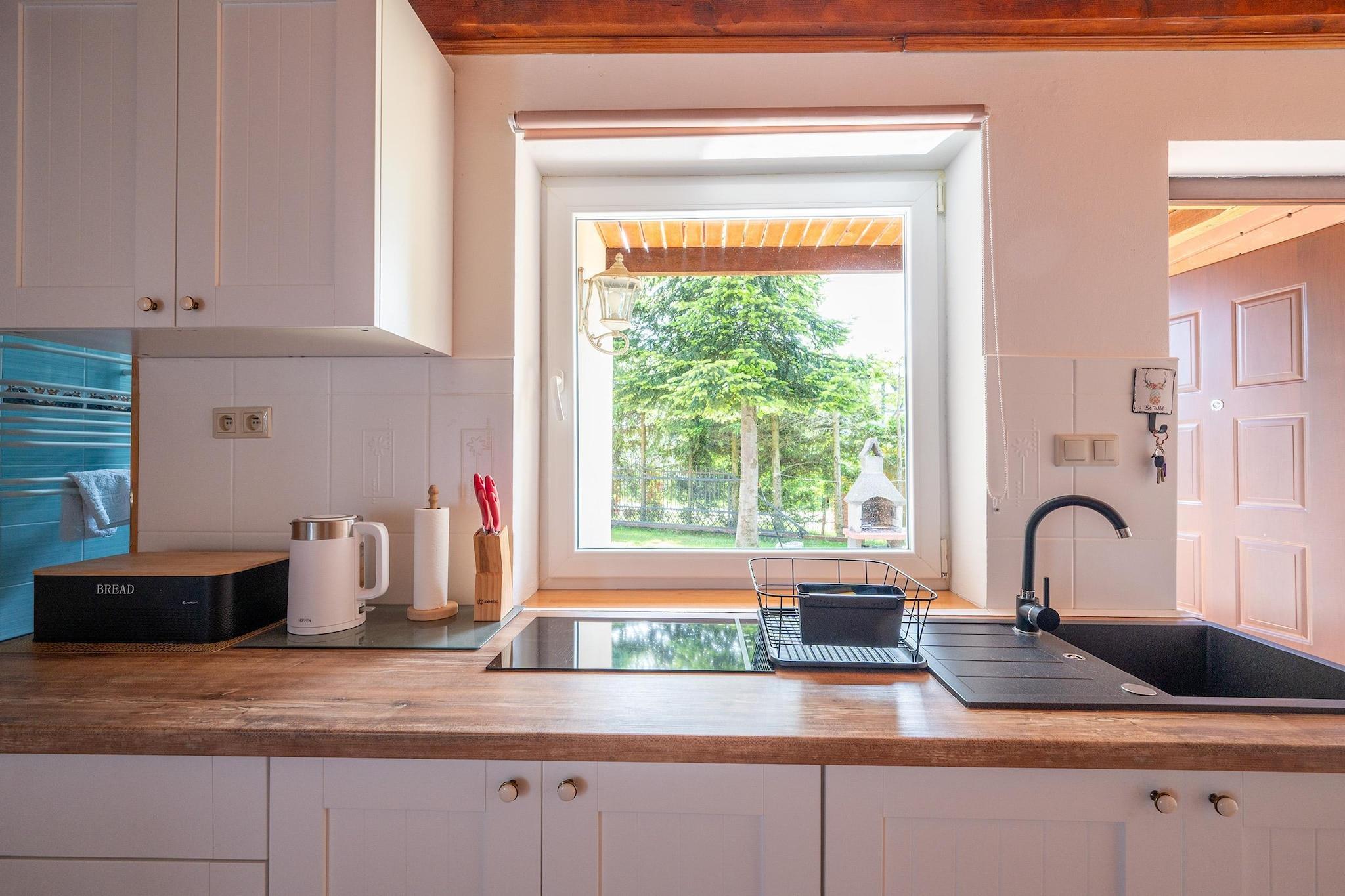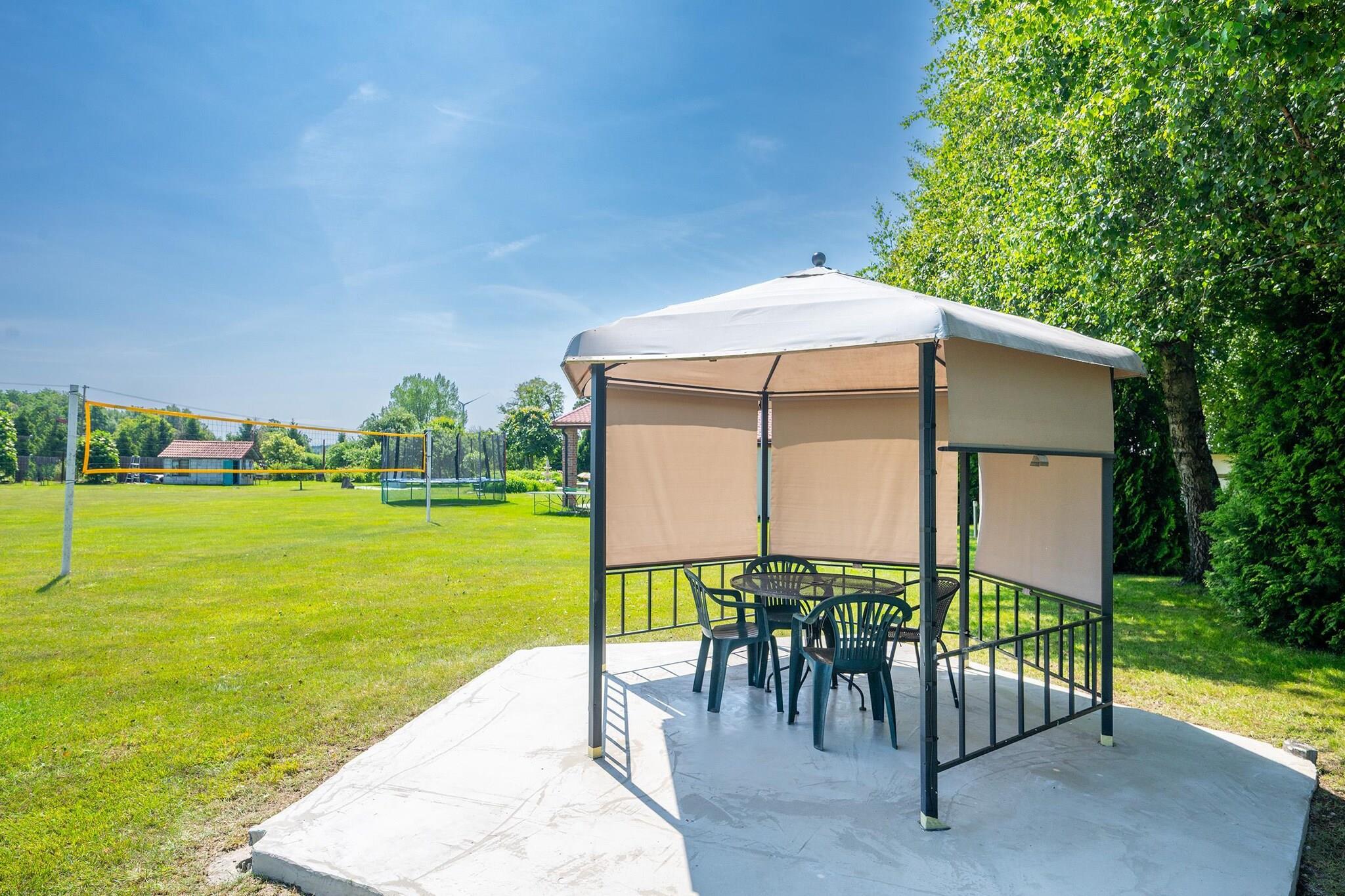 Et feriested med sommerpool i den rolige by Domaslawice, 6 km fra kyststranden. Det omkringliggende område er fyldt med endeløse enge, marker og skove, hvilket gør det til det perfekte sted for en afslappende ferie. Kystbyen Darlowo ligger kun 3 km væk og tilbyder et udvalg af attraktioner og attraktive spisemuligheder. Vi tilbyder indkvartering i komfortable, rummelige toetagers feriehuse. Hvert hus har en overdækket terrasse med havemøbler, liggestole og grillfaciliteter. Hvert hus har en stue i stueetagen (TV, dobbelt sovesofa, spisebord), køkken, badeværelse med bruser og et dobbeltværelse (to enkeltsenge eller en dobbelt udtræksseng). Ovenpå er der et andet dobbeltværelse med balkon og et ekstra toilet. Centralvarme og trådløst internet er tilgængeligt. Resortet tilbyder privatliv på en 2 hektar stor grund, inklusive en sommerpool med valgfri overdækning, en legeplads, en sportsbane og et bordtennisbord. Sikker parkering er tilgængelig. Prisen inkluderer: sengelinned, el- og vandforbrug, opvarmning, internet, parkering og resortskat. En barneseng og højstol er tilgængelige efter anmodning. Ud over smukke strande tilbyder de nærliggende badebyer (Darlowo og Darlówko) en lystbådehavn, hvor du kan leje vandsportsudstyr, og en havn, hvor krydstogtskibe afgår. Der er også et attraktivt vandland i nærheden. De nærliggende floder Wieprza og Grabowa tilbyder fremragende kajaksejladser.