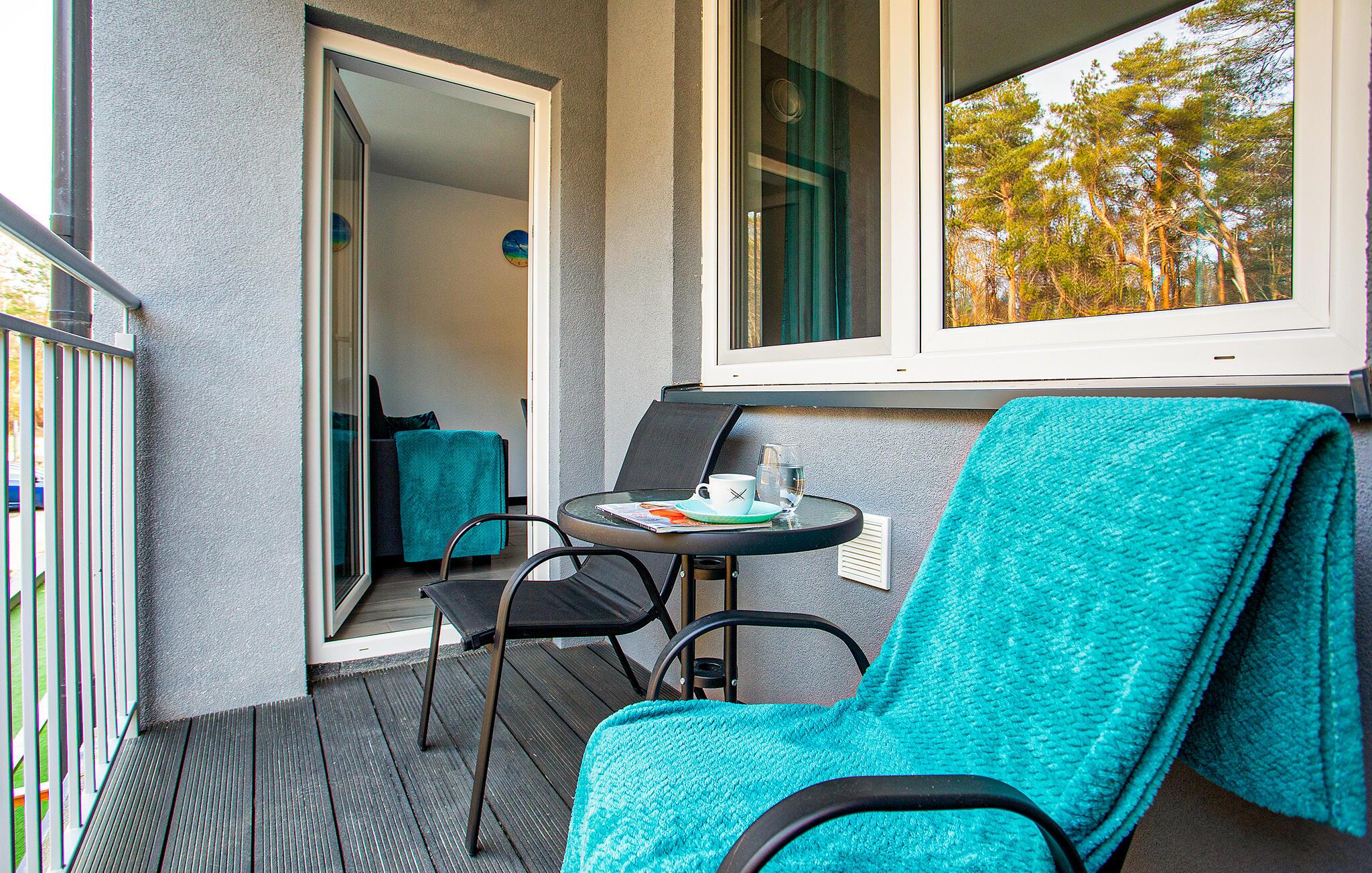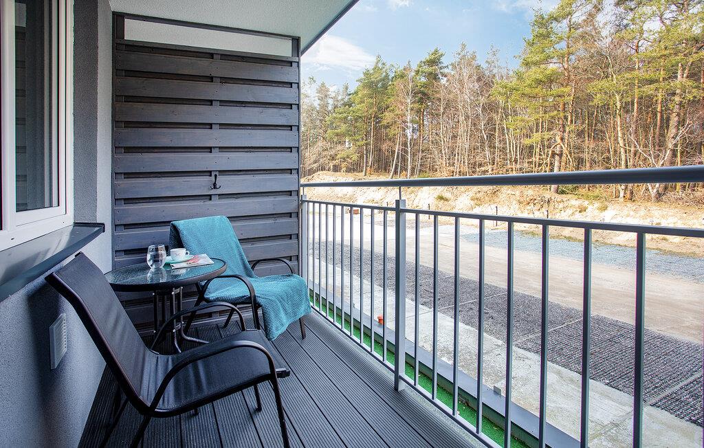 På skovsiden af ??bygningen kan I nyde en smuk grøn udsigt om sommeren og afslutte dagen på balkonen med hyggelige samtaler. Nærheden til den brede, naturlige østersøstrand er det helt store højdepunkt ved denne indkvartering.
