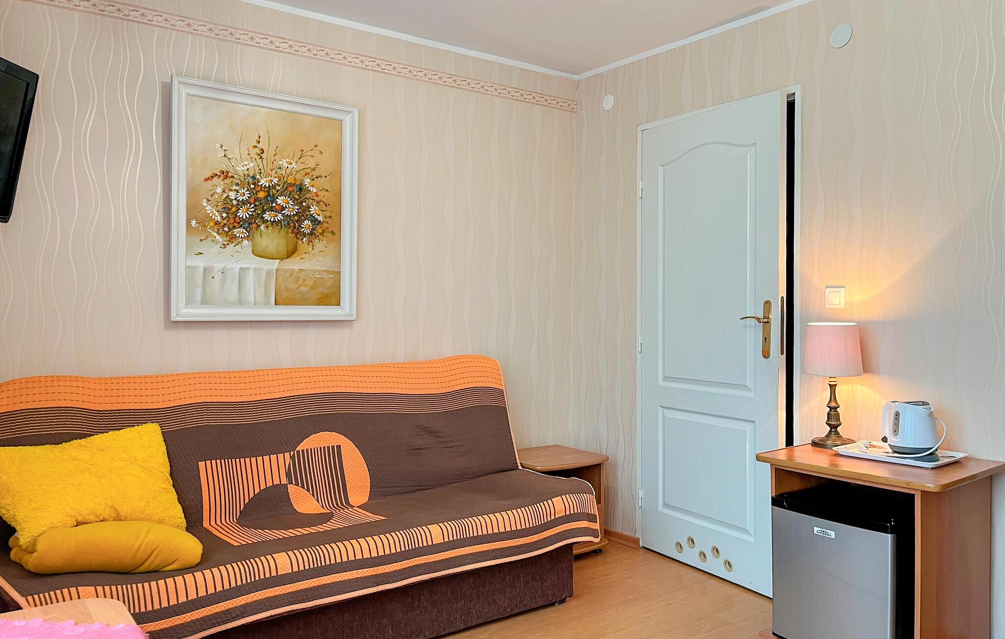 Denne praktiske studiolejlighed tilbyder jer en behagelig base til en ubekymret ferie ved den polske Østersøkyst. Den funktionelle indretning sikrer, at I har alt det nødvendige ved hånden. Et lille tekøkken gør det nemt at tilberede snacks, mens opholds- og soveområdet skaber en afslappet atmosfære.