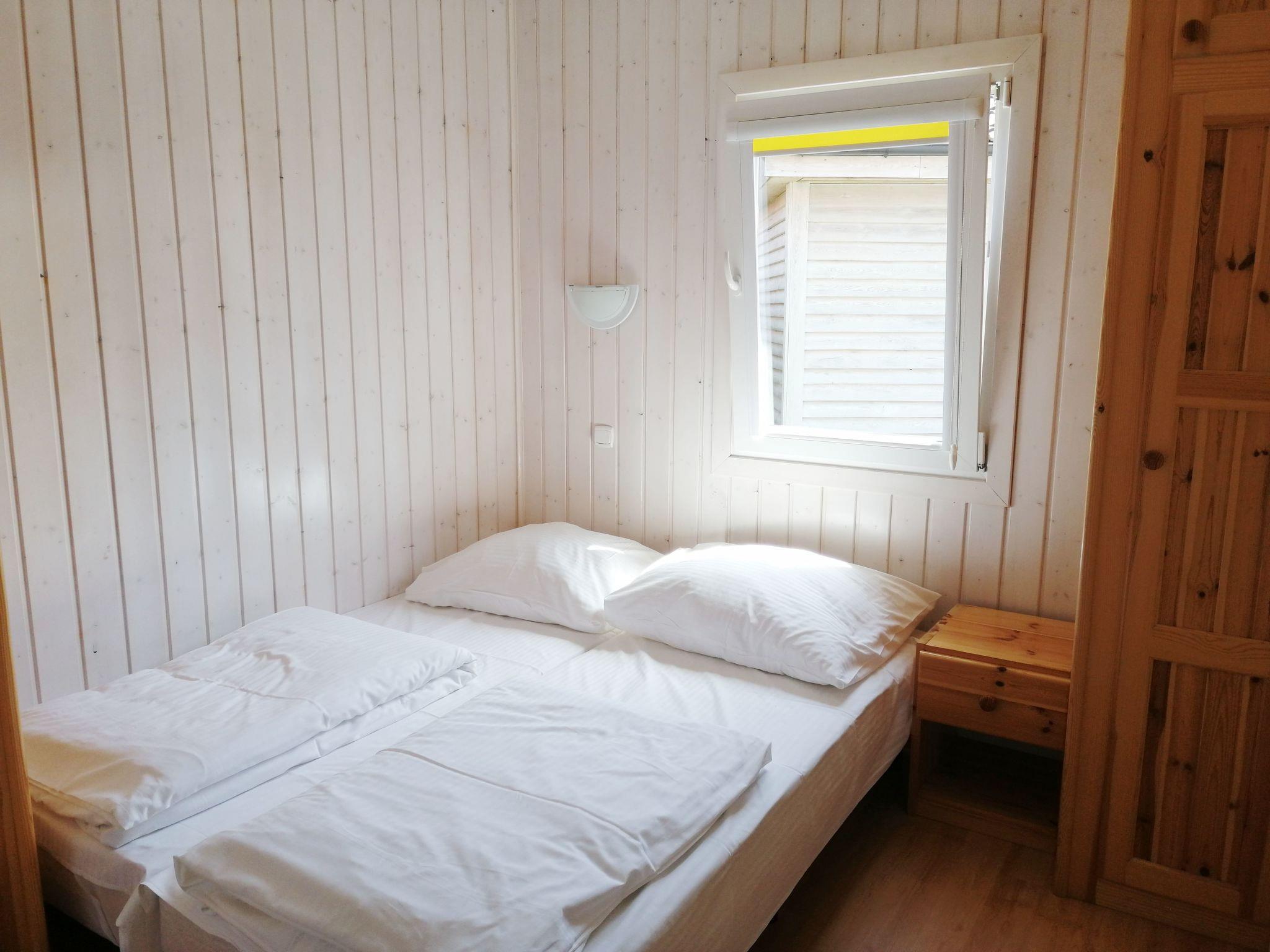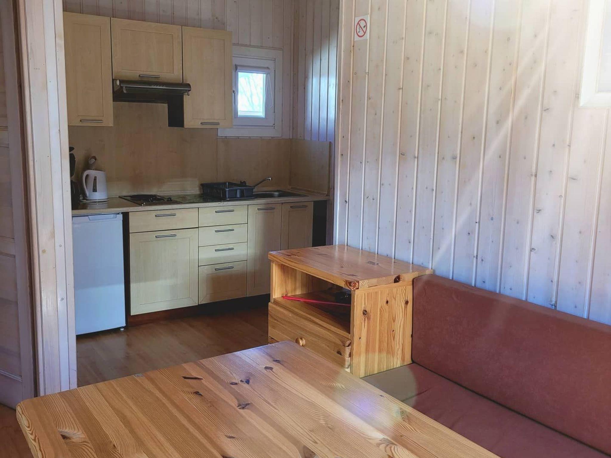 Inside our holiday home you will find a functional bathroom with shower/WC, washbasin with cabinet, mirror and toilet for your convenience. The kitchenette is fully equipped with a 2-burner electric cooker, a fridge with a small freezer, a sink and all necessary crockery and cooking utensils such as plates, cups and cutlery. The living room provides a comfortable place to spend time together, equipped with a table, corner bench and cable TV. Two bedrooms with single beds that can be put together provide a peaceful and comfortable sleep.