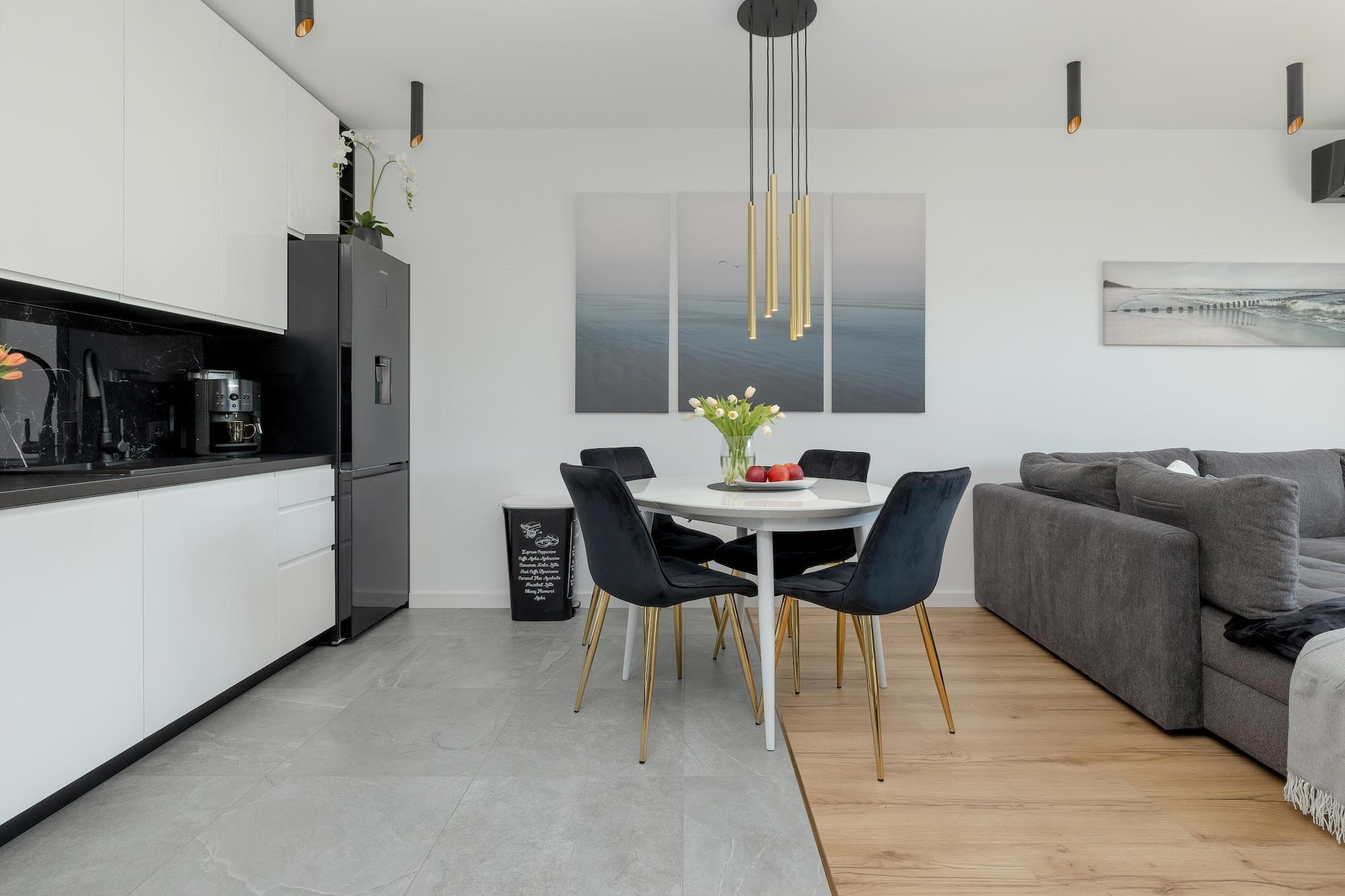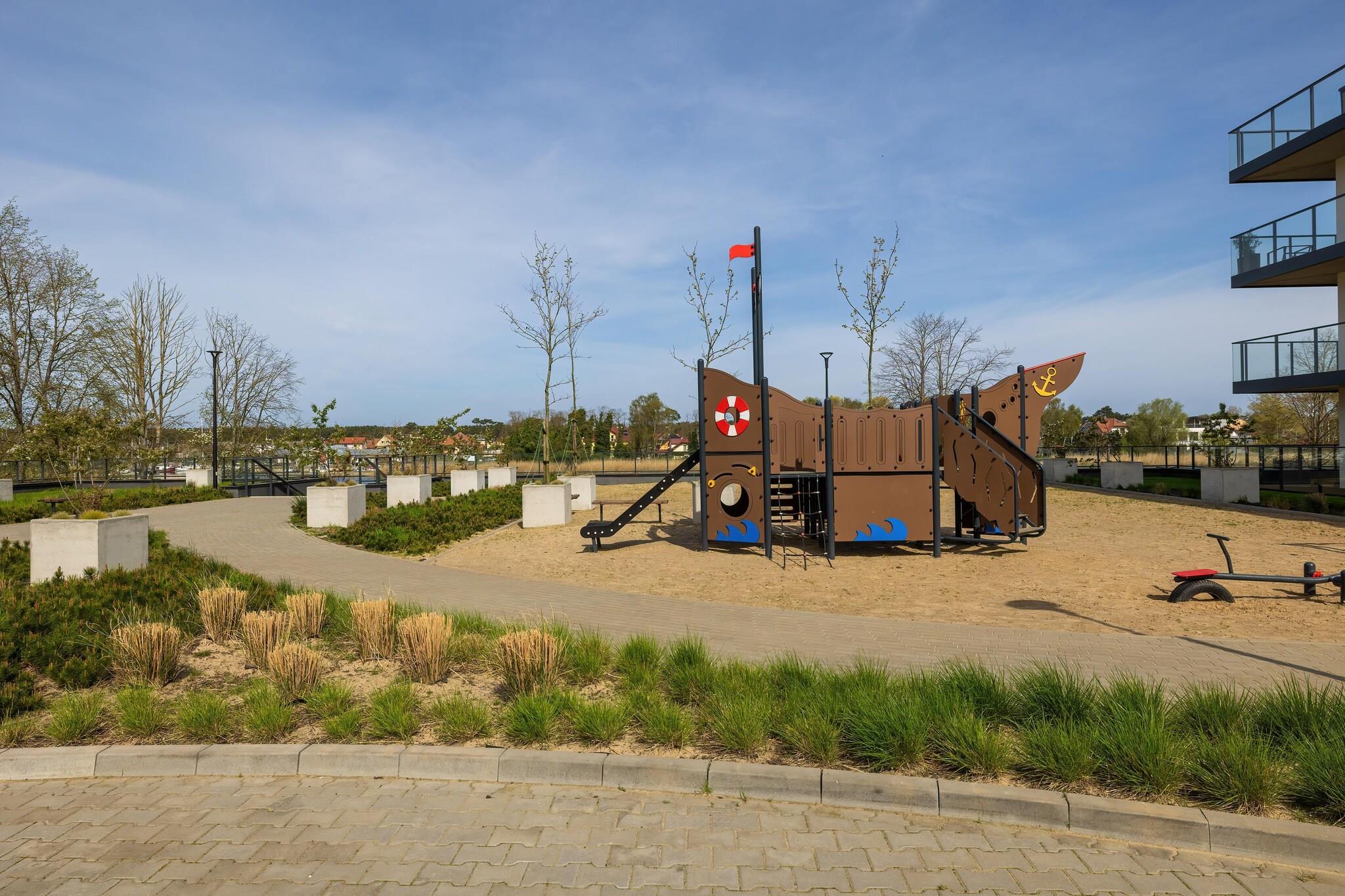 Lejlighedskompleks direkte på bredden af Dziwna-floden. Udover overnatning tilbyder det et SPA-område med indendørs swimmingpool, spabad og sauna. Kun 700 m til stranden. Ca. 250 m til feriestedets centrum. Komfortabel lejlighed på anden sal (der er elevator). Den består af en stue forbundet med et veludstyret køkken, et soveværelse med dobbeltseng og et badeværelse med bruser (der er en vaskemaskine). Stuen har en dobbelt sovesofa, bord og tv. TV også i soveværelset. Lejligheden har en stor, overdækket altan med et sæt havemøbler (der er også liggestole). Centralvarme. Trådløst internet er tilgængeligt. Komplekset har en indendørs swimmingpool (+ soppebassin for børn), et boblebad, en sauna og et fitnessrum. Der er en parkeringsplads for bilister. Prisen for opholdet inkluderer: el- og vandforbrug, swimmingpool, sauna, spabad, fitnessrum, parkeringsplads i underjordisk garage, internet. Barneseng og høj stol til rådighed på anmodning. Dziwnów har en ren, sandet og bevogtet strand, adskilt fra byen af en række klitter. Om sommeren kan børn bruge vandrutsjebanen og oppustelige hoppekonstruktioner. Der stikker træbølgebrydere op af havet, som måger ofte sidder på. Attraktionen er gåpromenaden, der strækker sig langs stranden. Dziwnóws turistattraktion er vindebroen over Dziwna-floden. Det har udsigt over floden. Dens komplekse stålstruktur, malet rød, tiltrækker opmærksomhed på afstand. Processen med at løfte broen er meget spektakulær. I den lokale fiskerihavn kan du købe fisk direkte fra kutteren. Der er også salgsstande med røget fisk og andre fiskeprodukter.