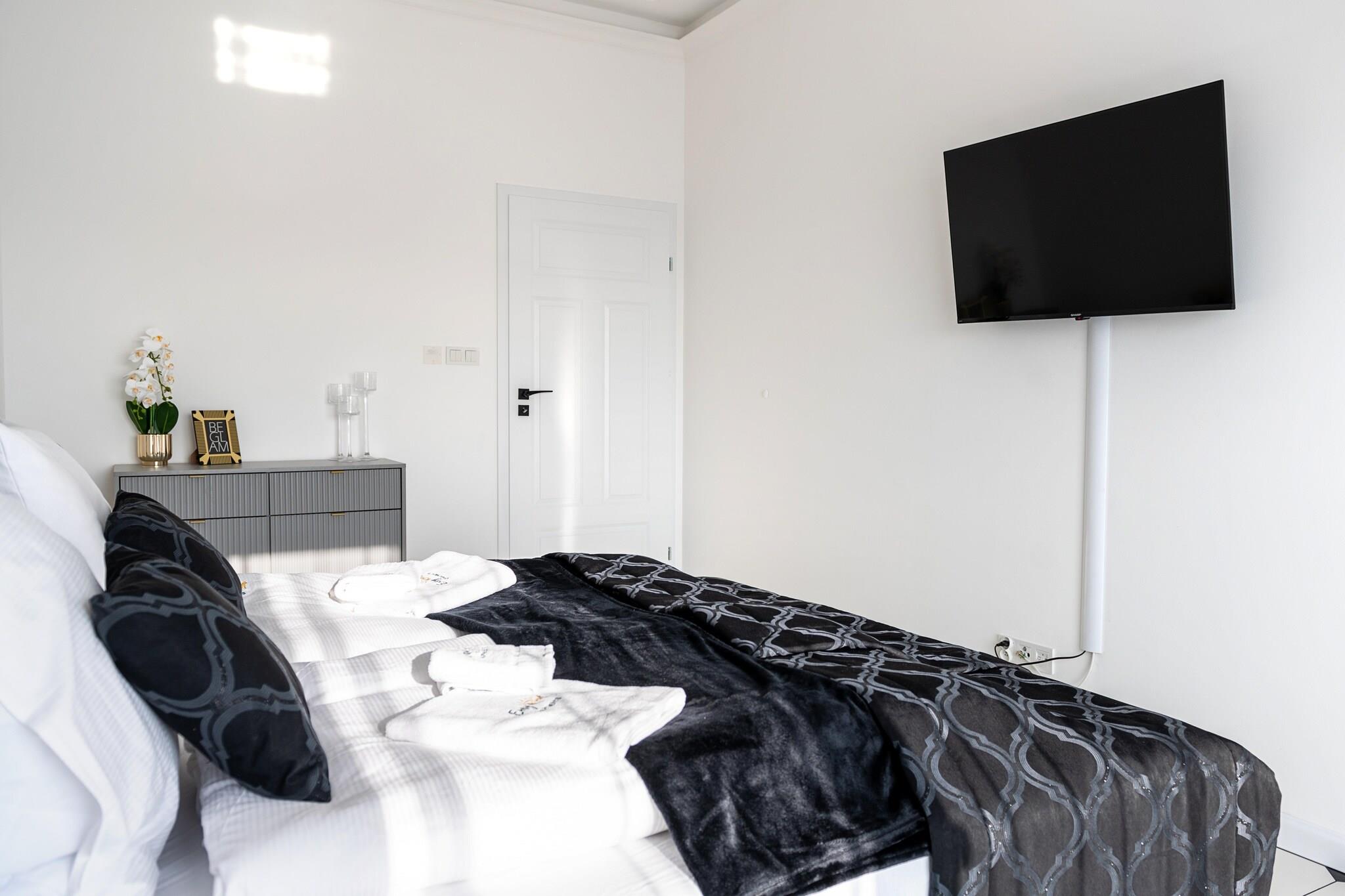 Lejlighedskompleks direkte på bredden af Dziwna-floden. Udover overnatning tilbyder det et SPA-område med indendørs swimmingpool, spabad og sauna. Kun 700 m til stranden. Ca. 250 m til feriestedets centrum. Komfortabel lejlighed på tredje sal (der er elevator). Den består af en stue forbundet med et veludstyret køkken, et soveværelse med dobbeltseng og et badeværelse med bruser. Stuen har en dobbelt sovesofa, bord og tv. TV også i soveværelset. Der er også en vaskemaskine i køkkenet. Lejligheden har en stor, overdækket altan med et sæt havemøbler (indgang fra stue og soveværelse). Centralvarme (+aircondition). Trådløst internet er tilgængeligt. Komplekset har en indendørs swimmingpool (+ soppebassin for børn), et boblebad, en sauna og et fitnessrum. Der er en parkeringsplads for bilister. Prisen for opholdet inkluderer: el- og vandforbrug, swimmingpool, sauna, spabad, fitnessrum, parkeringsplads i underjordisk garage, internet. Barneseng og høj stol til rådighed på anmodning. Dziwnów har en ren, sandet og bevogtet strand, adskilt fra byen af en række klitter. Om sommeren kan børn bruge vandrutsjebanen og oppustelige hoppekonstruktioner. Der stikker træbølgebrydere op af havet, som måger ofte sidder på. Attraktionen er gåpromenaden, der strækker sig langs stranden. Dziwnóws turistattraktion er vindebroen over Dziwna-floden. Det har udsigt over floden. Dens komplekse stålstruktur, malet rød, tiltrækker opmærksomhed på afstand. Processen med at løfte broen er meget spektakulær. I den lokale fiskerihavn kan du købe fisk direkte fra kutteren. Der er også salgsstande med røget fisk og andre fiskeprodukter.