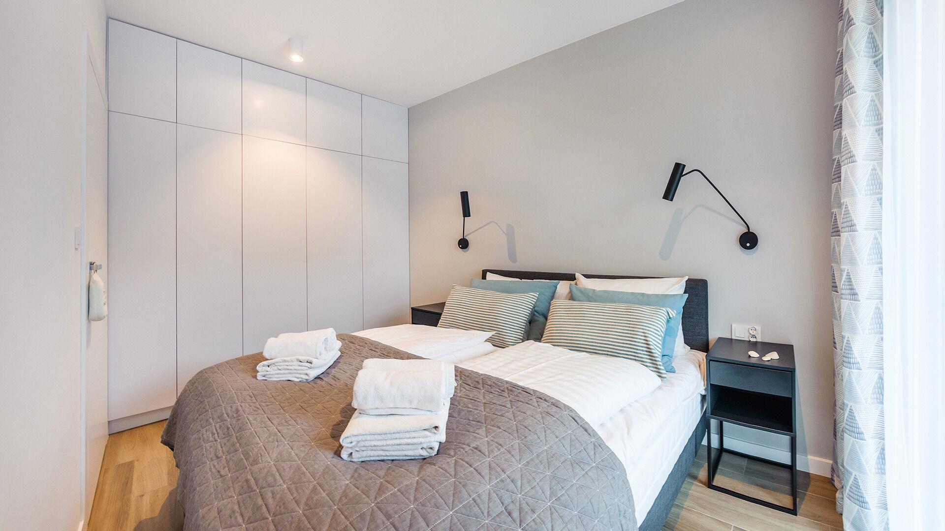Nur 100 Meter trennen die Apartments vom breiten, sandigen Strand – ideal für Sonnenanbeter ebenso wie für ausgedehnte Spaziergänge entlang der Küste. Das Rauschen der Wellen und die frische Meeresbrise schaffen eine unvergleichliche Atmosphäre, die zur vollkommenen Entspannung einlädt.