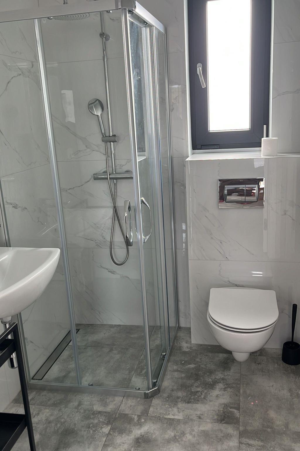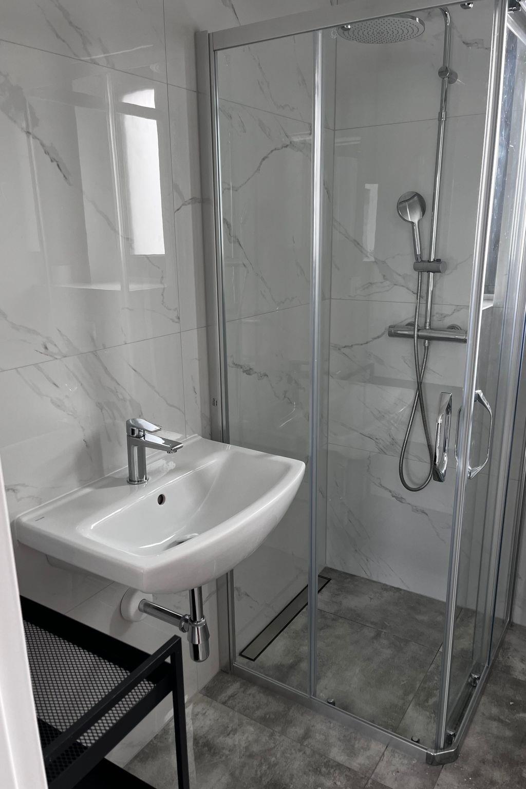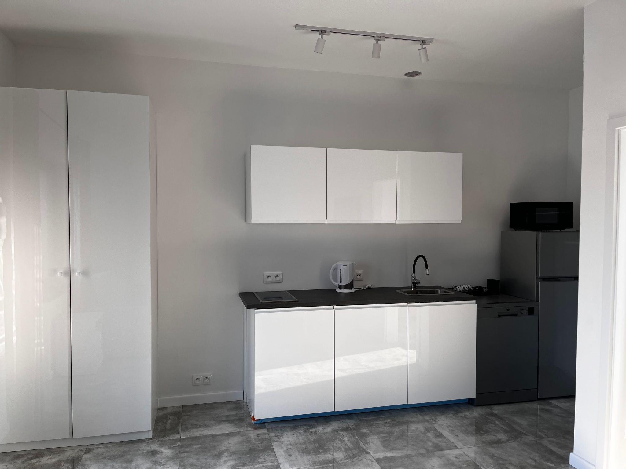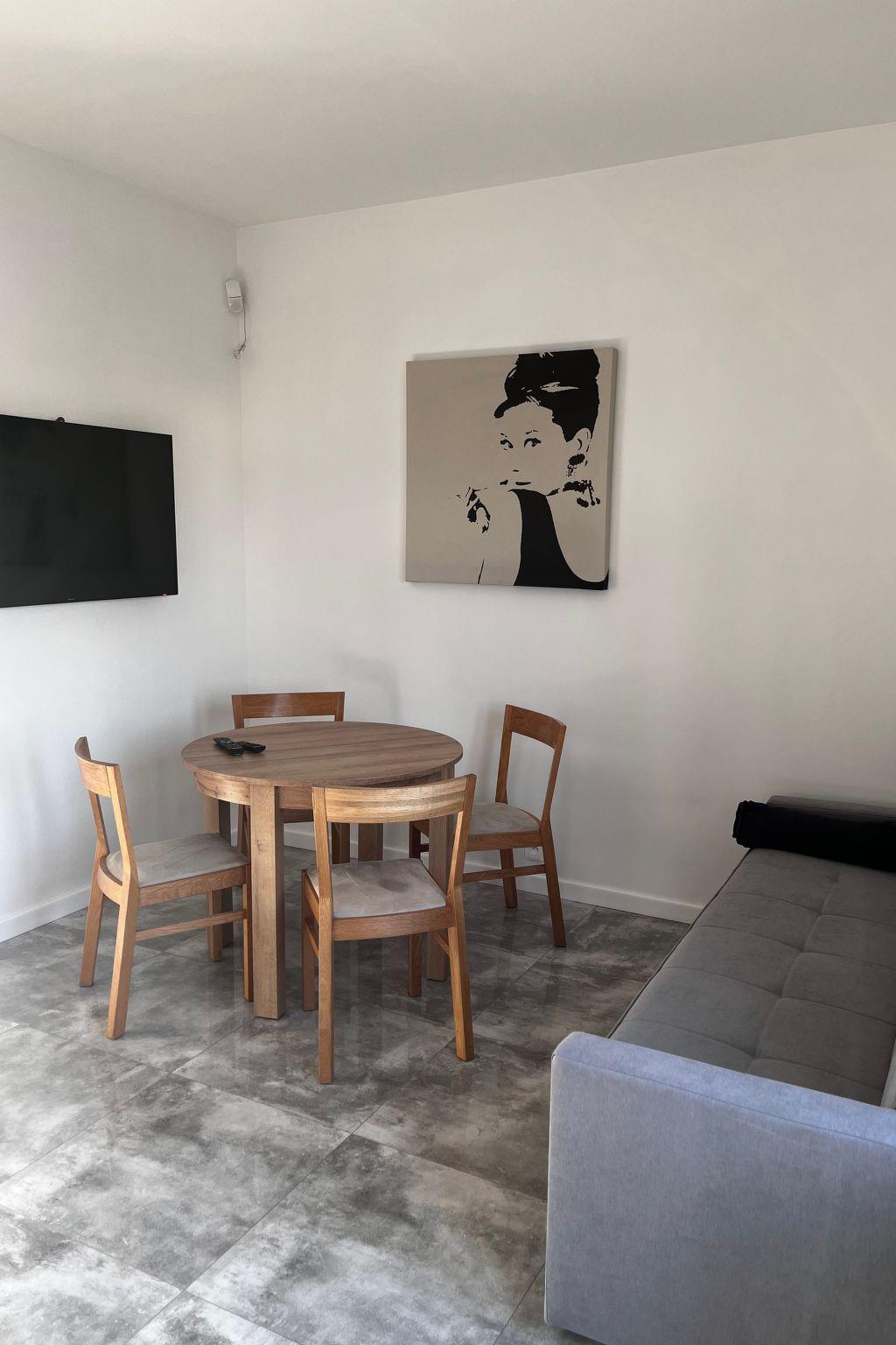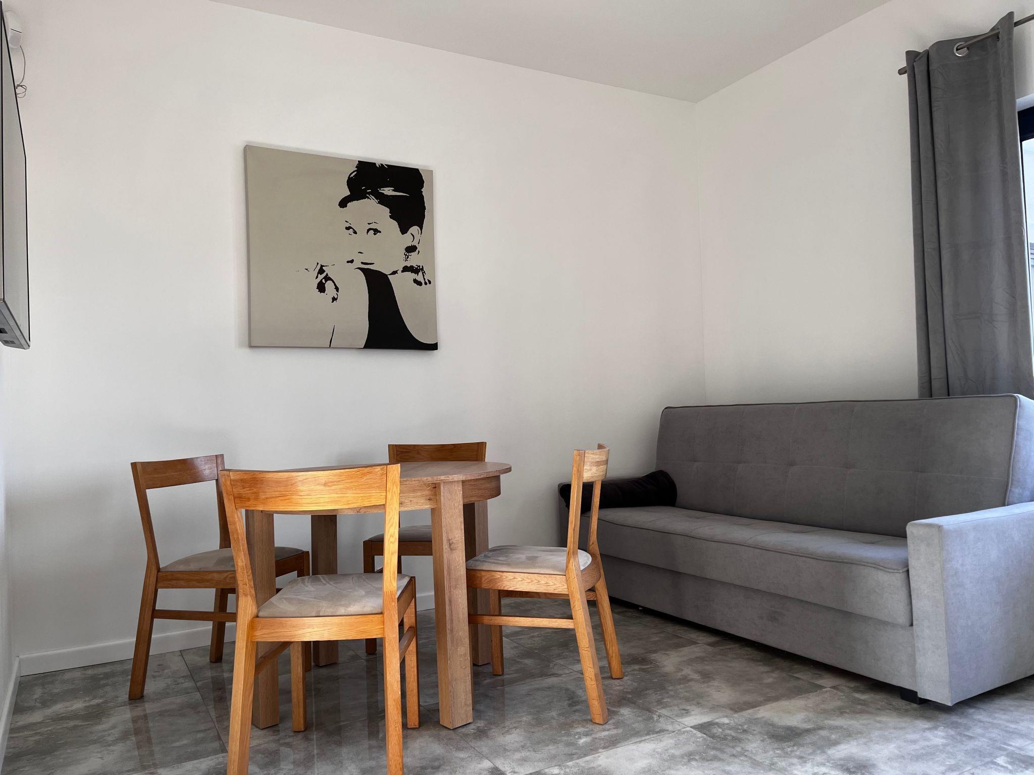 The interior of the flat is dominated by functionality and comfort. The space, designed with guests in mind, offers a spacious bedroom, a bathroom with shower and a living room combined with a fully equipped kitchenette. Access to a shared washing machine and clothes dryer in the building provides additional convenience, which is particularly useful during longer stays. An added bonus is the underfloor heating, which guarantees warmth and cosiness on colder days.