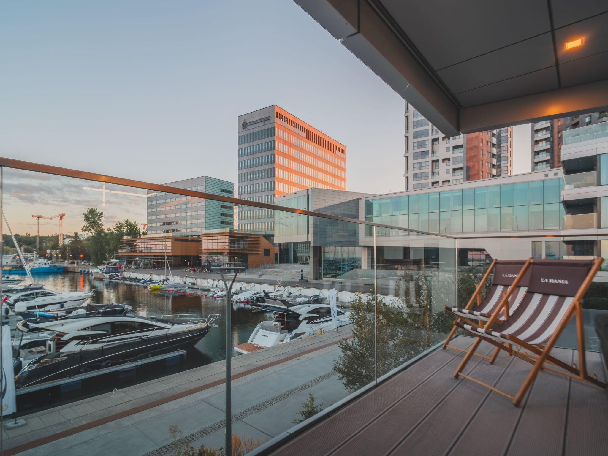 Large sliding balcony doors, make the yacht basin a natural extension of the flat.