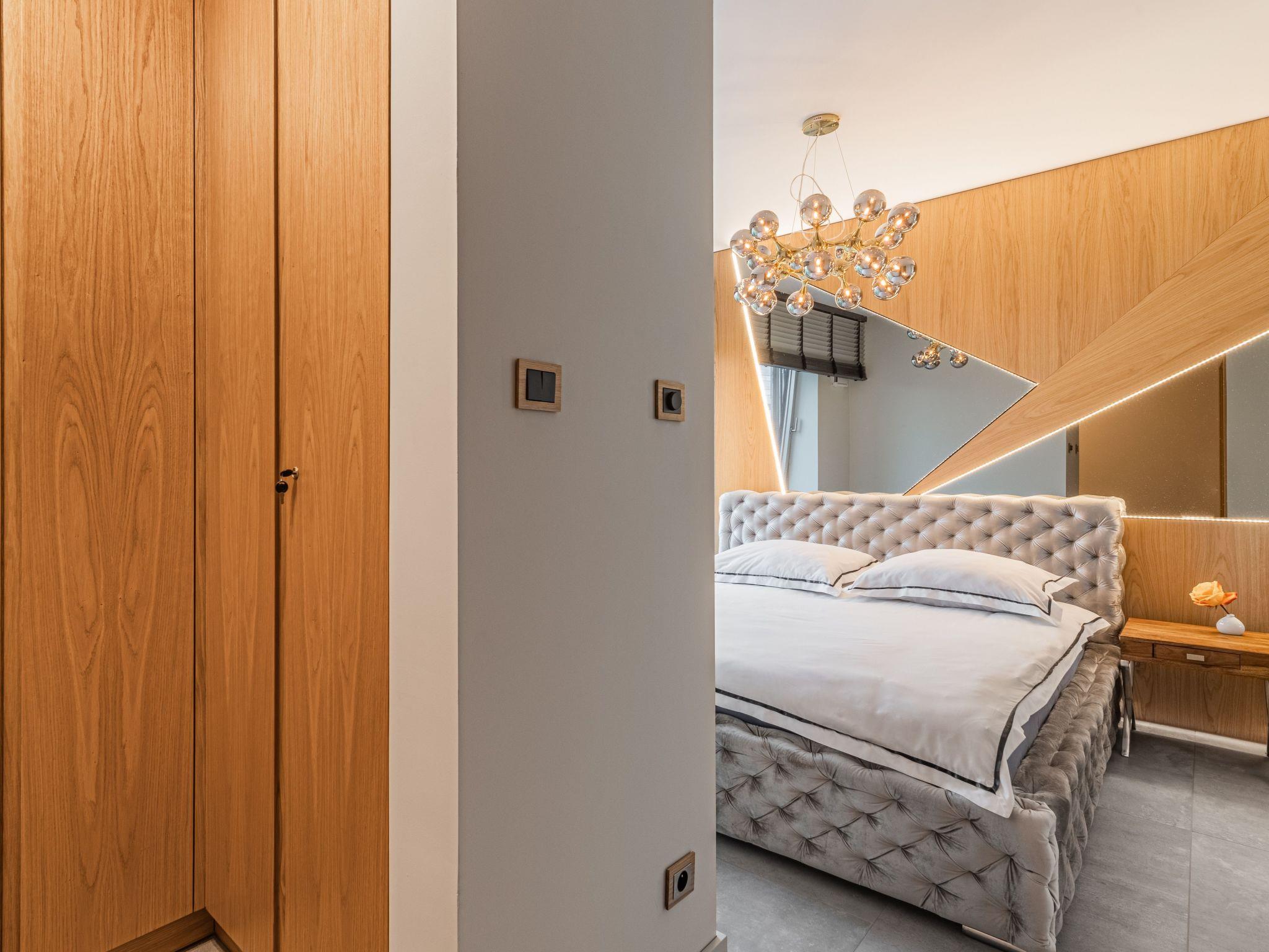 One double bedroom with "King Bed" 180x200; large wardrobe, second bedroom with "Queen Bed" 160x200; above standard flat height.