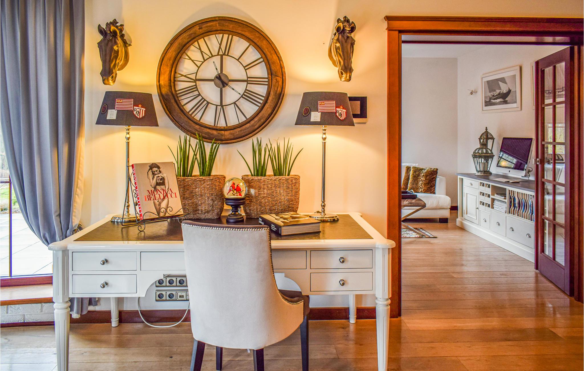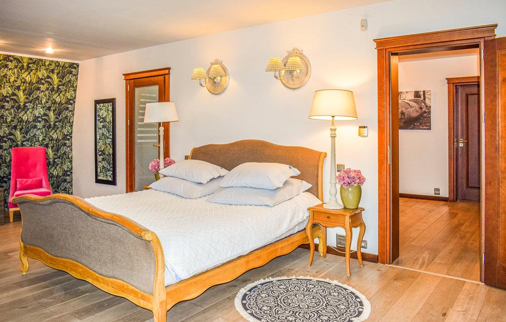 Huset ligger i skoven nær Okonim, Szczucze-søen og Niemica-floden. Det er smagfuldt, moderne og praktisk indrettet. Den smukke beliggenhed i et roligt område danner den ideelle ramme for en afslappende ferie. I dette smukke, komfortable og moderne feriehus kan I trække jer tilbage fra hverdagens stress og jag og slappe helt af. Der er en pejs i stuen, hvor I kan tilbringe mange hyggelige øjeblikke.