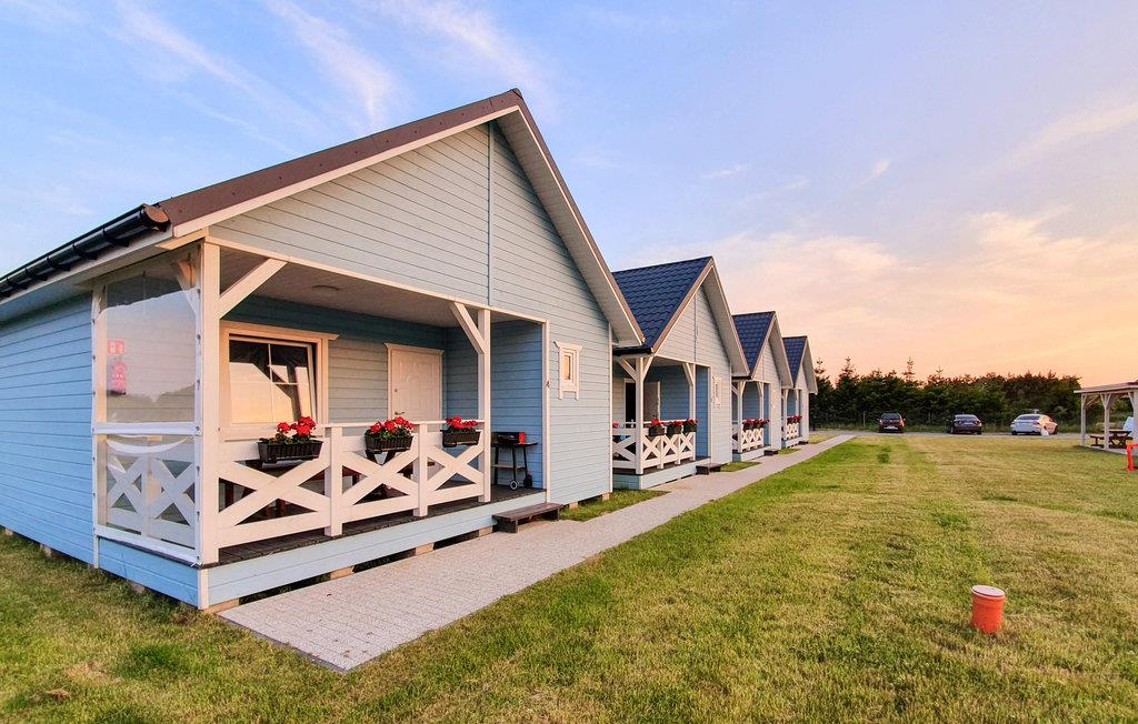 I landsbyen Radsiszkowo, kort afstand fra kystlandsbyen Jaroslawiec, byder dette børnevenlige sommerhus med røde pelargonier på terrassen, der byder jer velkommen, de ideelle rammer for en ferie med fart! I finder alt, hvad I har brug for, i den lyse sommerbolig med træflair. Lav pandekager med den søde tand til aftengildet på den overdækkede terrasse. Den store naturgrund er et sandt legeparadis! Lad børnene spille bordtennis, klatre, grave glade eller hoppe på trampolinen, indtil aftensmaden er klar.