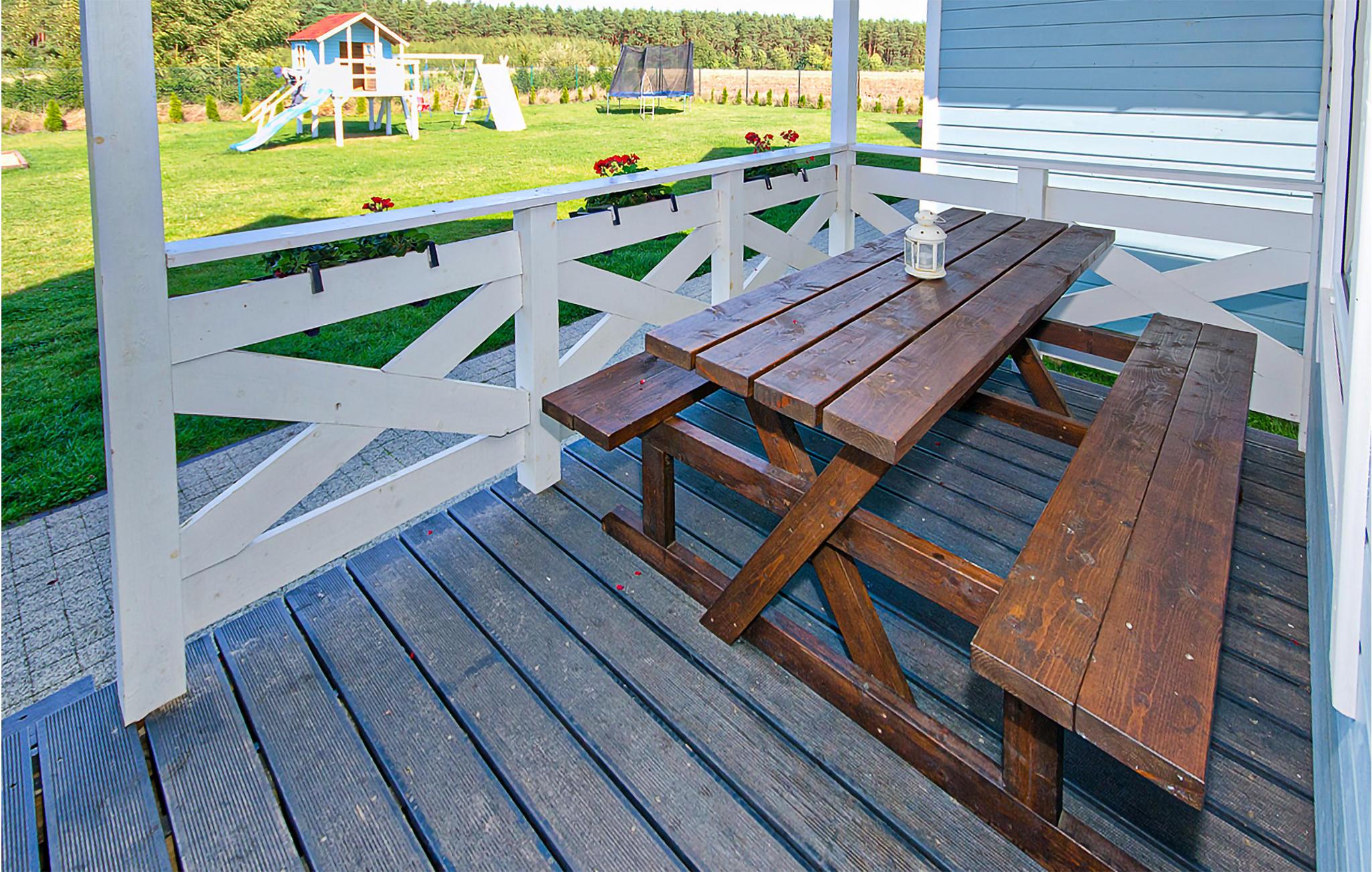 I landsbyen Radsiszkowo, kort afstand fra kystlandsbyen Jaroslawiec, byder dette børnevenlige sommerhus med røde pelargonier på terrassen, der byder jer velkommen, de ideelle rammer for en ferie med fart! I finder alt, hvad I har brug for, i den lyse sommerbolig med træflair. Lav pandekager med den søde tand til aftengildet på den overdækkede terrasse. Den store naturgrund er et sandt legeparadis! Lad børnene spille bordtennis, klatre, grave glade eller hoppe på trampolinen, indtil aftensmaden er klar.