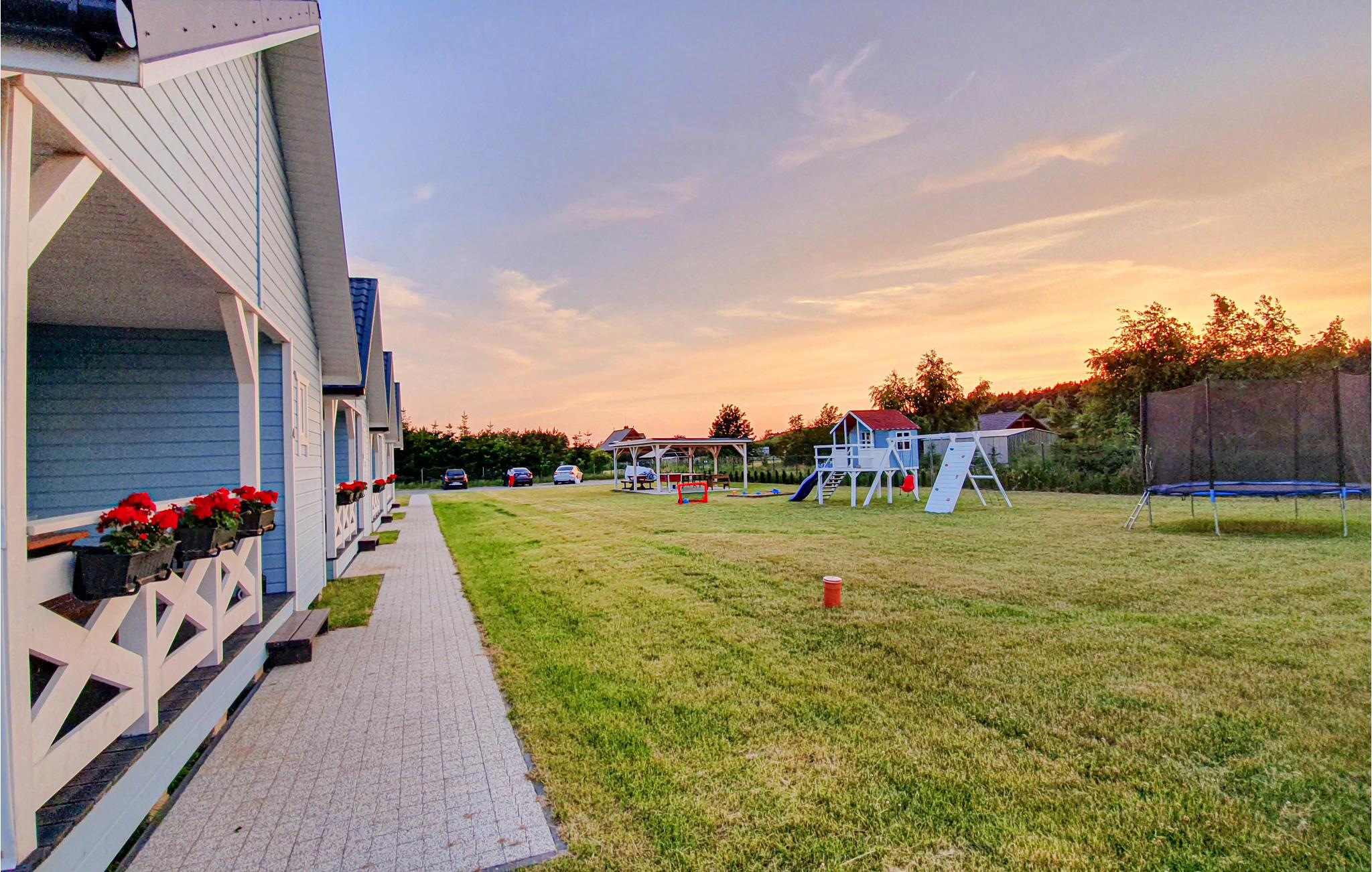 I landsbyen Radsiszkowo, kort afstand fra kystlandsbyen Jaroslawiec, byder dette børnevenlige sommerhus med røde pelargonier på terrassen, der byder jer velkommen, de ideelle rammer for en ferie med fart! I finder alt, hvad I har brug for, i den lyse sommerbolig med træflair. Lav pandekager med den søde tand til aftengildet på den overdækkede terrasse. Den store naturgrund er et sandt legeparadis! Lad børnene spille bordtennis, klatre, grave glade eller hoppe på trampolinen, indtil aftensmaden er klar.