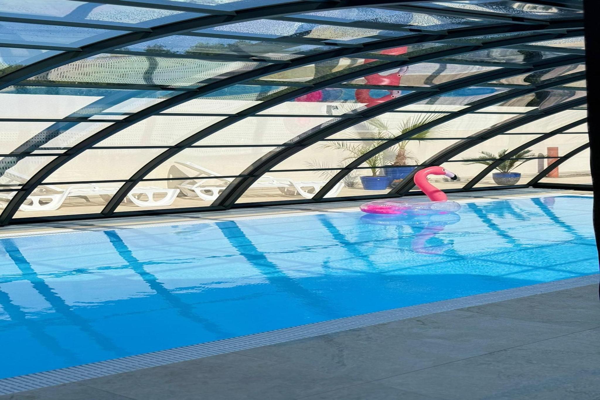 Et familie rekreationscenter med swimmingpool, i et roligt område, ved siden af et stort vandland. 10 minutters gang til stranden ved havet. Komfortabel 2-værelses ferielejlighed i stueetagen. Det er designet til komfortabelt at rumme 4 personer. Den består af en stue (dobbelt fold-ud sofa, bord med stole og TV), et soveværelse med en dobbeltseng og et badeværelse med bruser. Stuen er forbundet med køkkenet. Lejligheden har en afslapningsterrasse med et sæt havemøbler og en grill. Trådløst internet er tilgængeligt for gæster. Centrets største attraktion er den nye opvarmede swimmingpool (åben fra maj til september). Swimmingpoolen har tag. I det indhegnede område af rekreationskomplekset er der en parkeringsplads (1 plads/hus), en volleyballbane, en legeplads og en cykeludlejning. Prisen for opholdet inkluderer: sengelinned, håndklæder, vandforbrug, elforbrug, varme, swimmingpool, internet, slutrengøring, parkering (1 plads/lejlighed), barneseng og høj stol (forudgående reservation nødvendig). Jaroslawiec er et roligt sommerresort beliggende på den centrale kyst, tæt på Darlowo og Ustka. Et vidunderligt klima og landskaber, fyrreskove, klart vand i havet, en klippe ved havet - det er fordelene ved Jaroslawiec, der får denne by til at tiltrække skarer af turister hvert år. Der er også mange interessante attraktioner, der venter på turister her, som vil diversificere deres ferie ved havet. Jaroslawiec tilbyder også en rig gastronomisk base. Stranden i Jaroslawiec er ideel for turister, der kan lide at solbade på uoverfyldte steder. På stranden kan du se farverige fiskerbåde og finde gyldent rav. Efter den nylige renovering er stranden meget bred og smuk. Du kan tage til den nærliggende sø (ca. 2 km), hvor du også kan bade, eller leje en fiskerbåd.