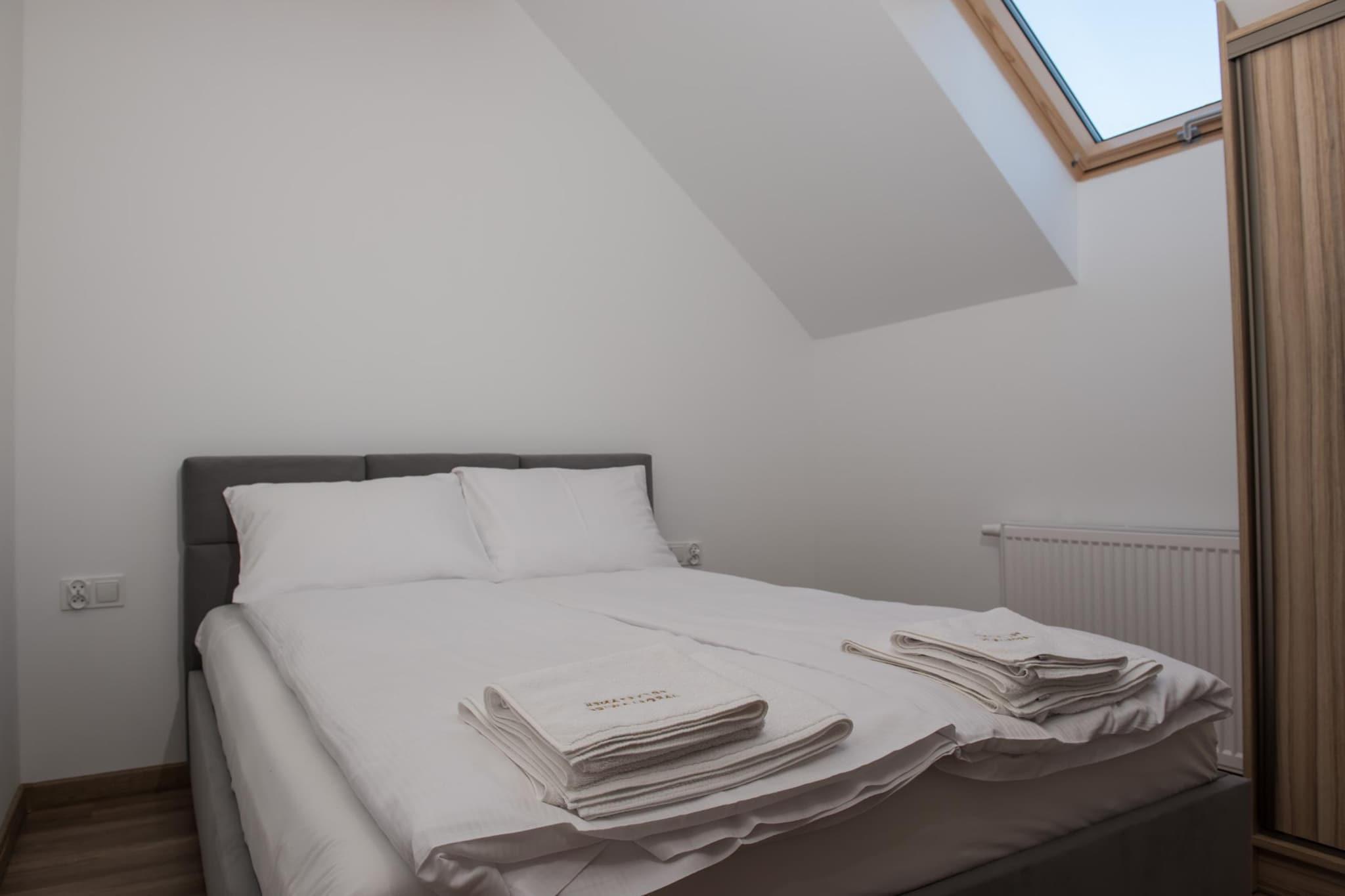 Et familie rekreativt center med en swimmingpool, i et roligt område, ved siden af et stort vandland. 10 minutters gang til stranden ved havet. Komfortabel 2-værelses ferielejlighed på 1. sal. Det er designet til at rumme 6 personer komfortabelt. Den består af en stue (dobbelt fold-ud sofa, bord med stole og TV), 2 separate soveværelser og et badeværelse med bruser. Stuen er forbundet med køkkenet. Lejligheden har en afslapningsterrasse med et sæt havemøbler og en grill. Trådløst internet er tilgængeligt for gæster. Centrets største attraktion er den nye opvarmede swimmingpool (åben fra maj til september). Swimmingpoolen har tag. I det indhegnede område af rekreationskomplekset er der en parkeringsplads (1 plads/hus), en volleyballbane, en legeplads og en cykeludlejning. Prisen for opholdet inkluderer: sengelinned, håndklæder, vandforbrug, elforbrug, varme, swimmingpool, internet, slutrengøring, parkering (1 plads/lejlighed), barneseng og høj stol (forudgående reservation nødvendig). Jaroslawiec er et roligt sommerresort beliggende på den centrale kyst, tæt på Darlowo og Ustka. Et vidunderligt klima og landskaber, fyrreskove, klart vand i havet, en klippe ved havet - det er fordelene ved Jaroslawiec, der får denne by til at tiltrække skarer af turister hvert år. Der er også mange interessante attraktioner, der venter på turister her, som vil diversificere deres ferie ved havet. Jaroslawiec tilbyder også en rig gastronomisk base. Stranden i Jaroslawiec er ideel for turister, der kan lide at solbade på uoverfyldte steder. På stranden kan du se farverige fiskerbåde og finde gyldent rav. Efter den nylige renovering er stranden meget bred og smuk. Du kan tage til den nærliggende sø (ca. 2 km), hvor du også kan bade, eller leje en fiskerbåd.